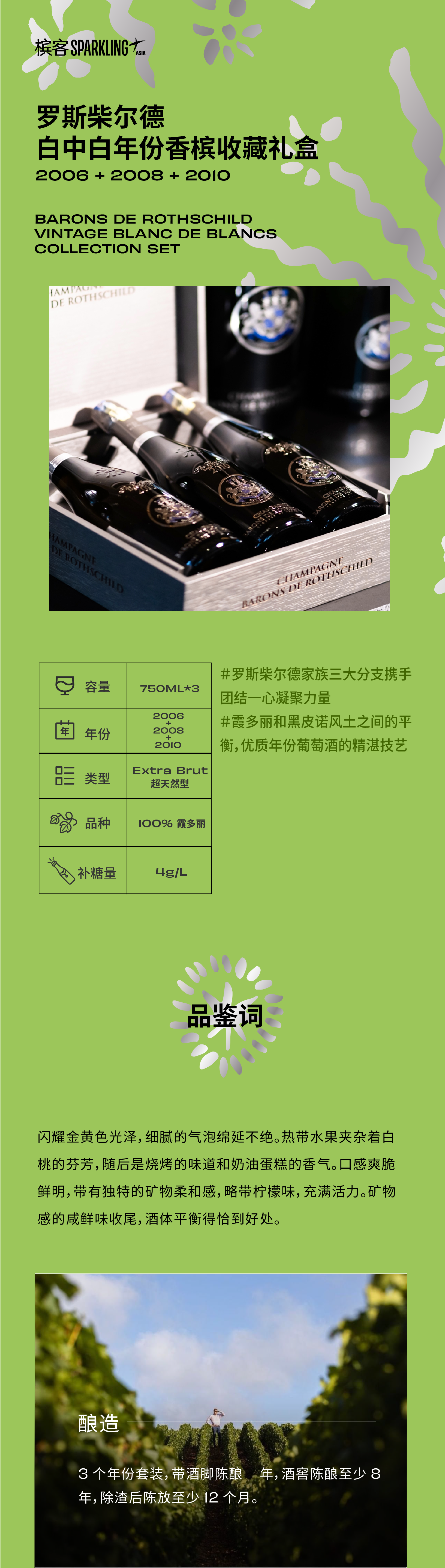 【VIP专享】 Barons de Rothschild Vintage Blanc de Blancs Collection Set 罗斯柴尔德白中白年份香槟收藏礼盒 2006+2008+2010
