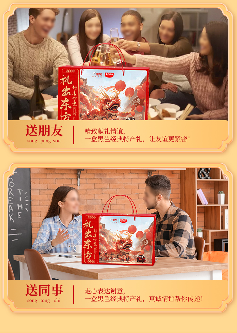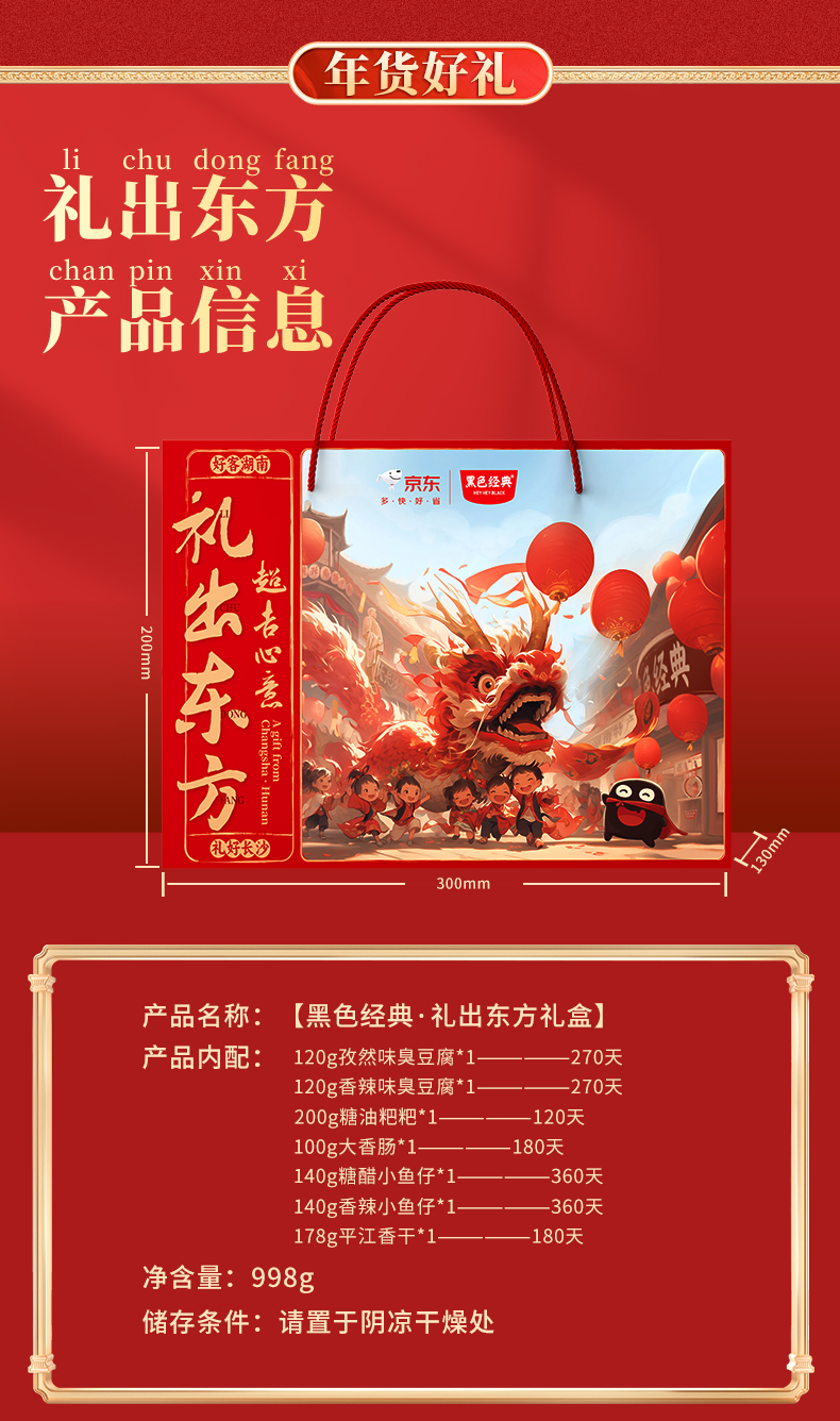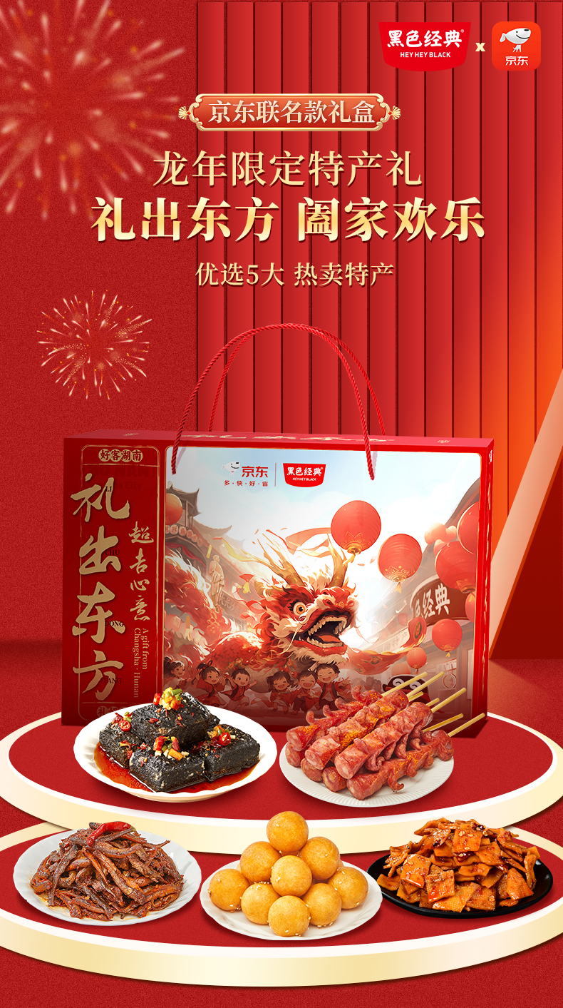 【新年礼盒】黑色经典礼出东方特产礼盒 含7款口碑特产共 998g