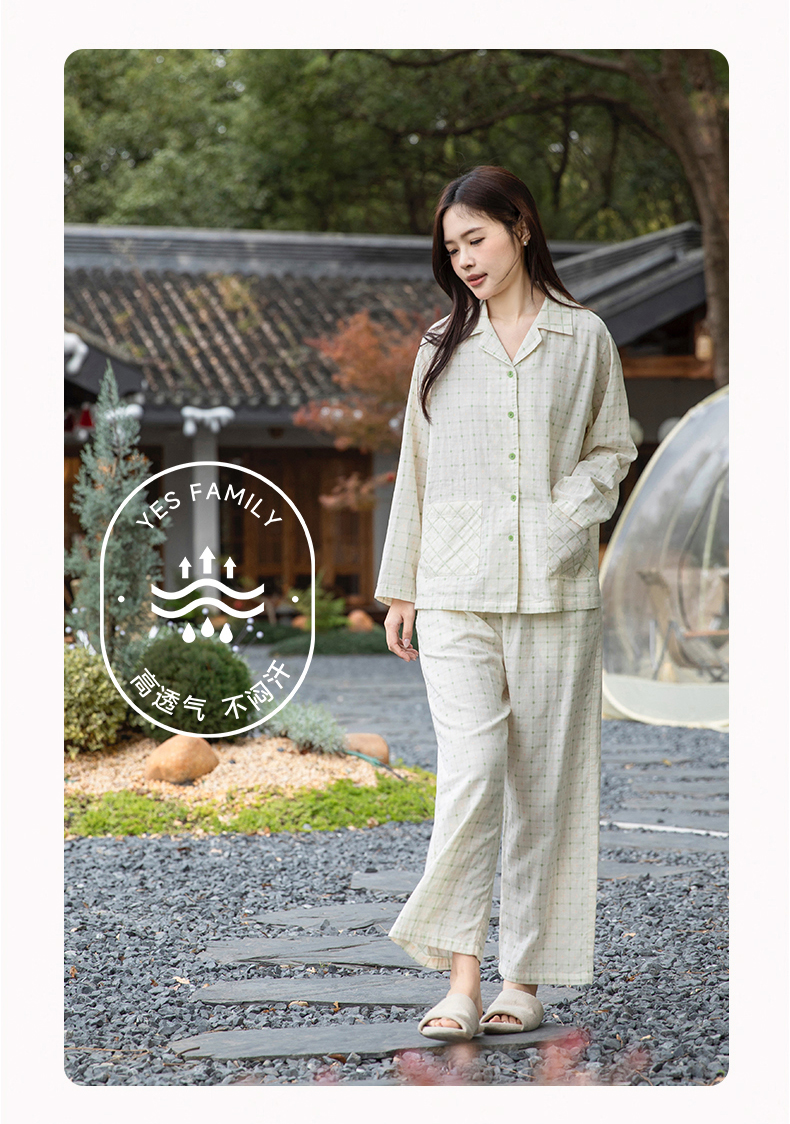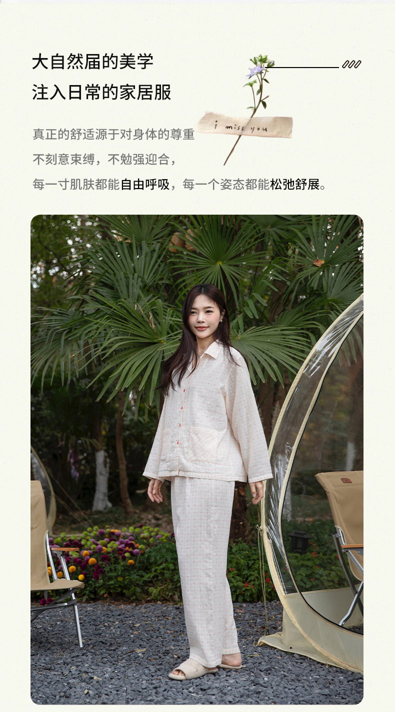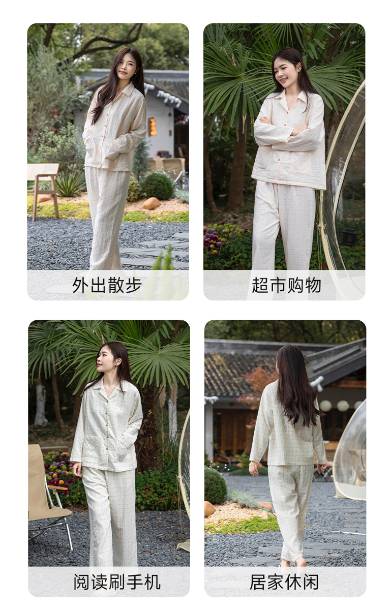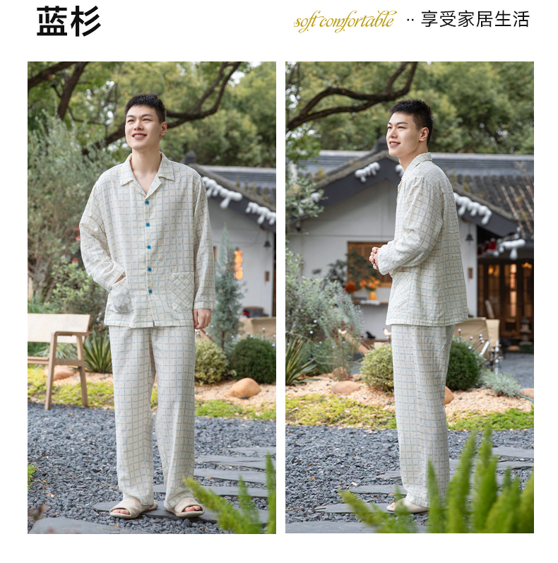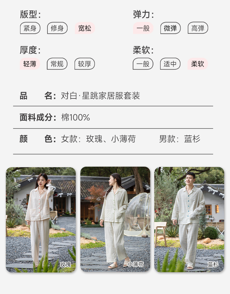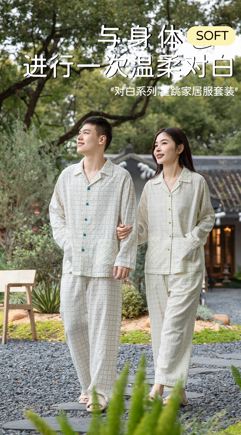 宜色家全棉双层纱对白·星跳情侣款套装,A类标准,软糯透气不闷汗
