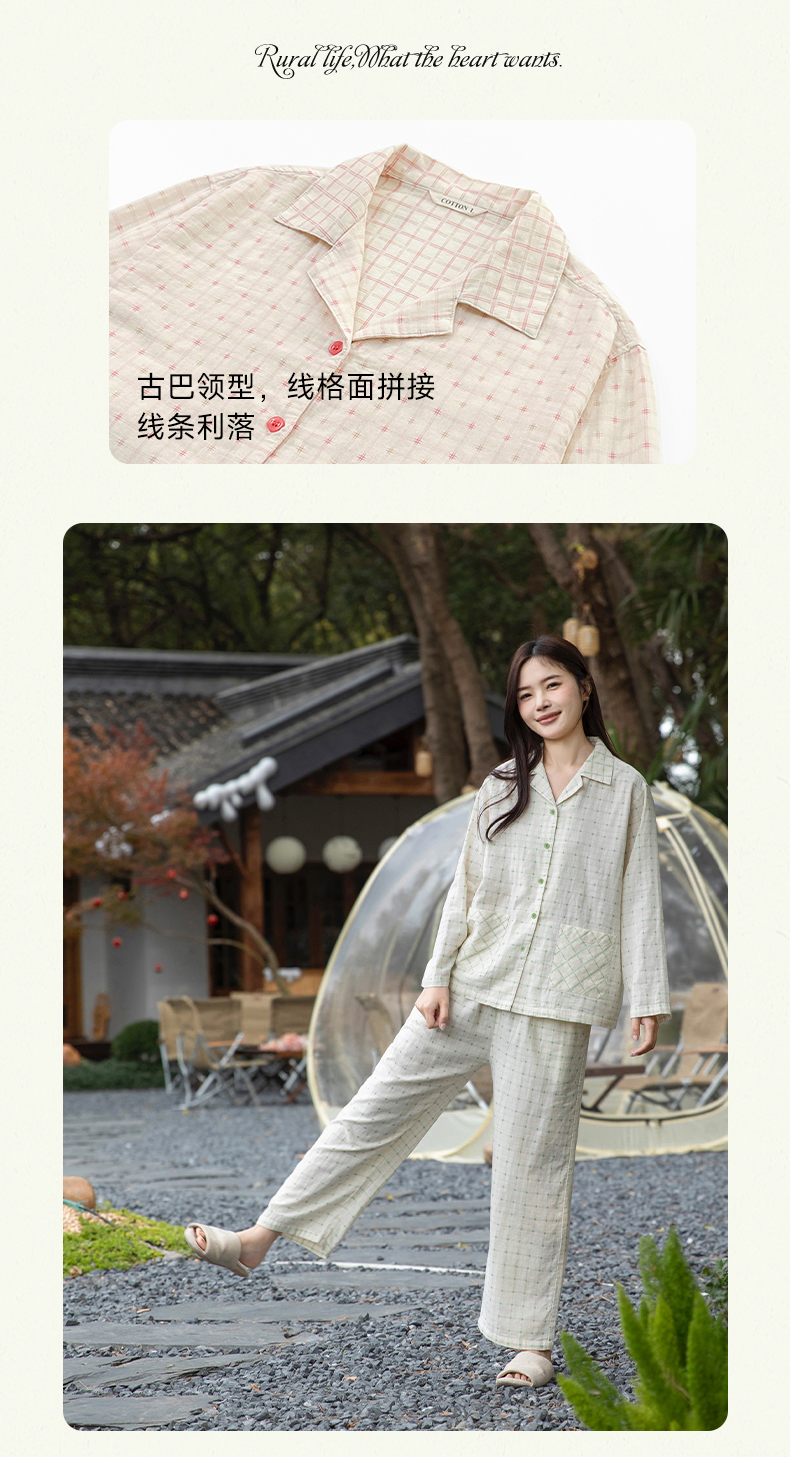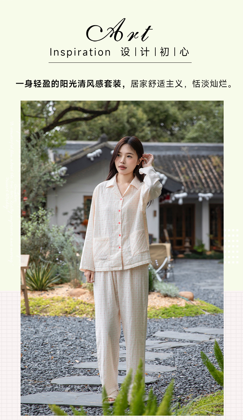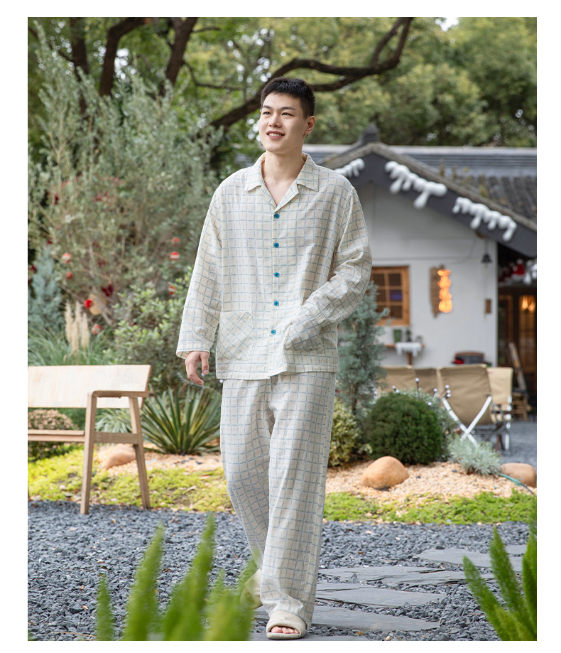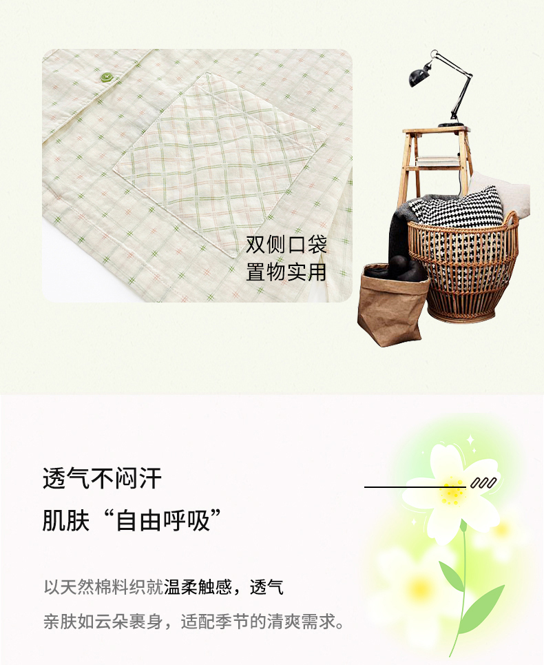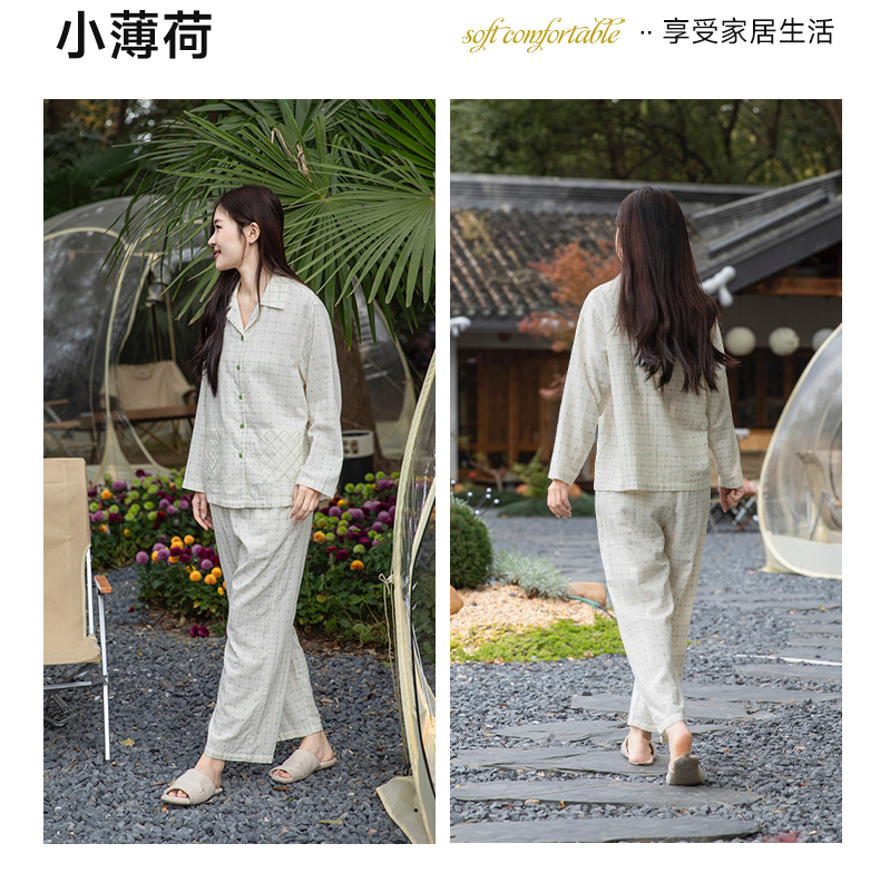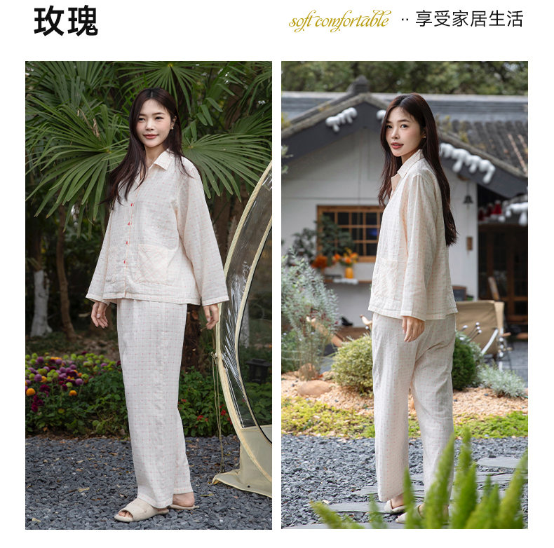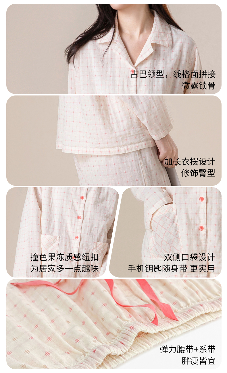 宜色家全棉双层纱对白·星跳情侣款套装,A类标准,软糯透气不闷汗