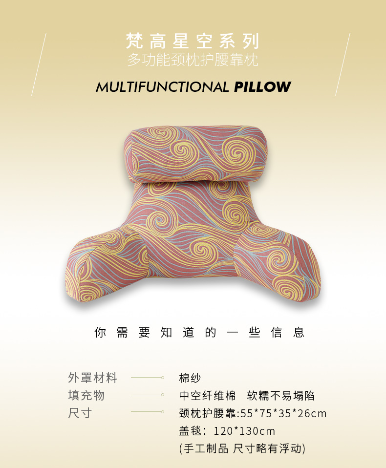 梵高星空系列护颈腰靠软包大靠背卧室榻榻米护腰沙发飘窗护颈枕可拆洗