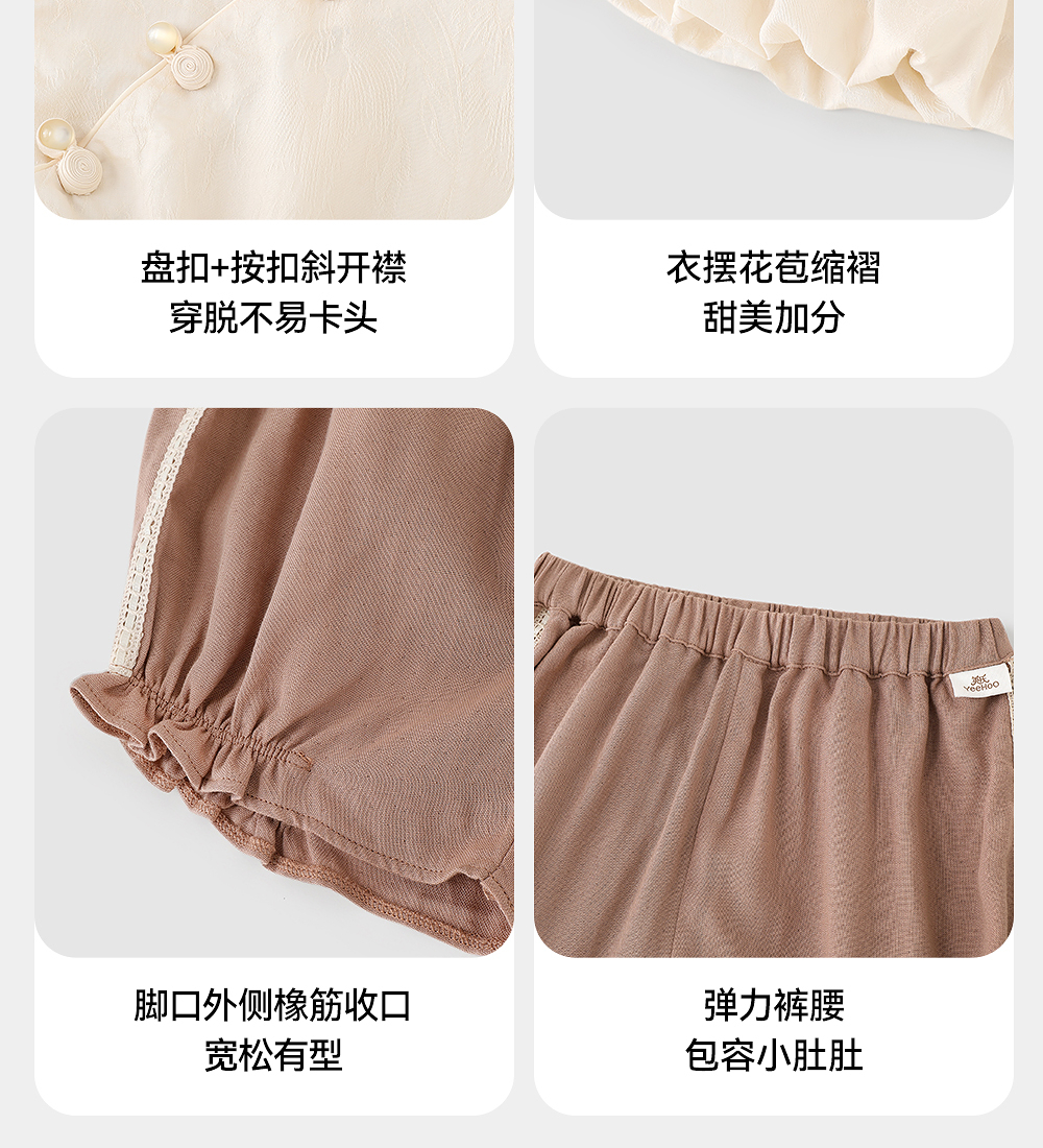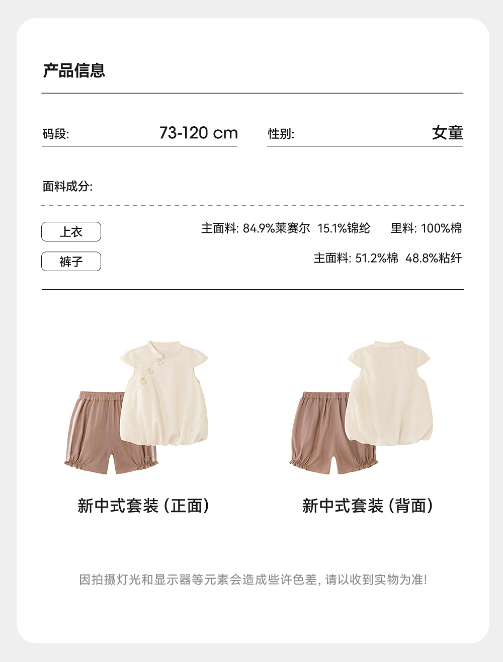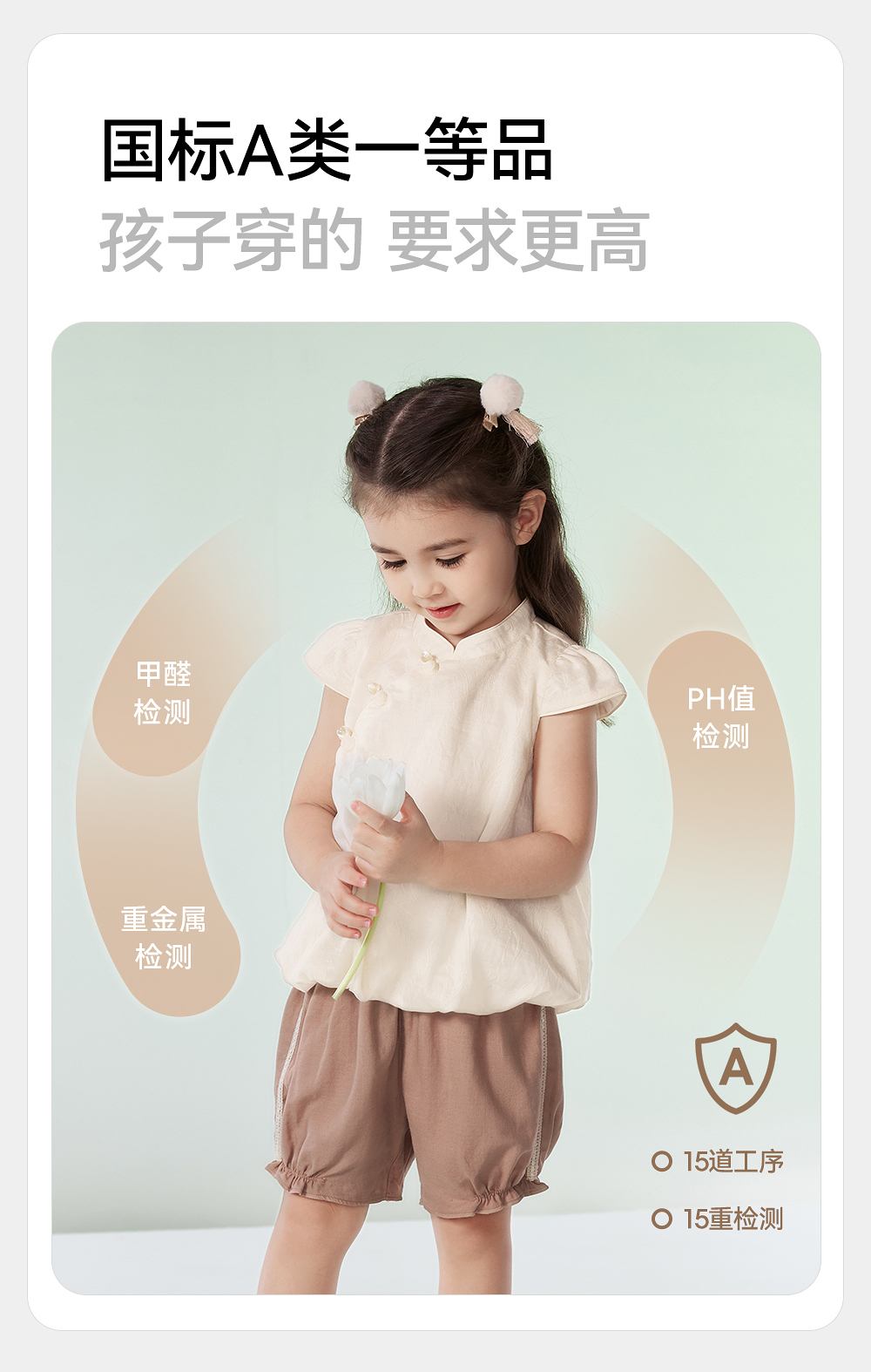 【商场同款】英氏童装夏季可爱女童衣服新中式透气上衣裤子套装