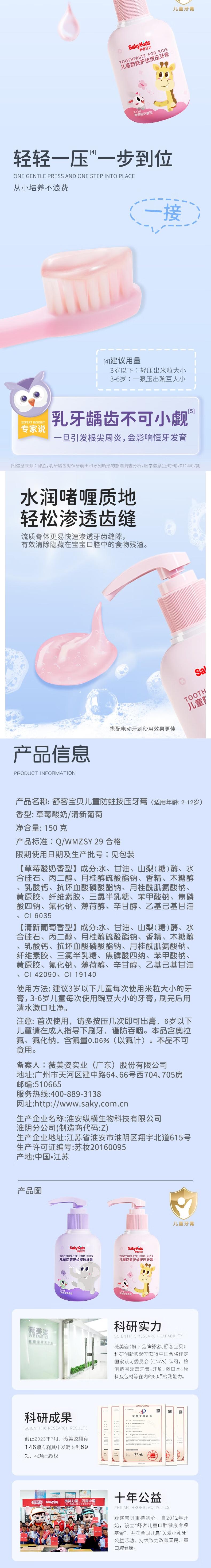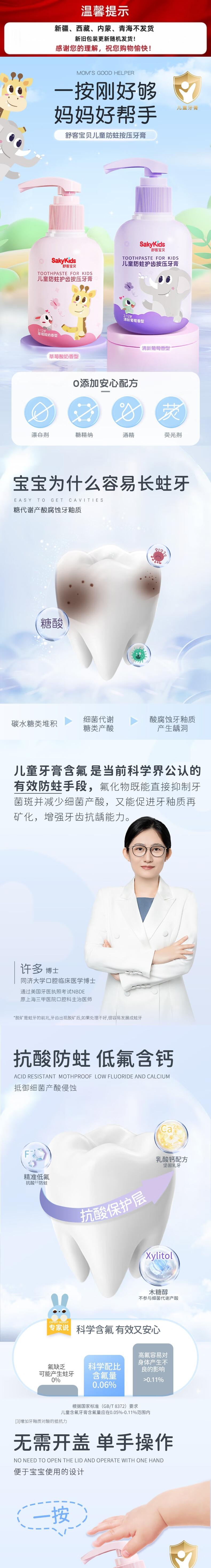 舒客 清新葡萄香型按压式牙膏150g*2瓶 skygpy2p