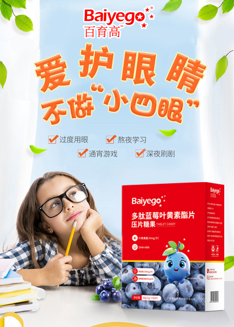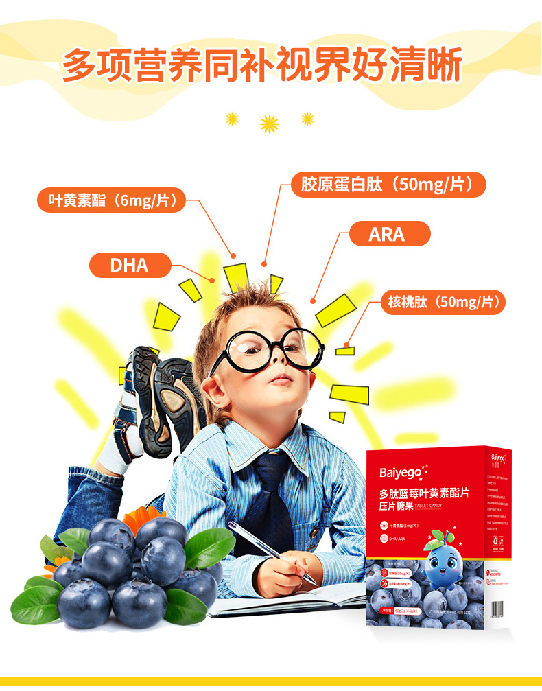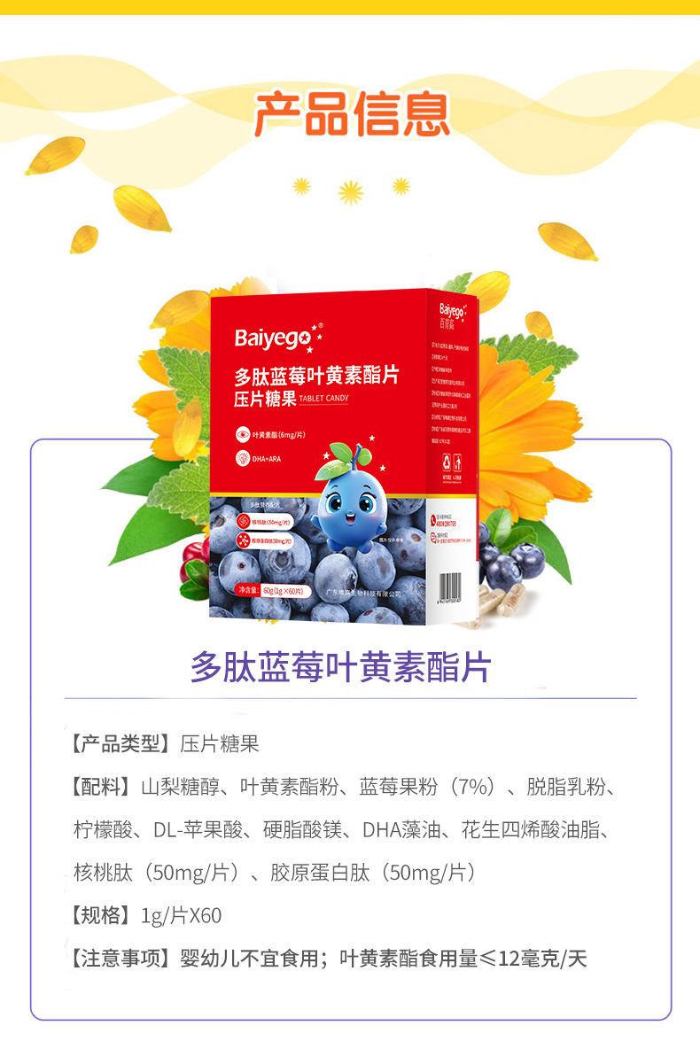 【特价秒杀】百育高多肽蓝莓叶黄素压片糖果60片/盒*3盒
