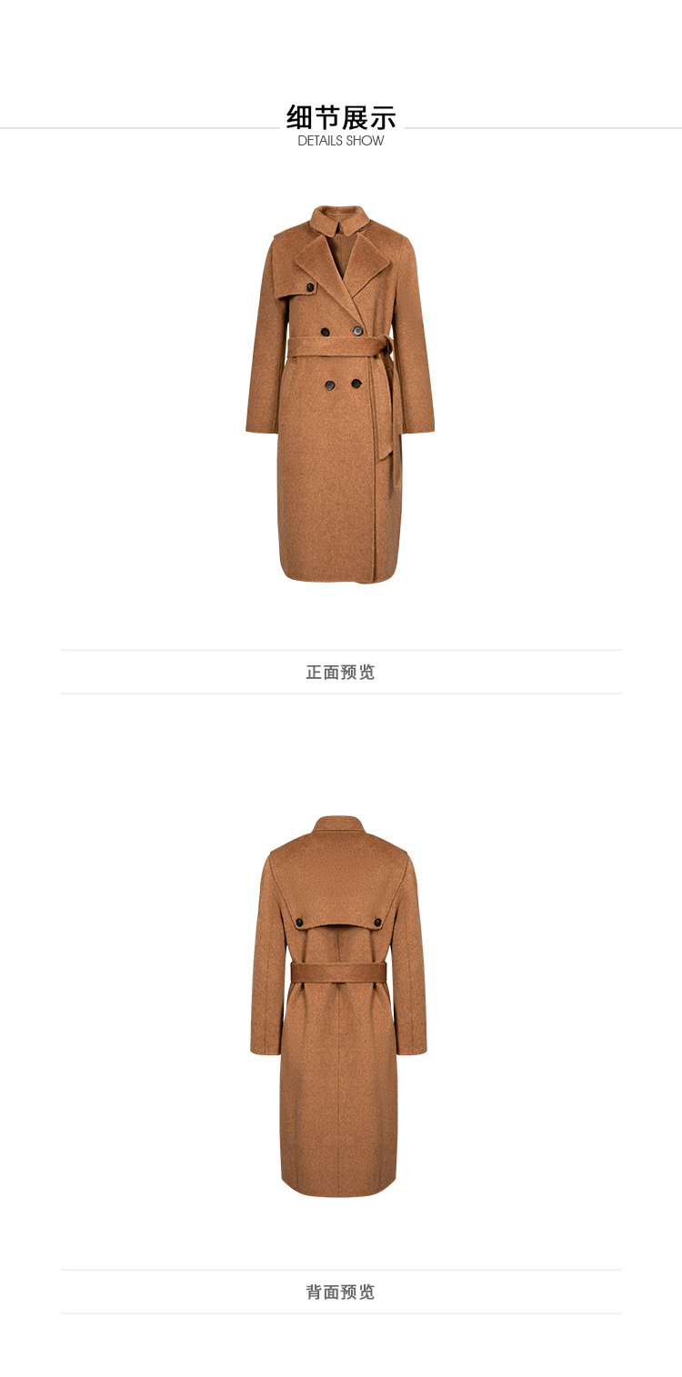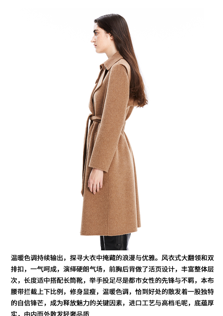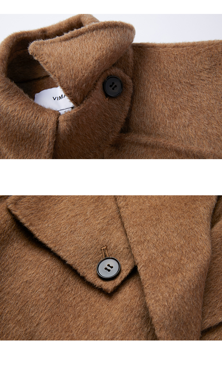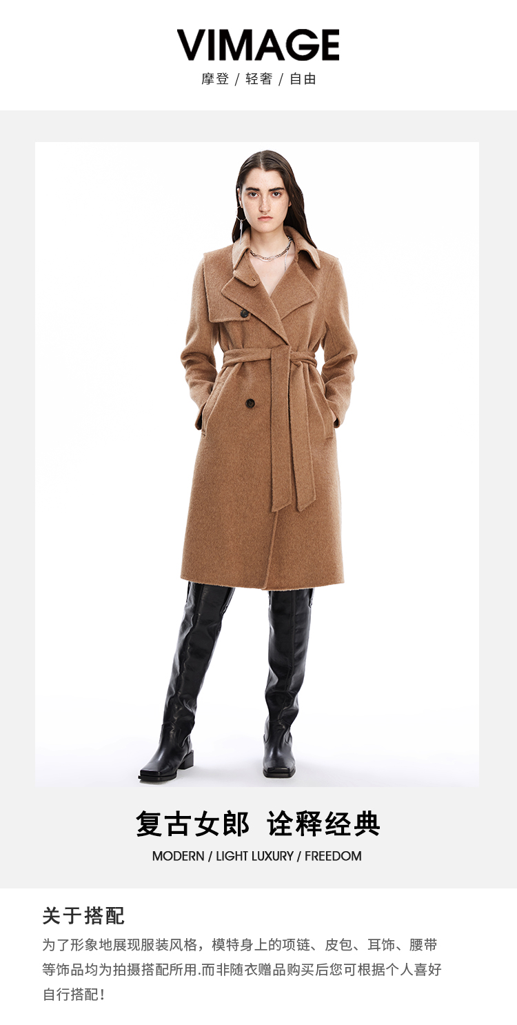 VIMAGE纬漫纪冬季新款复古驼色气质修身羊毛大衣V1614201