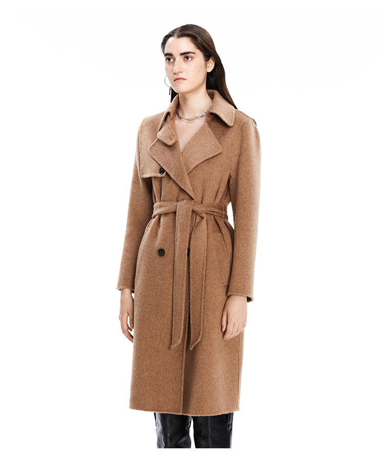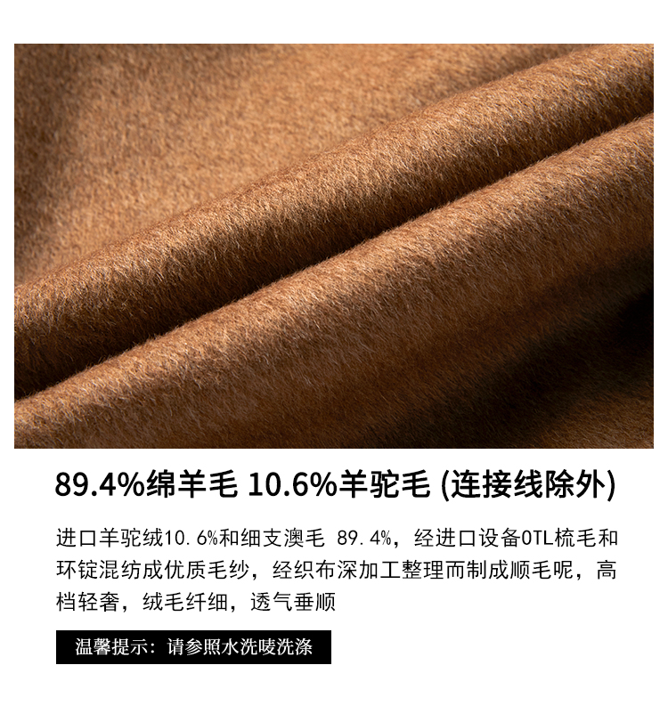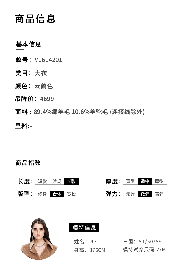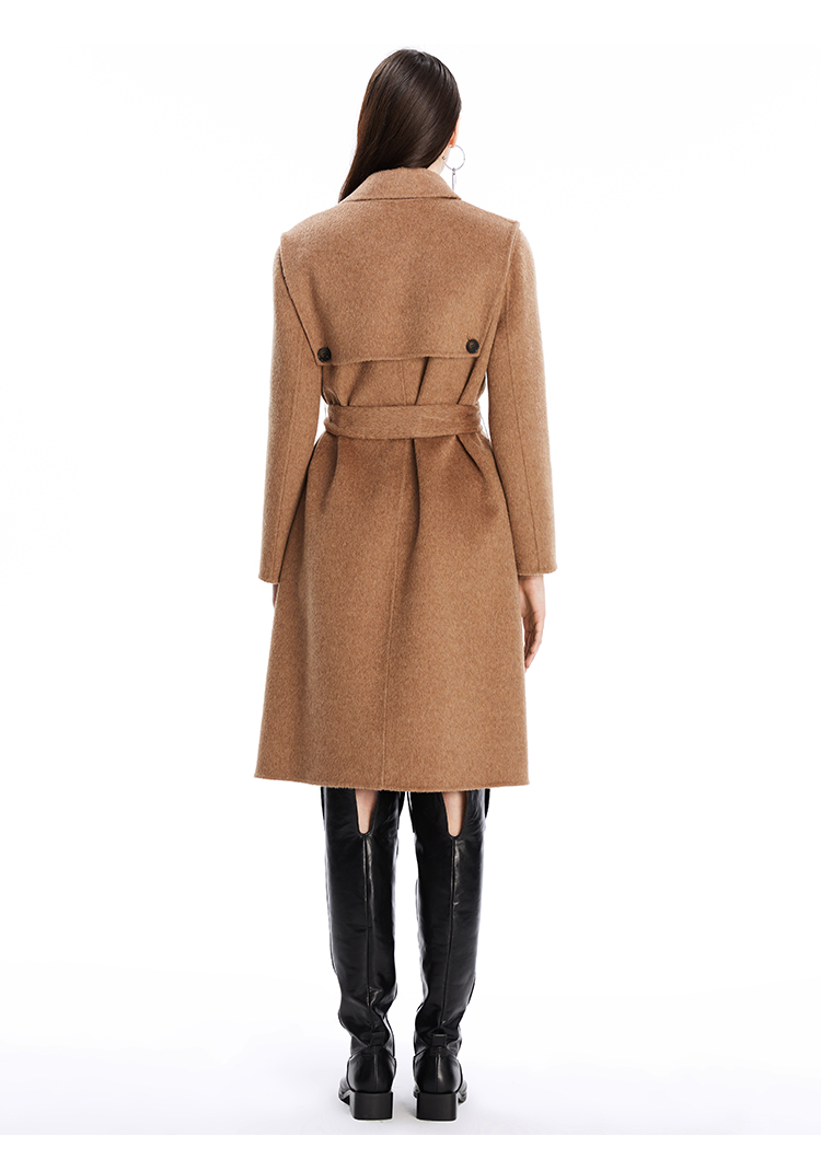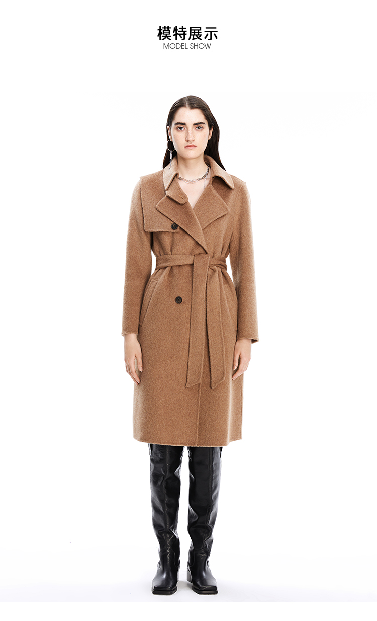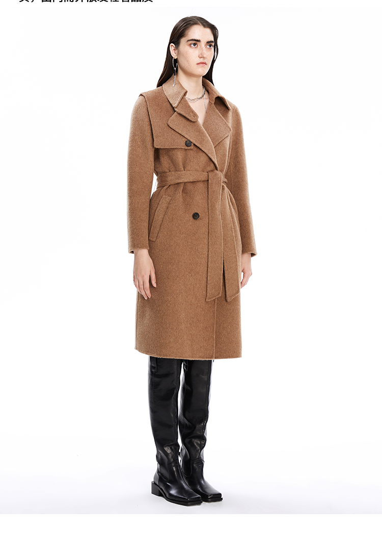 VIMAGE纬漫纪冬季新款复古驼色气质修身羊毛大衣V1614201