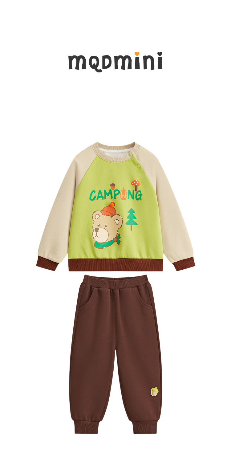 【MQD】童装男小童春新款卡通撞色插肩袖圆领套装