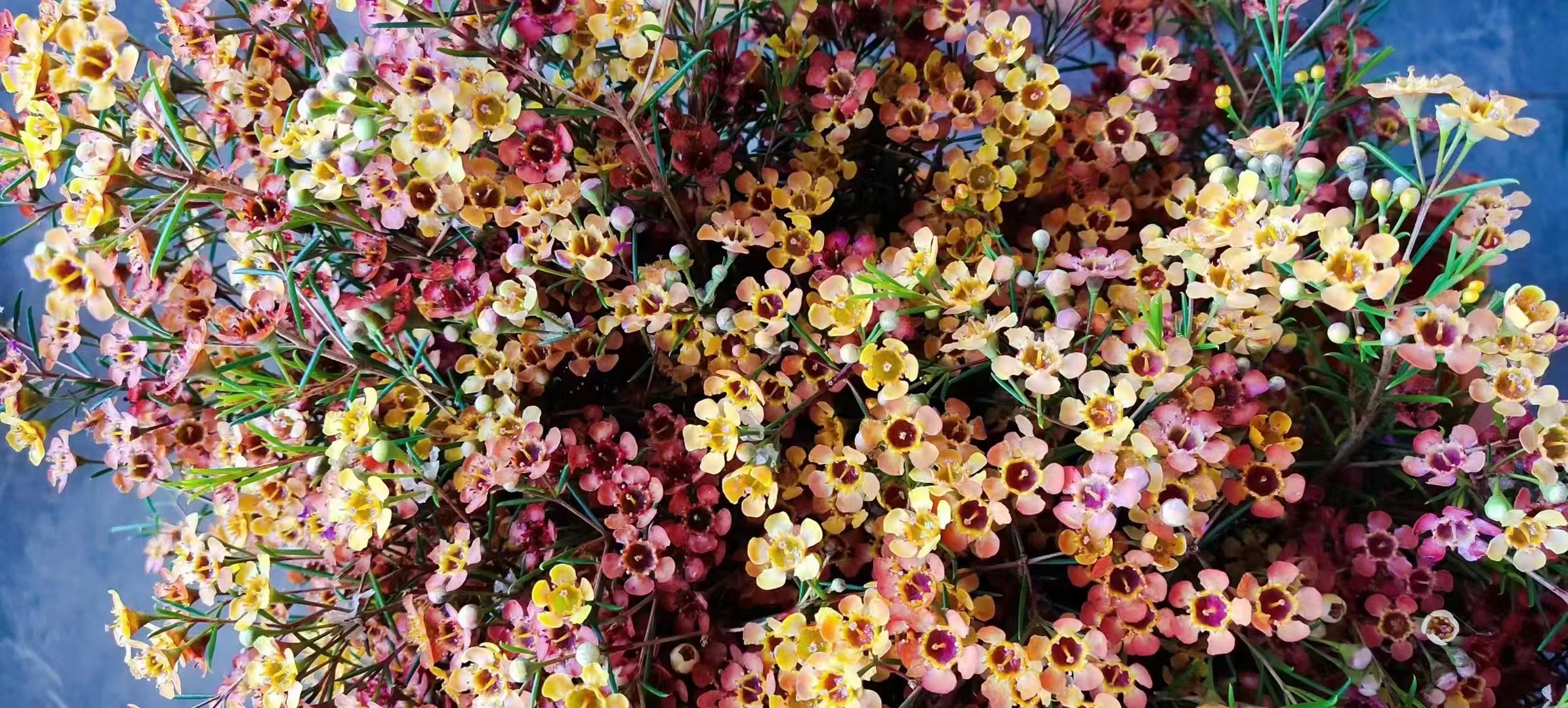 注:澳洲蜡花,由于它的质感、花期以及开放的时节而深受花艺师们喜爱,他是极好的东方式插花里面的配材,也是我们花束里最好的点缀,更是替代满天星的最好的选择!