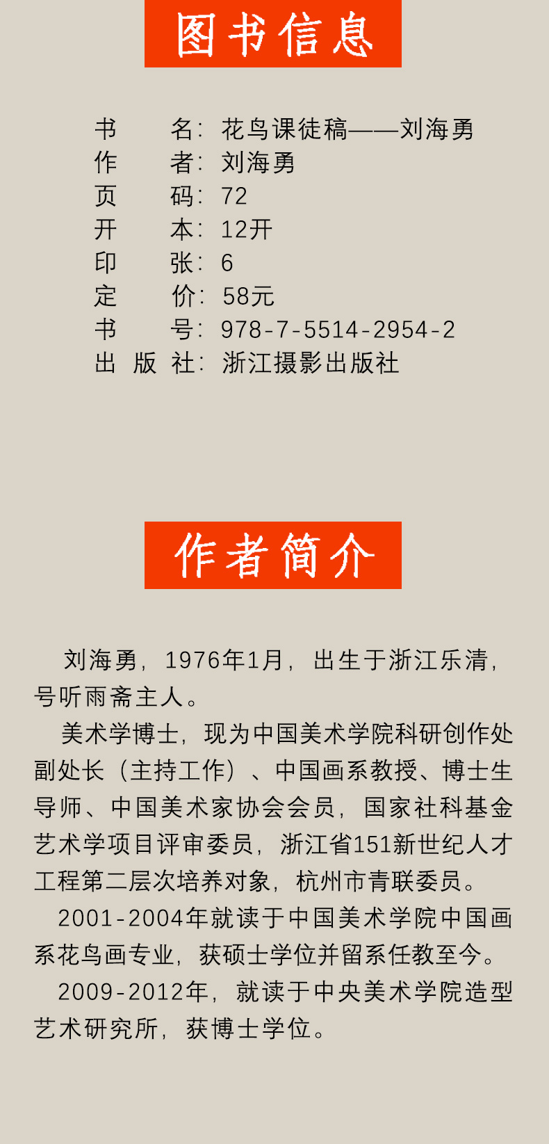 刘海勇花鸟课徒稿 南山课稿 中国美术学院名家教学示范作品 学生创作中国画初学入门临摹教程画册页国画绘画技法赏析教材作品画集——浙江摄影出版社