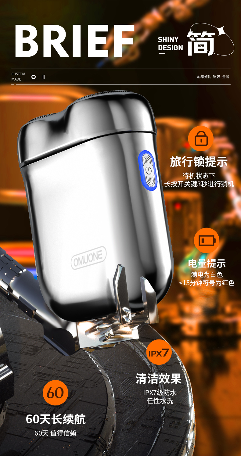 OMUONE欧慕尼全合金便携剃须刀XI-T7电动男士便携式迷你刮胡刀送男友送父亲礼物礼盒装