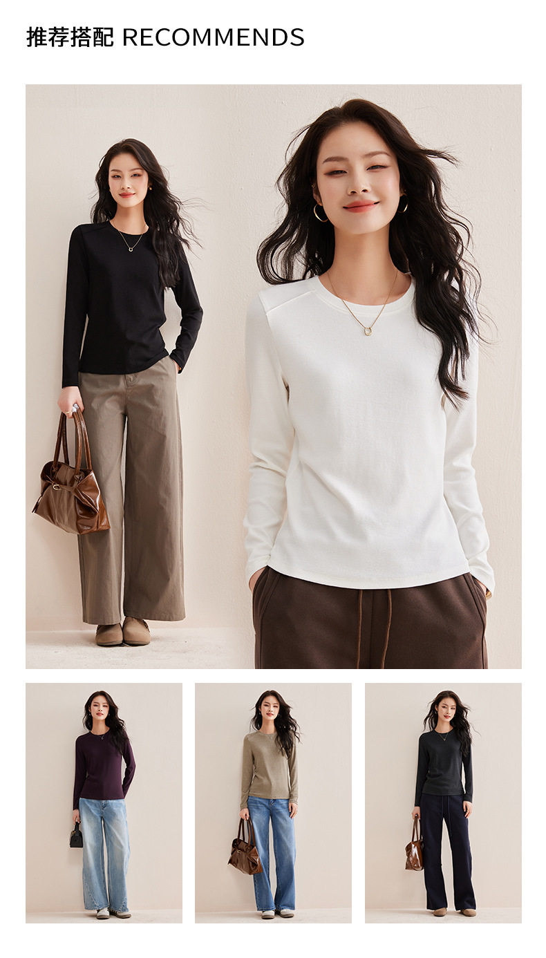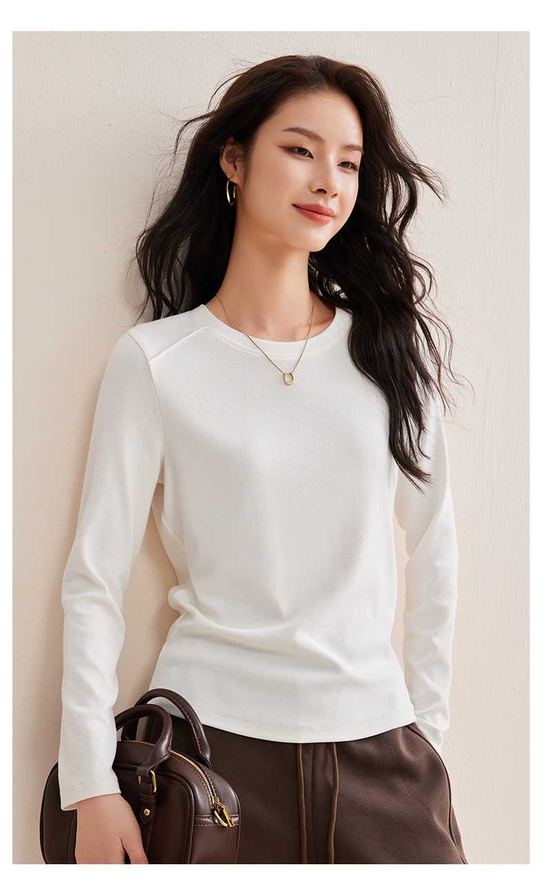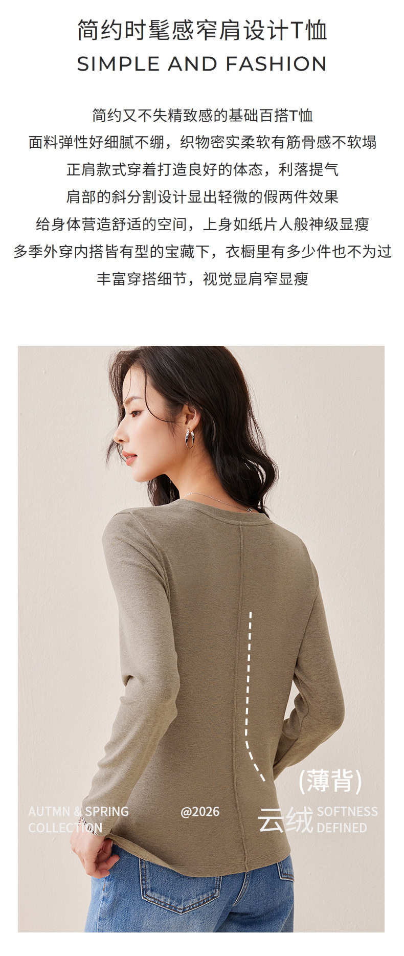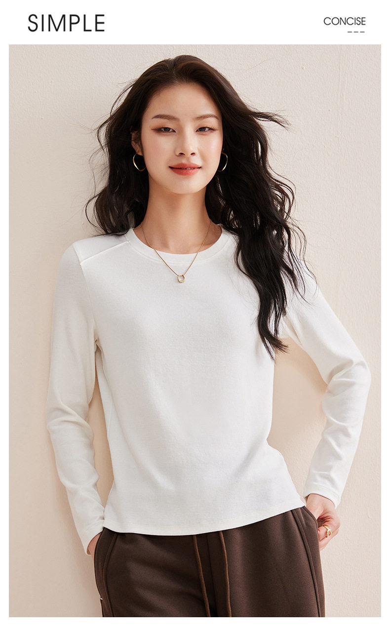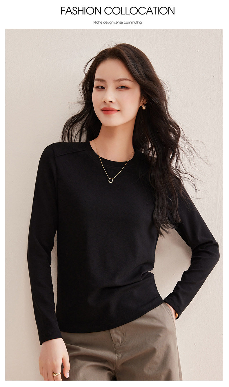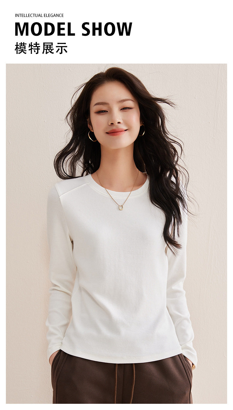 「自j」全新升级【铂金会员128/天猫169/差价41】(21609)洛诗琳正肩分割线设计T恤2026早春圆领弹力显瘦打底上衣女