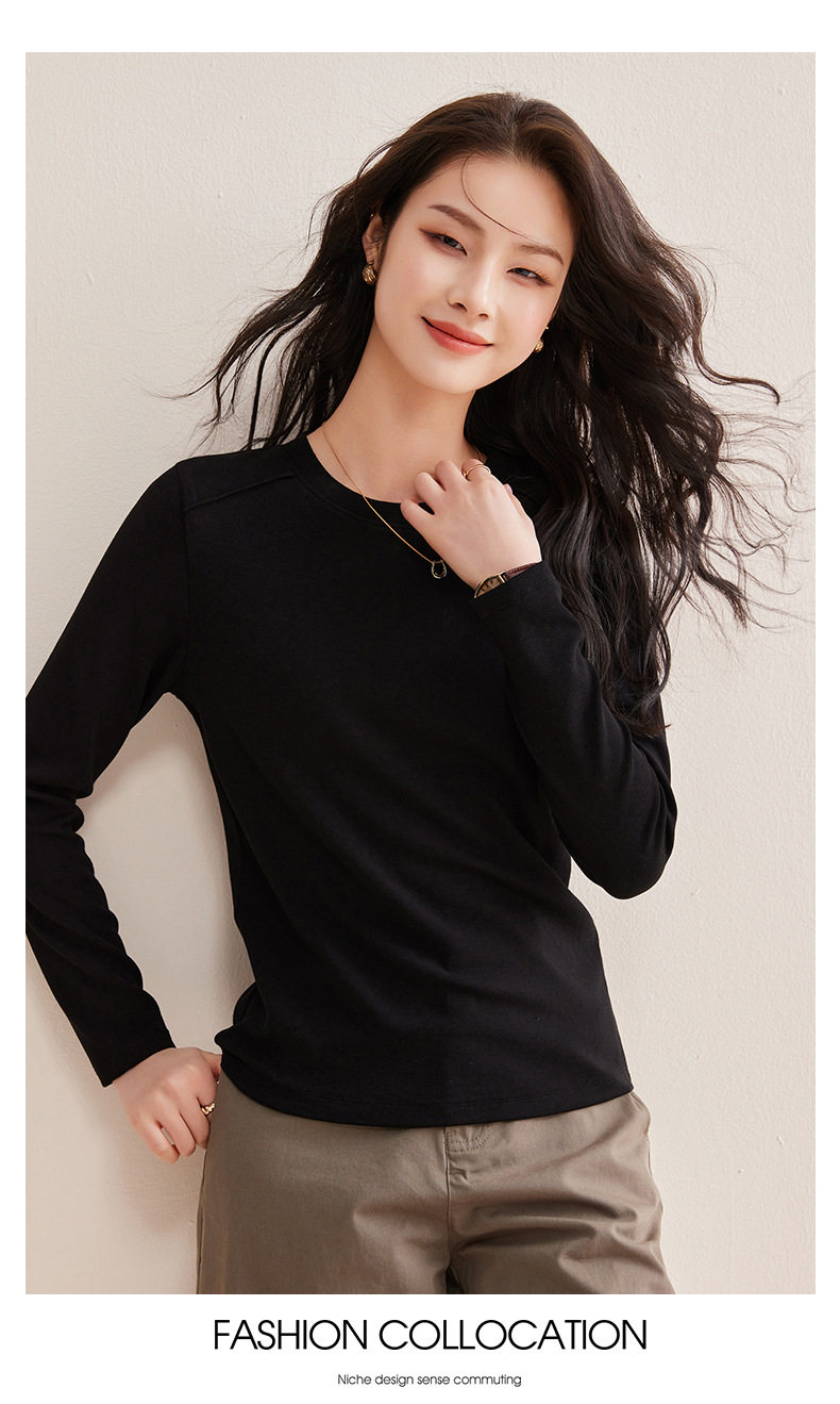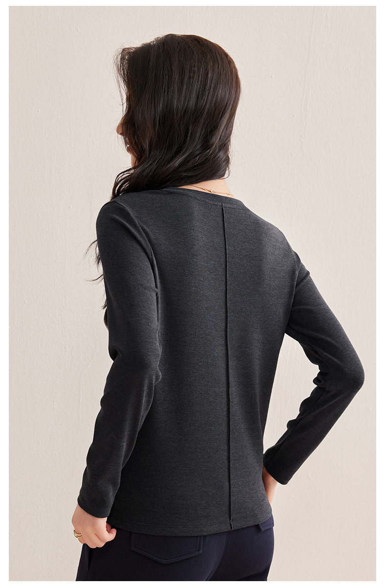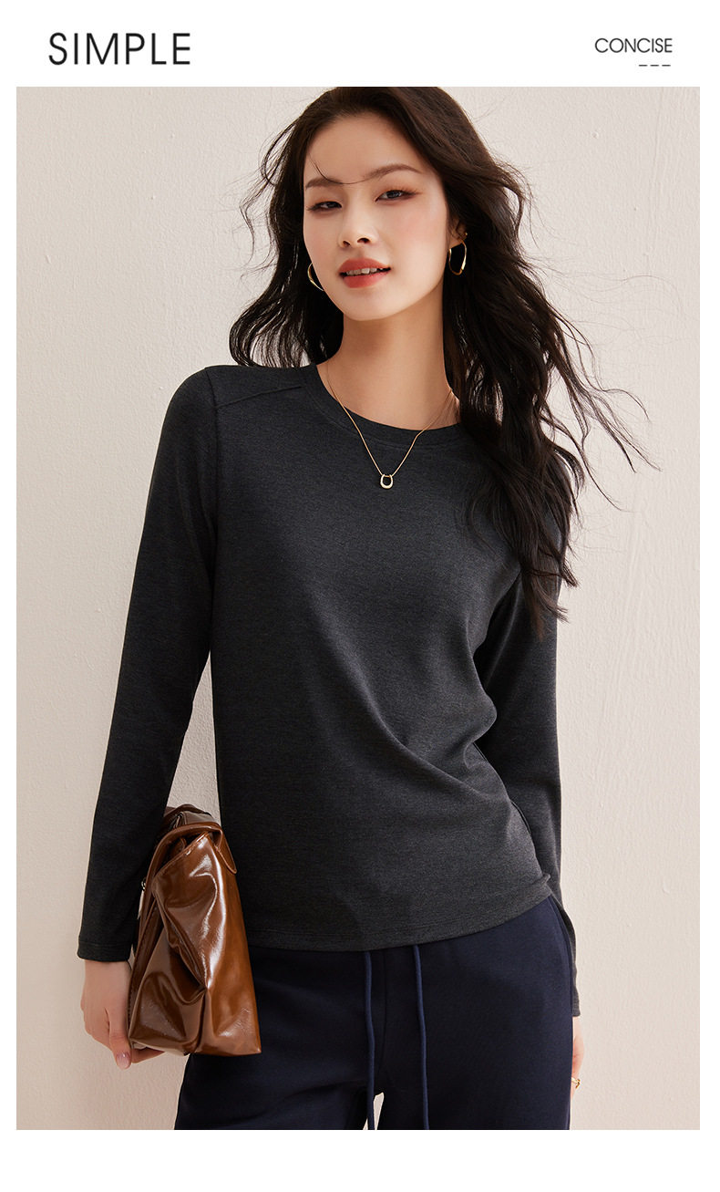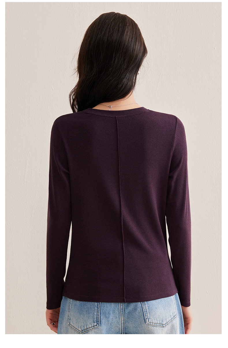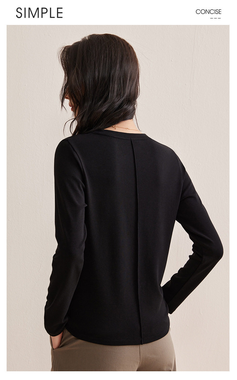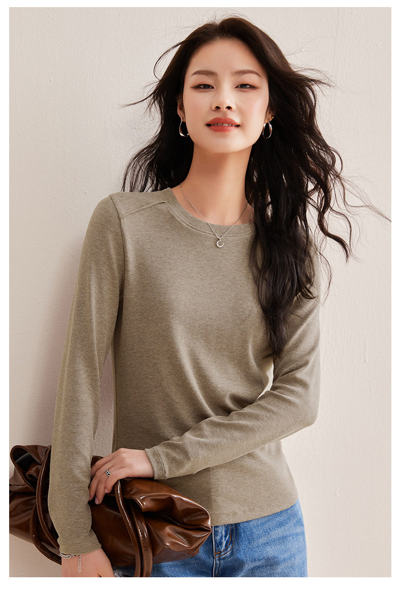 「自j」全新升级【铂金会员128/天猫169/差价41】(21609)洛诗琳正肩分割线设计T恤2026早春圆领弹力显瘦打底上衣女