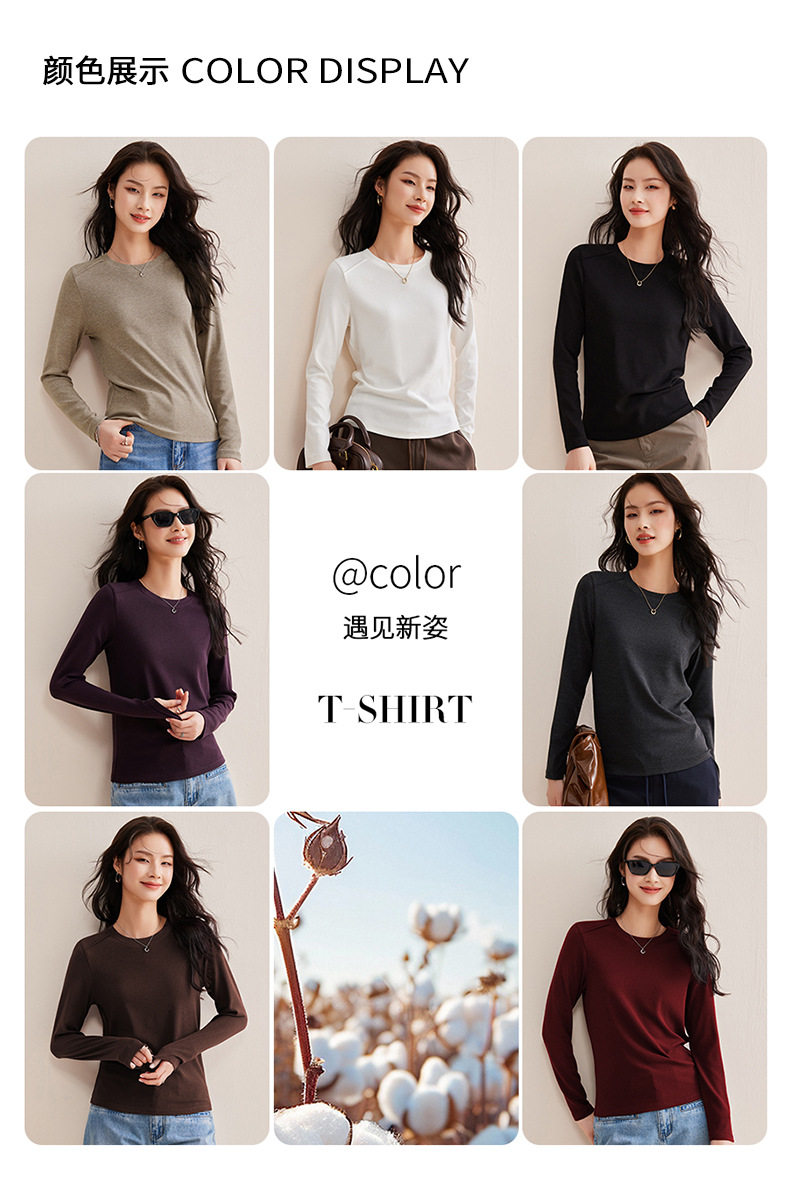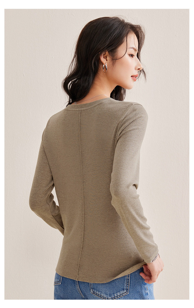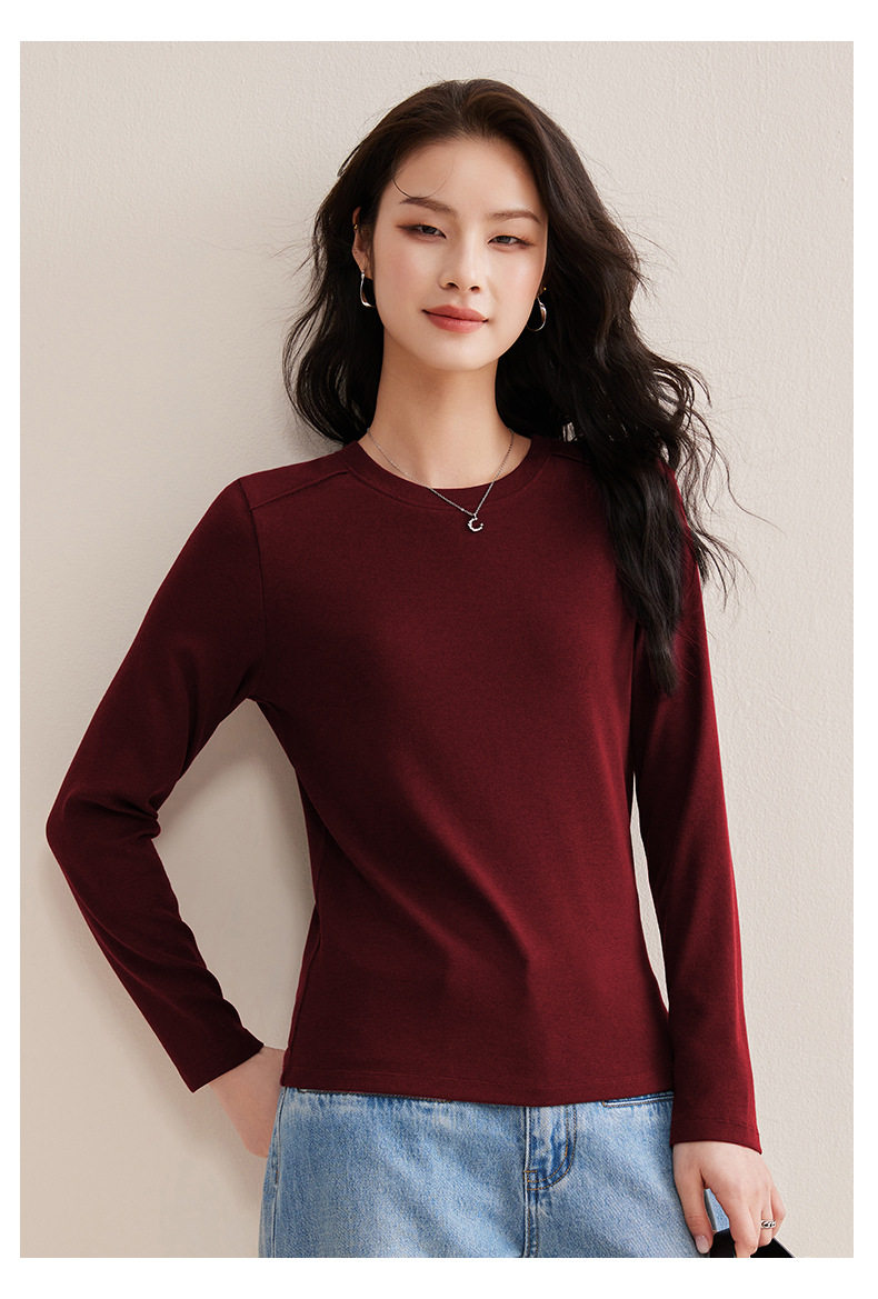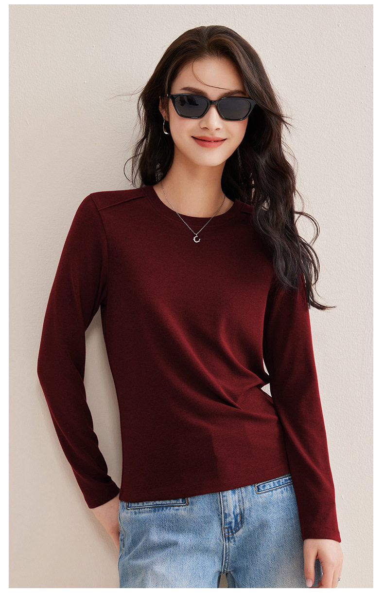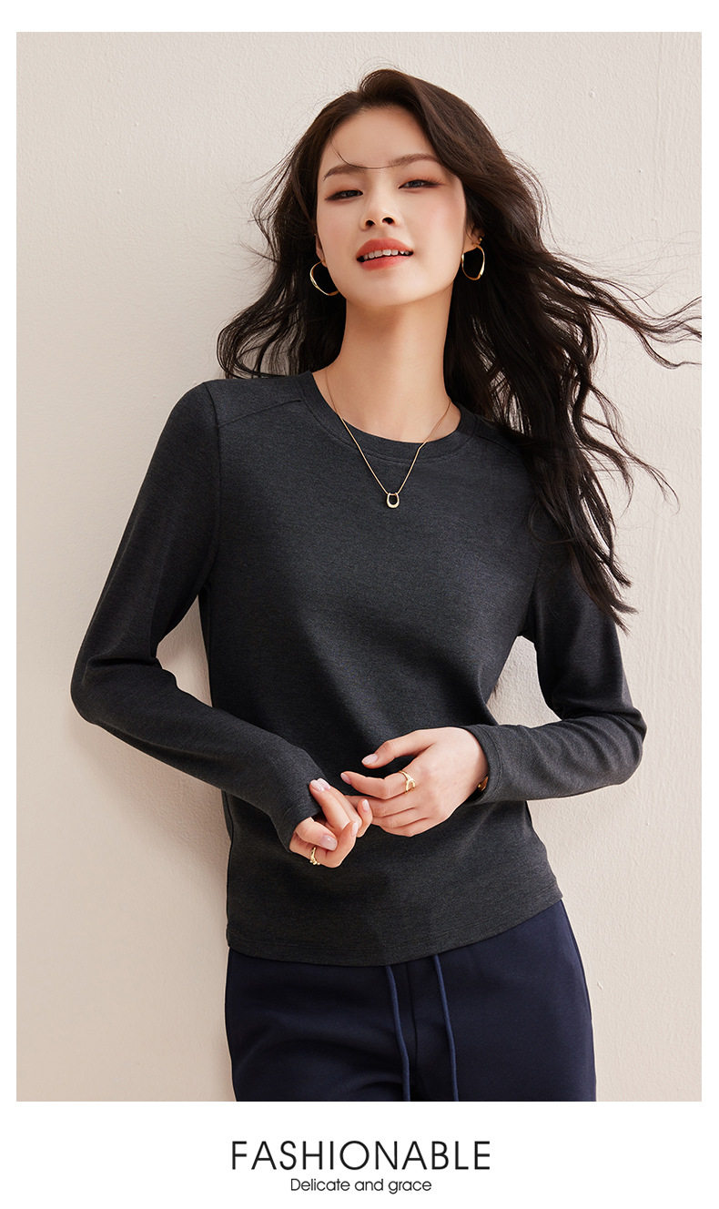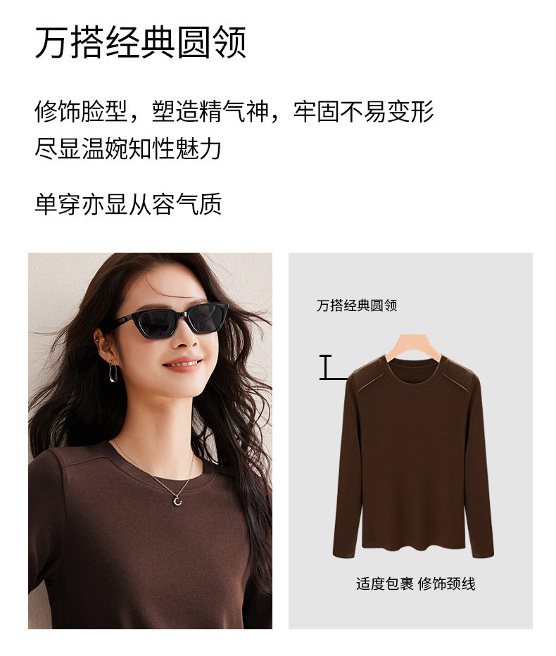 「自j」全新升级【铂金会员128/天猫169/差价41】(21609)洛诗琳正肩分割线设计T恤2026早春圆领弹力显瘦打底上衣女