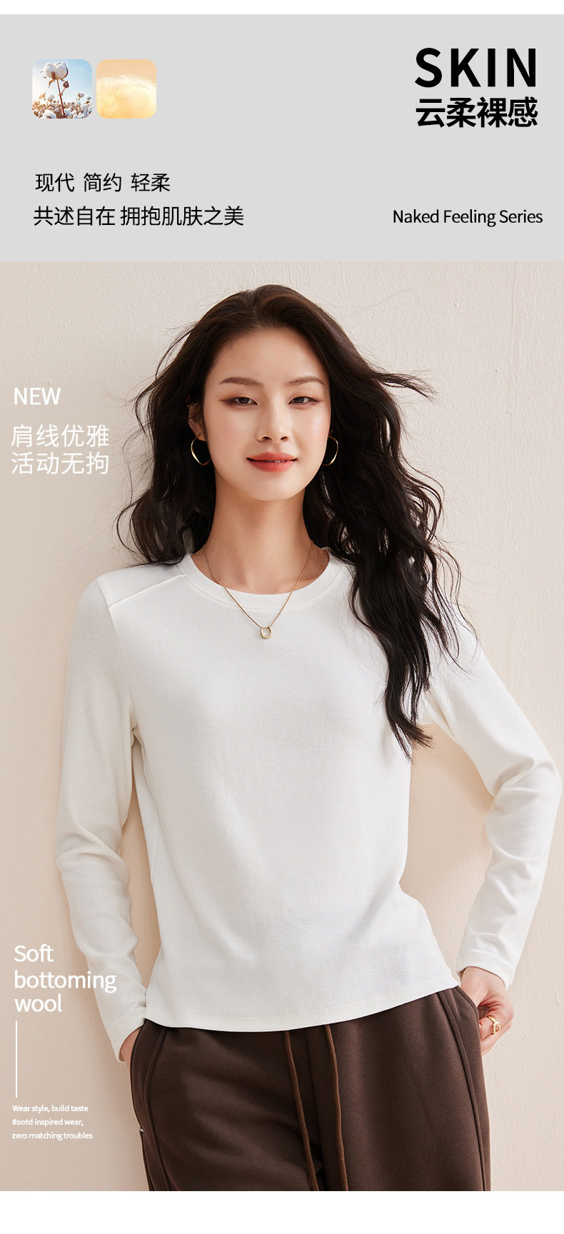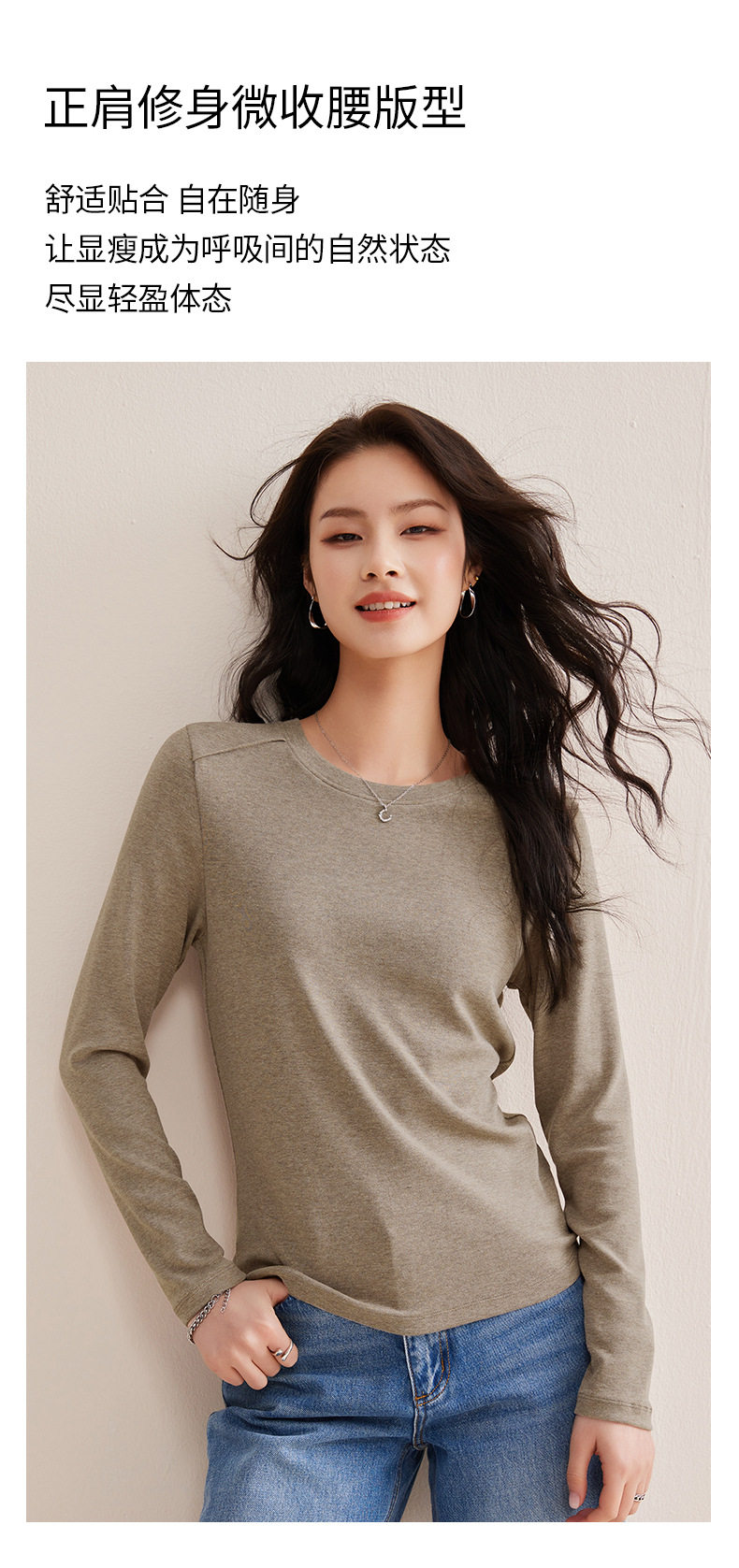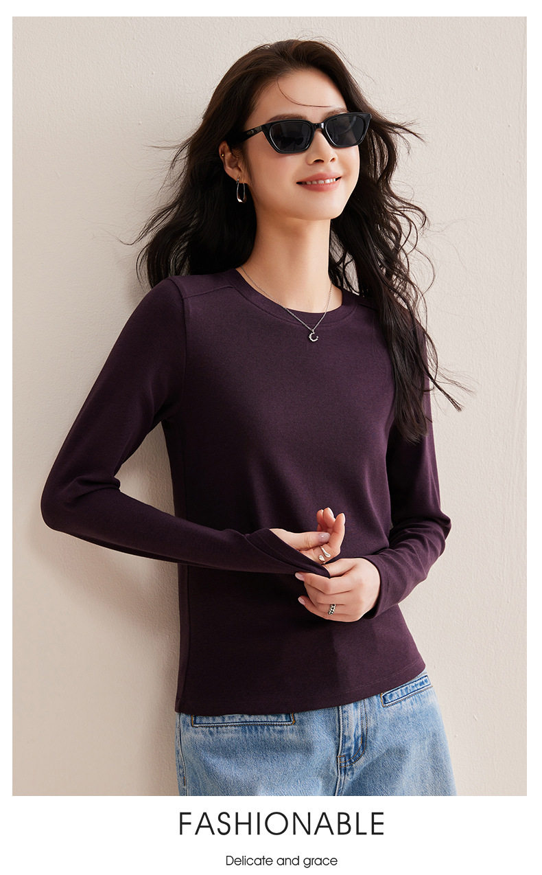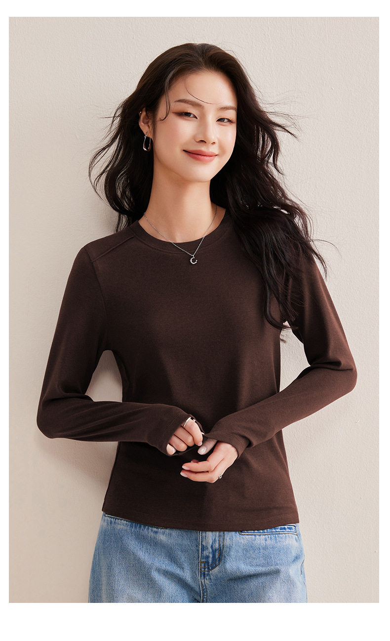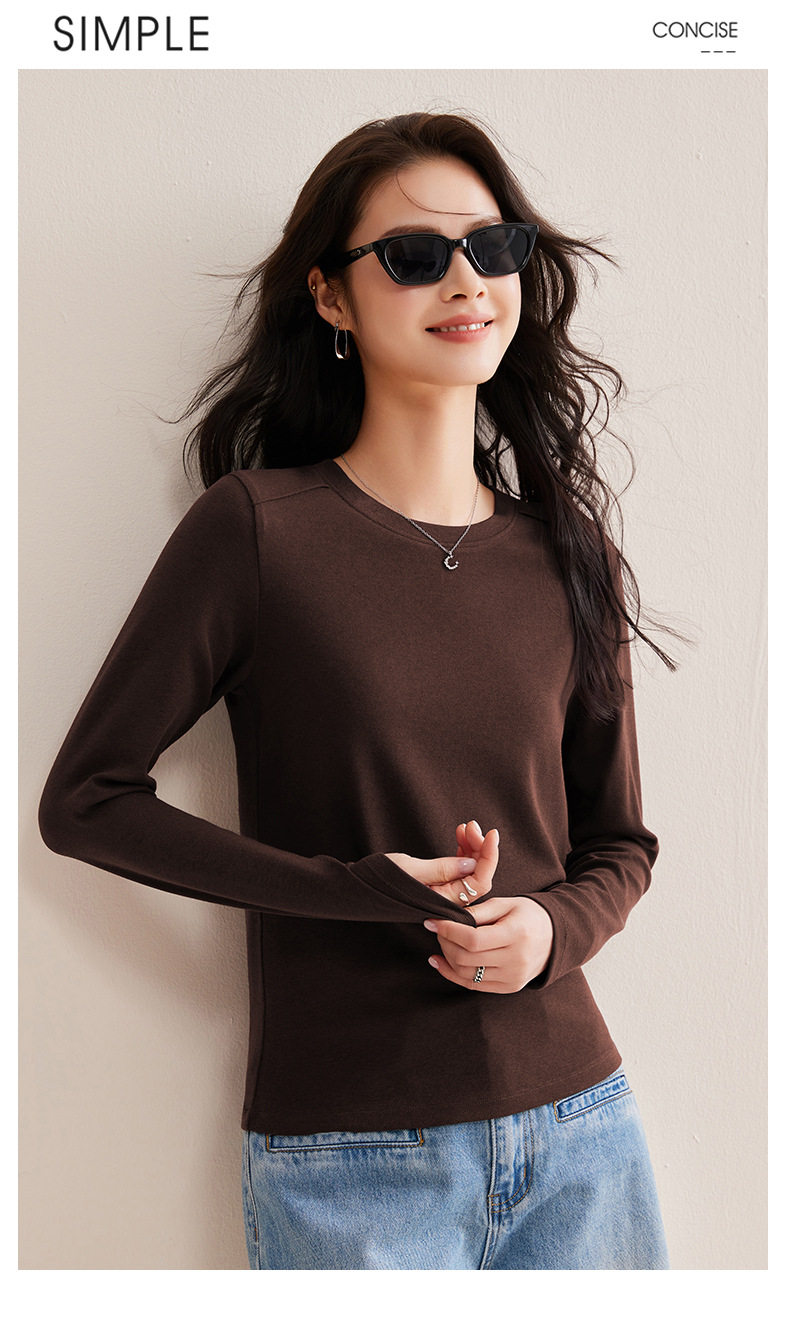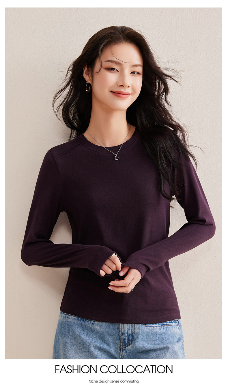 「自j」全新升级【铂金会员128/天猫169/差价41】(21609)洛诗琳正肩分割线设计T恤2026早春圆领弹力显瘦打底上衣女