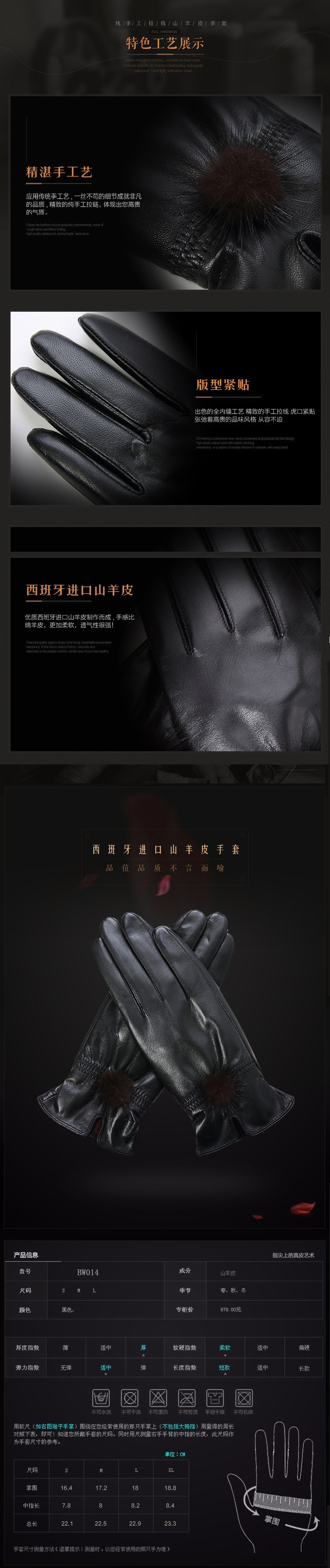 JM-BW014进口羊皮秋冬加厚保暖款时尚兔毛毛球女式真皮手套
