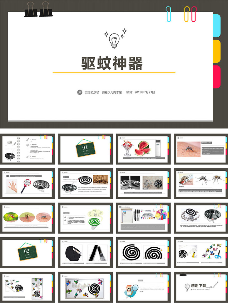 运用蚊子和蚊香进行画面的创作,充分的体现了夏天的感觉,首先运用超轻泥表现出蚊香的的色彩和质感,再用棉花体现出蚊香的烟雾,突出物体的写实感,最后运用线描的方式表现出蚊子的花纹和造型,让画面更加的生动自然。