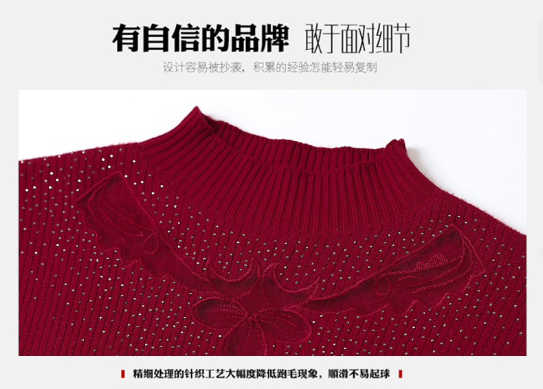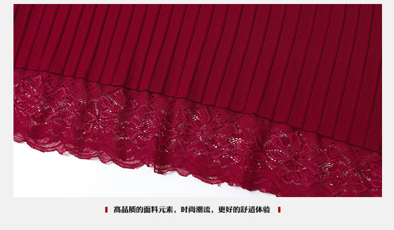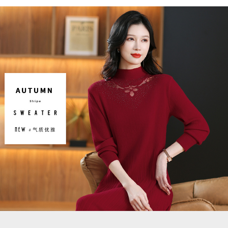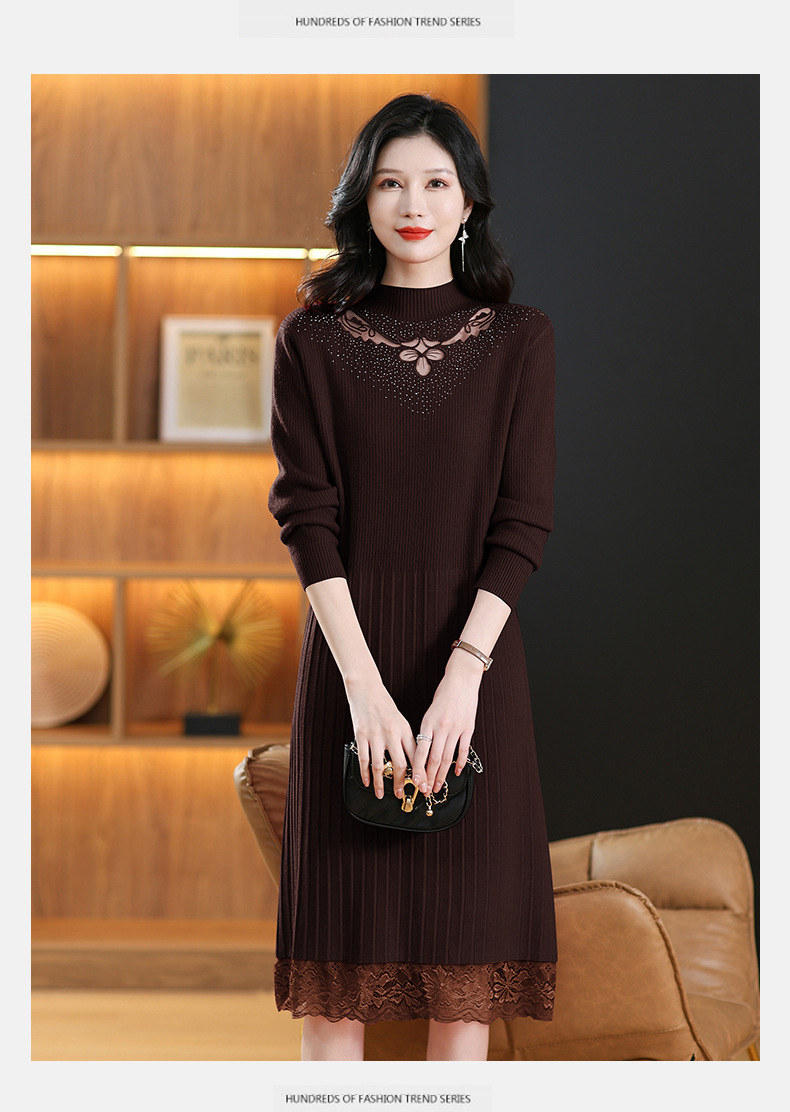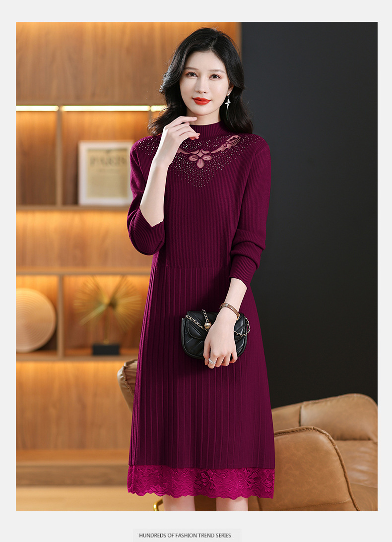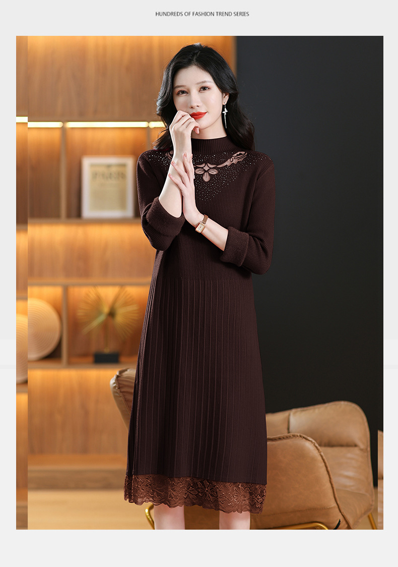 CC-MH-347半高领加绒加厚连衣裙女冬季2024新款配大衣中长款蕾丝打底毛衣裙