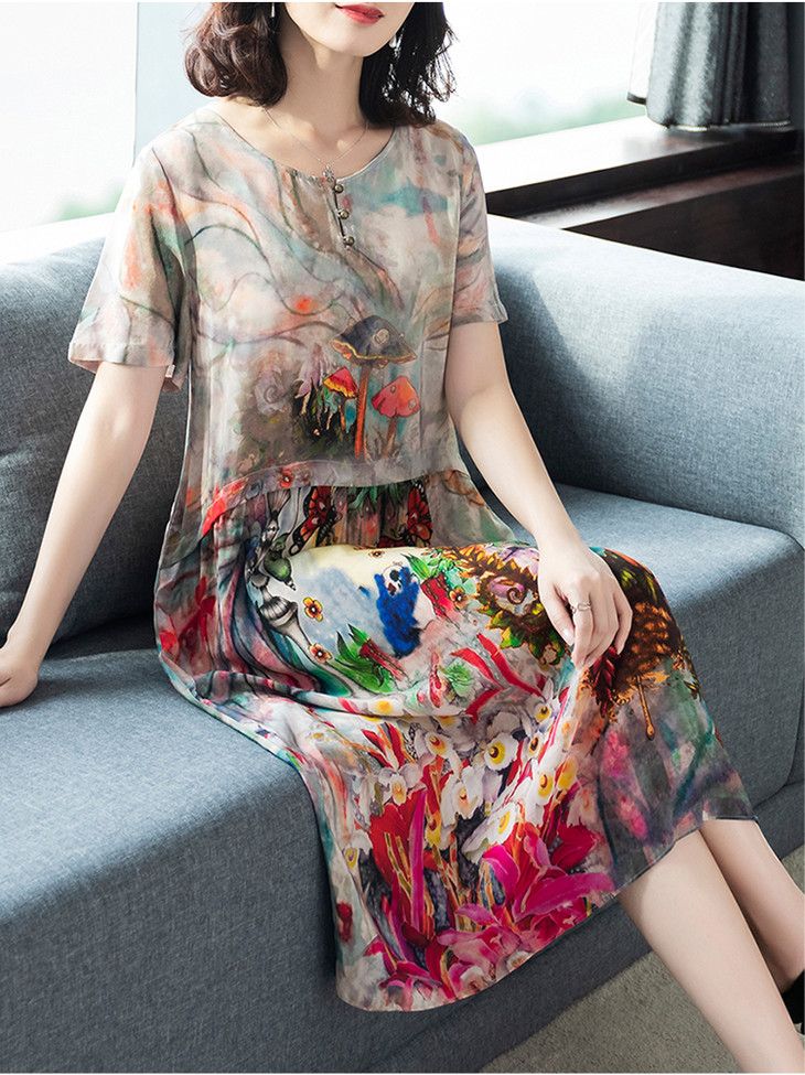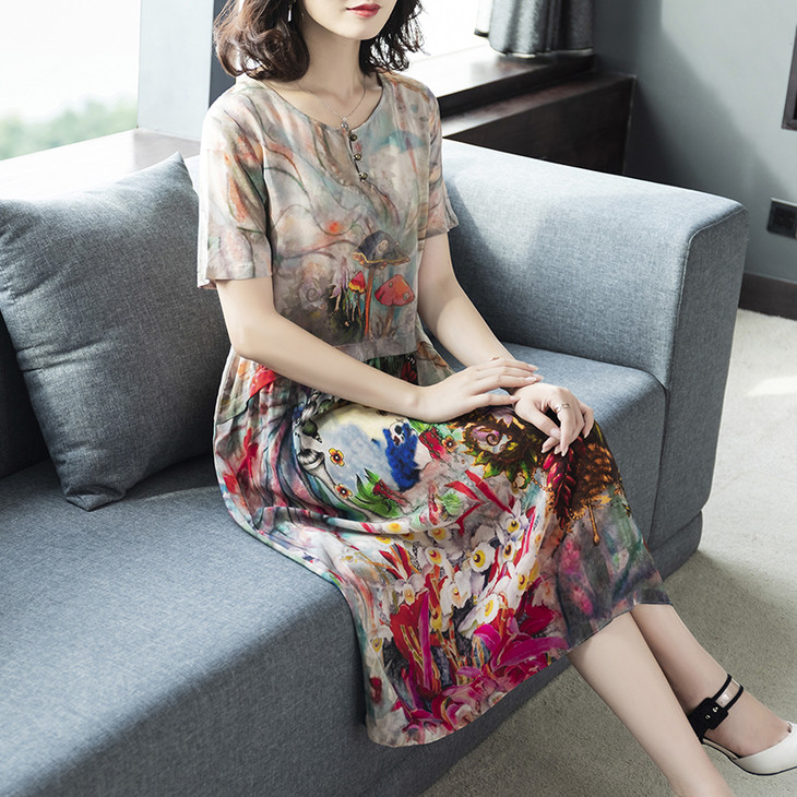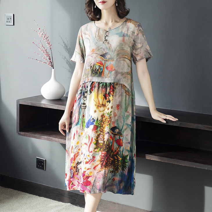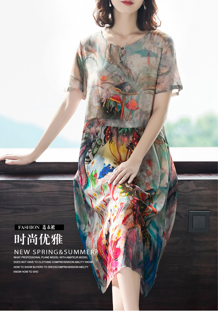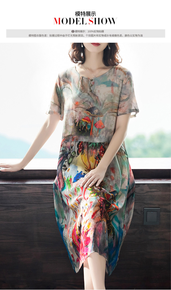 AFE-2468671-宽松显瘦遮肉中长款过膝连衣裙