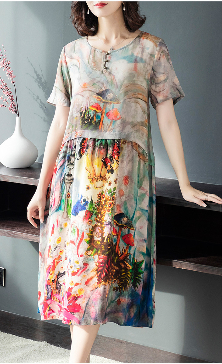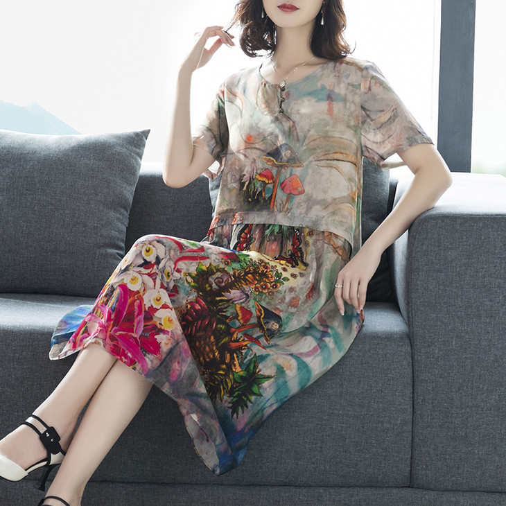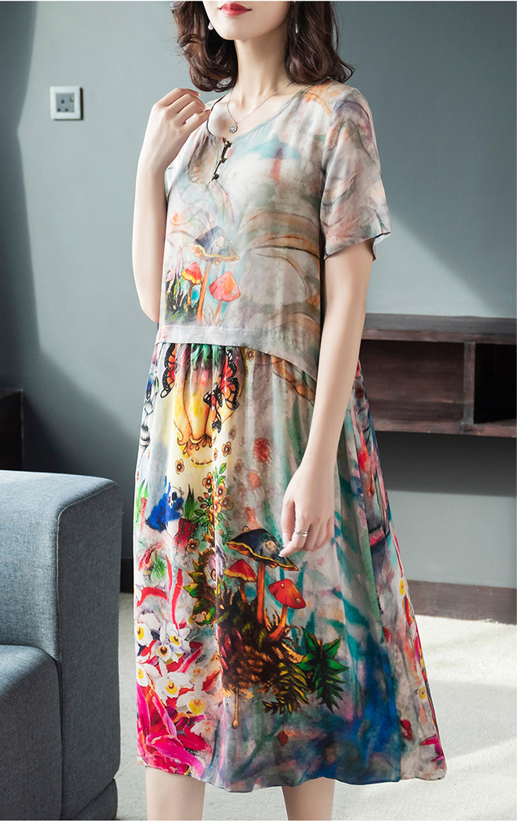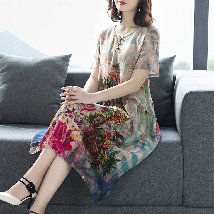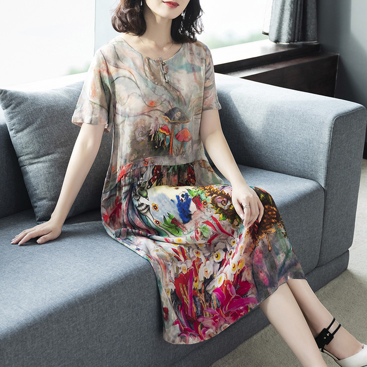 AFE-2468671-宽松显瘦遮肉中长款过膝连衣裙