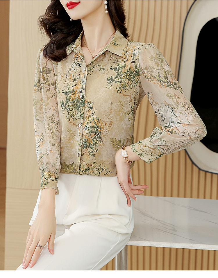 AHMymd6362 法式减龄碎衬衫女2023秋季新款简约时尚百搭优雅通勤上衣 商品图1