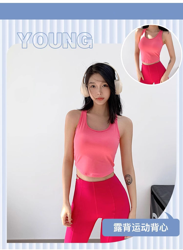【限时秒】YOGACODE【火树银花系列】运动背心女带胸垫性感后腰瑜伽服背心透气不跑杯健身背心DWB115042