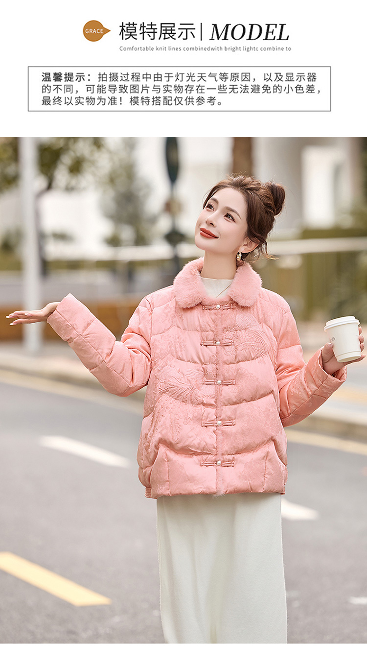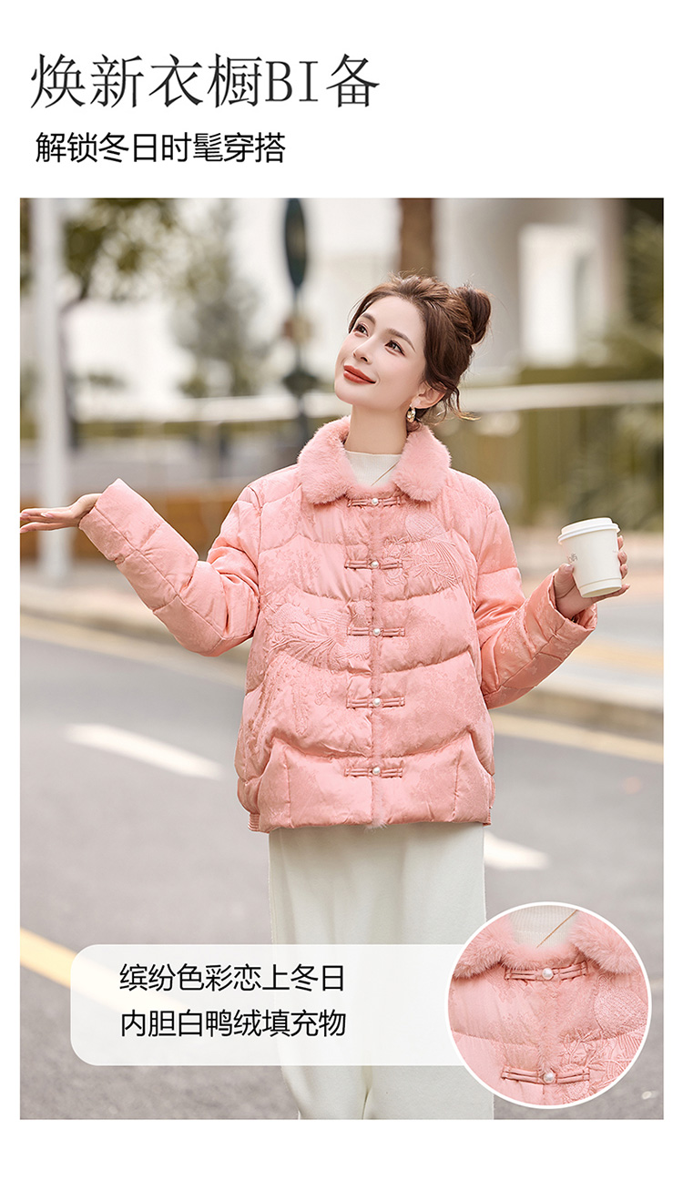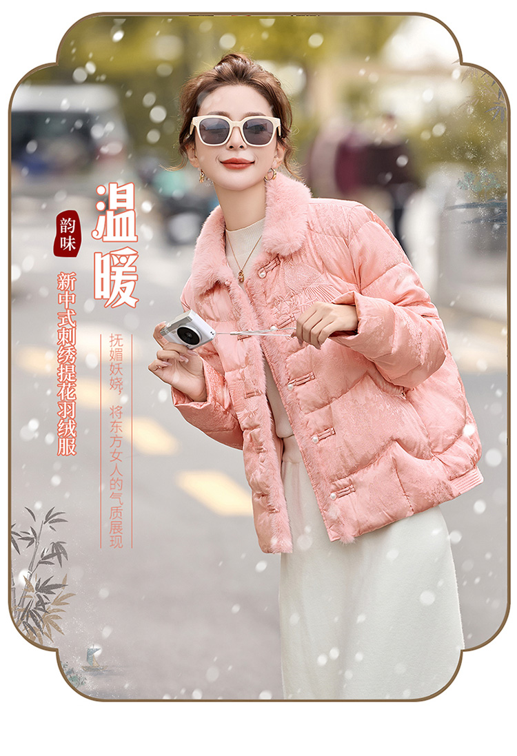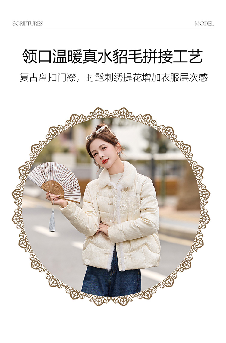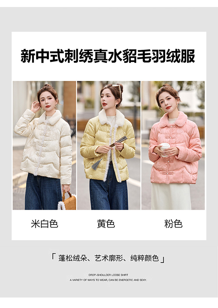 温暖新中式国风刺绣短款羽绒服,毛领真水貂毛洋气减龄白鸭绒外套HR-MEIQIN59179