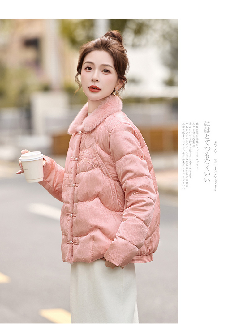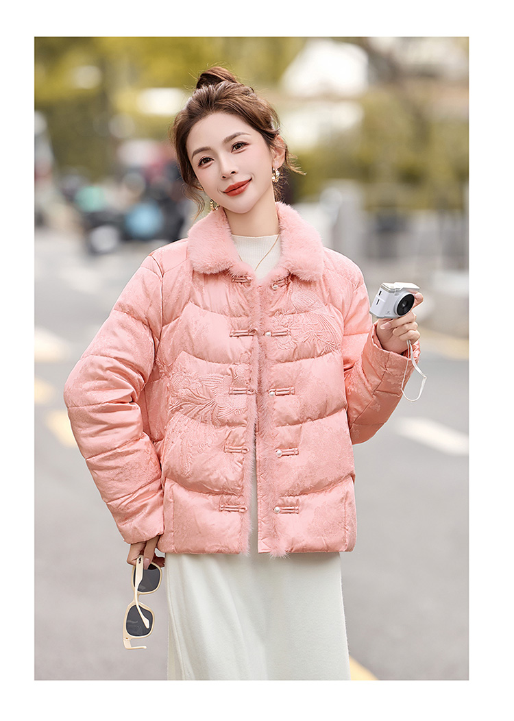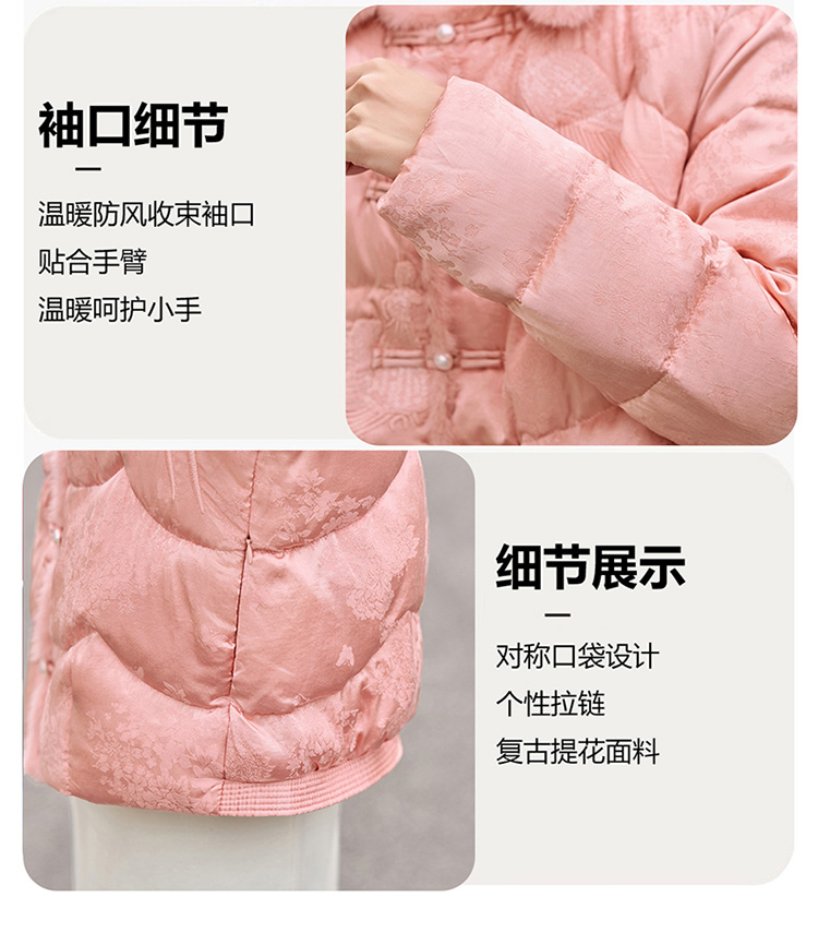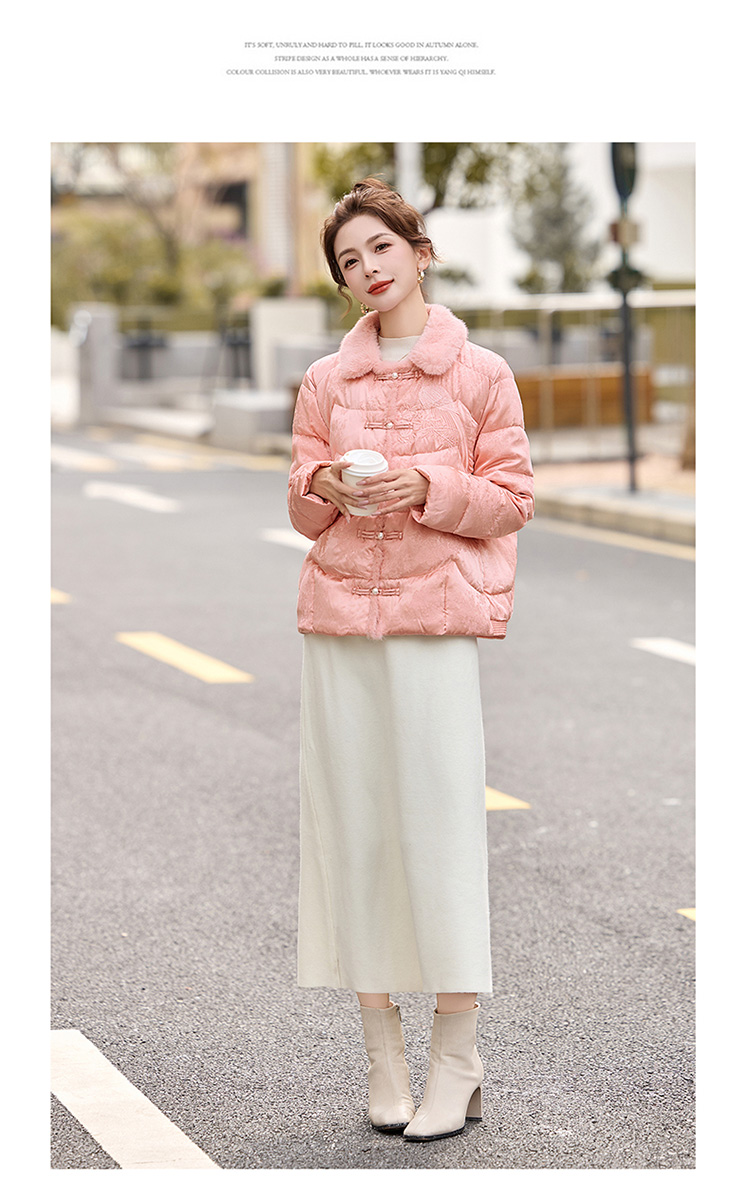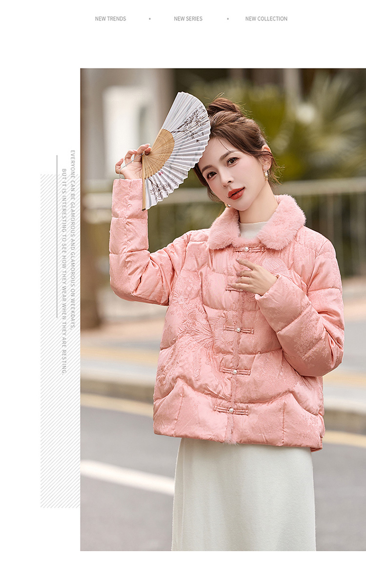 温暖新中式国风刺绣短款羽绒服,毛领真水貂毛洋气减龄白鸭绒外套HR-MEIQIN59179