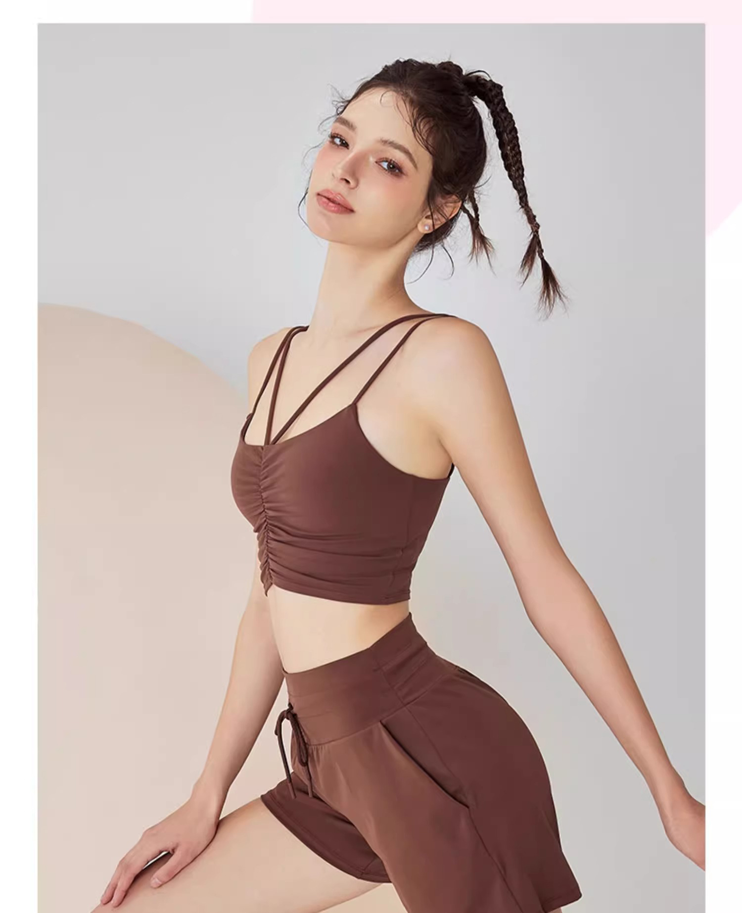 【3~5天发货】跃牌【美度空间】系列 裸感春夏运动内衣女细肩吊带瑜伽文胸假两件性感露背健身背心41030