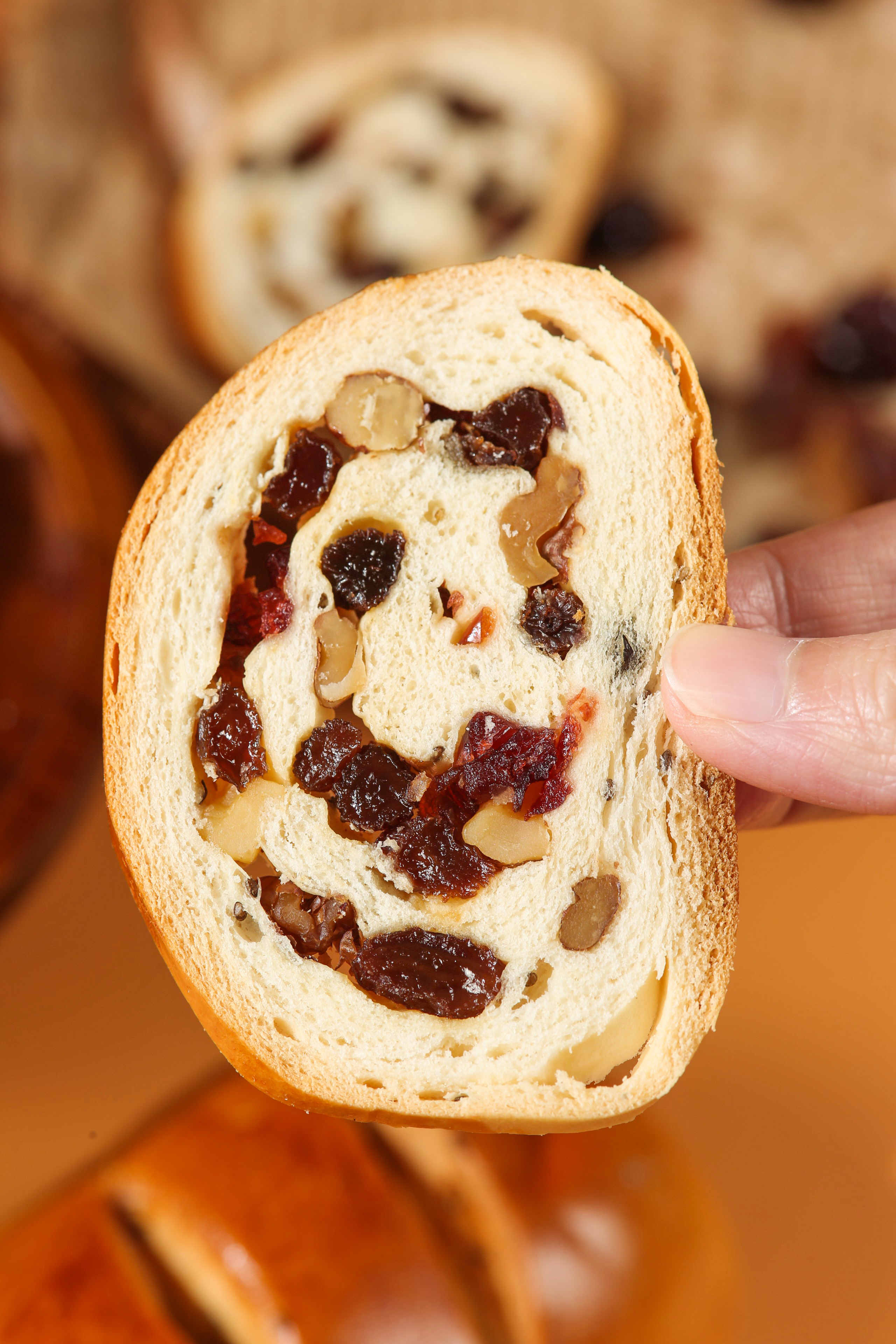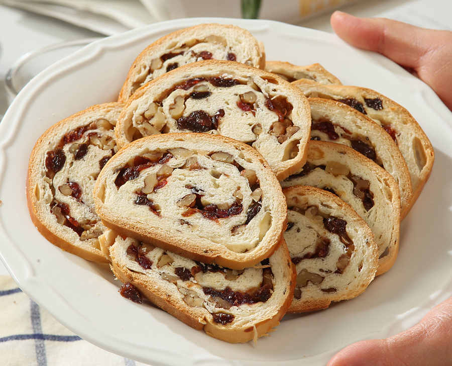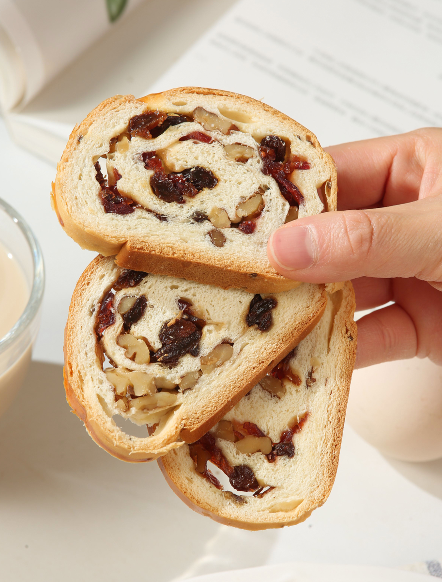 选用应季新疆优质葡萄干和核桃仁、美国蔓越莓、墨西哥奇亚籽,新西兰安佳黄油,用料十足,果仁含量>30%;