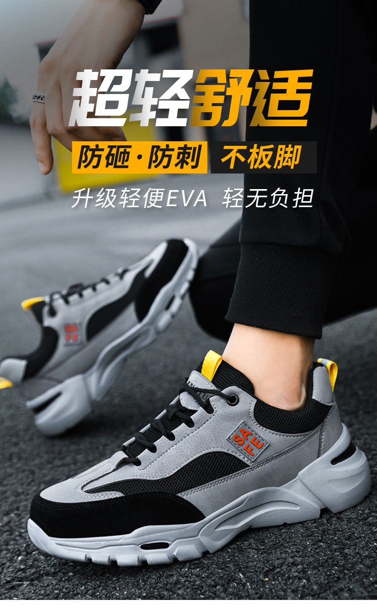 京途劳保鞋四季款透气钢包头防砸防刺穿安全工作鞋超轻EVA防护功能鞋