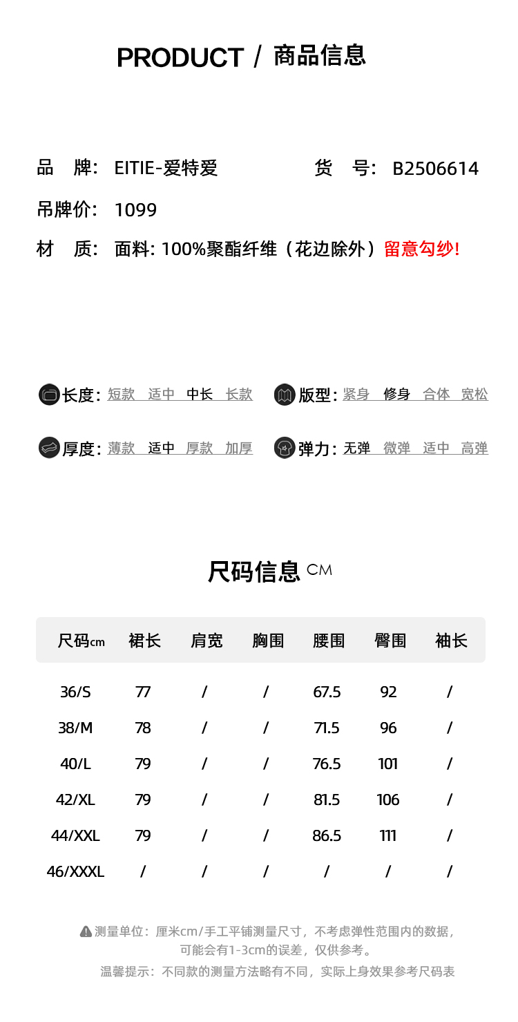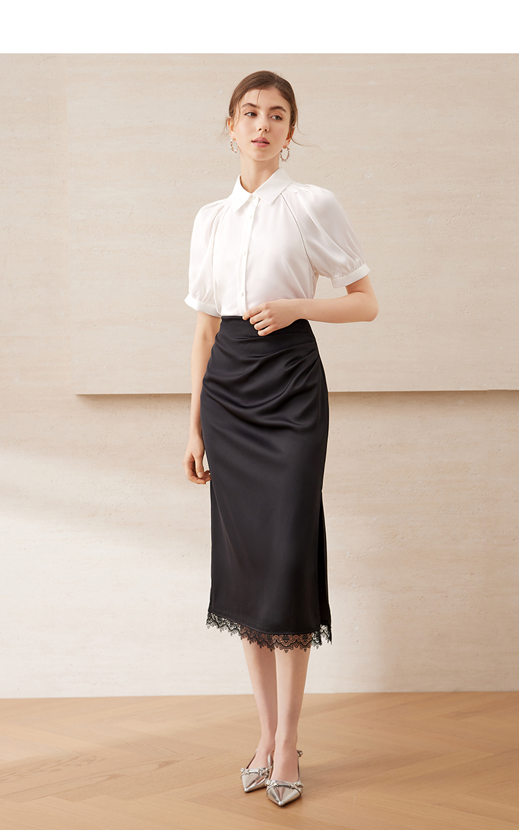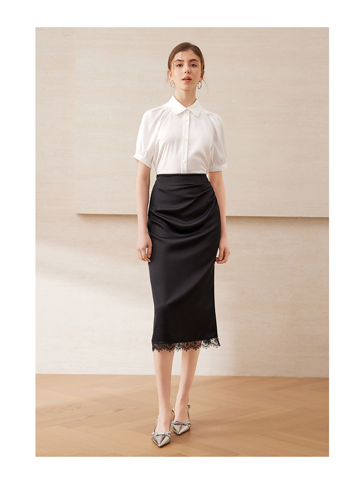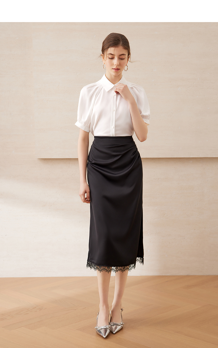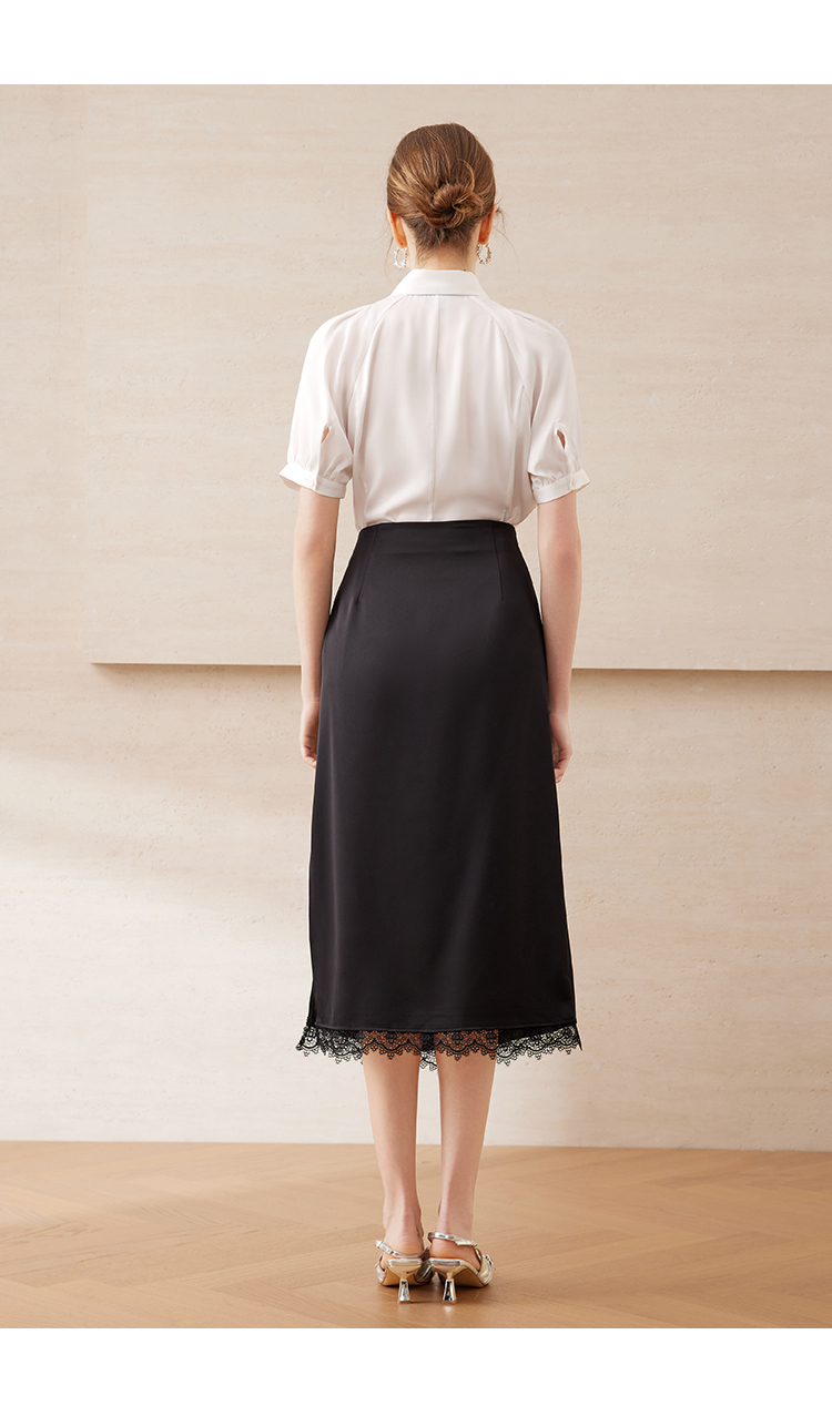 EITIE爱特爱气质百搭高腰开叉裙摆蕾丝花边半身裙2025年夏季新款B2506614