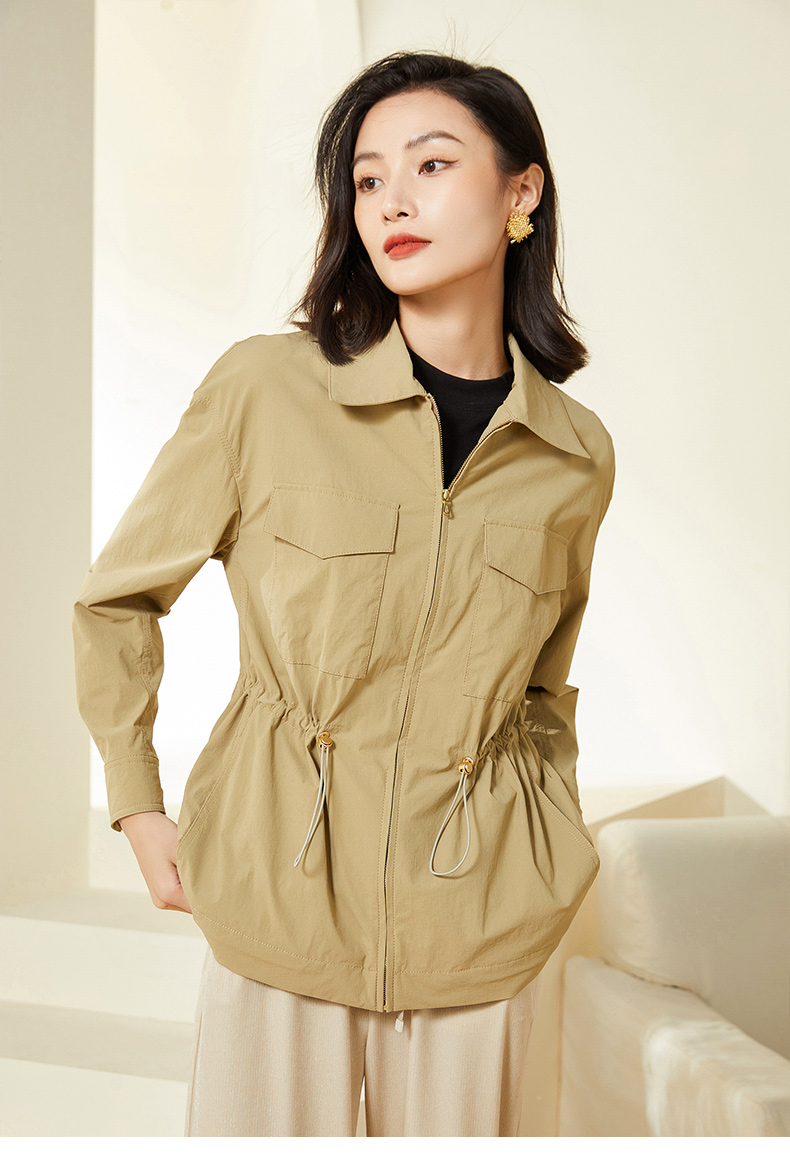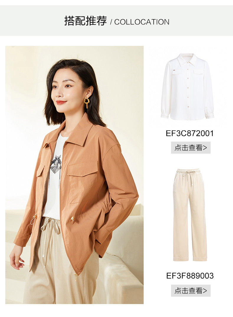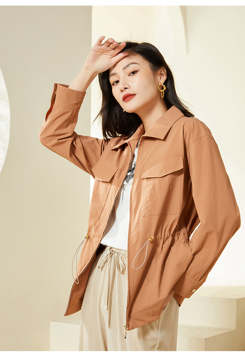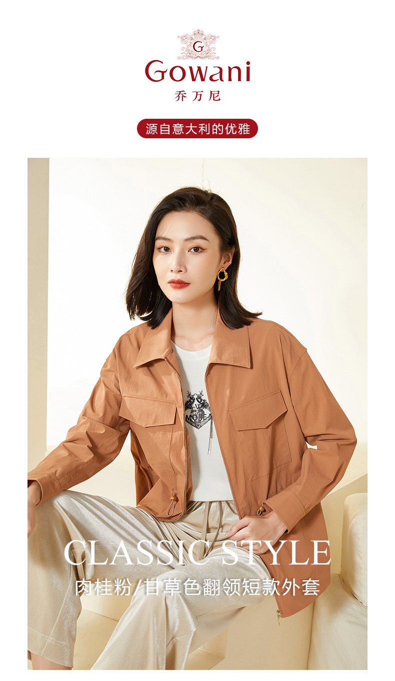 乔万尼新款春装风衣外套小个子女简约设计收腰短款EF3B829