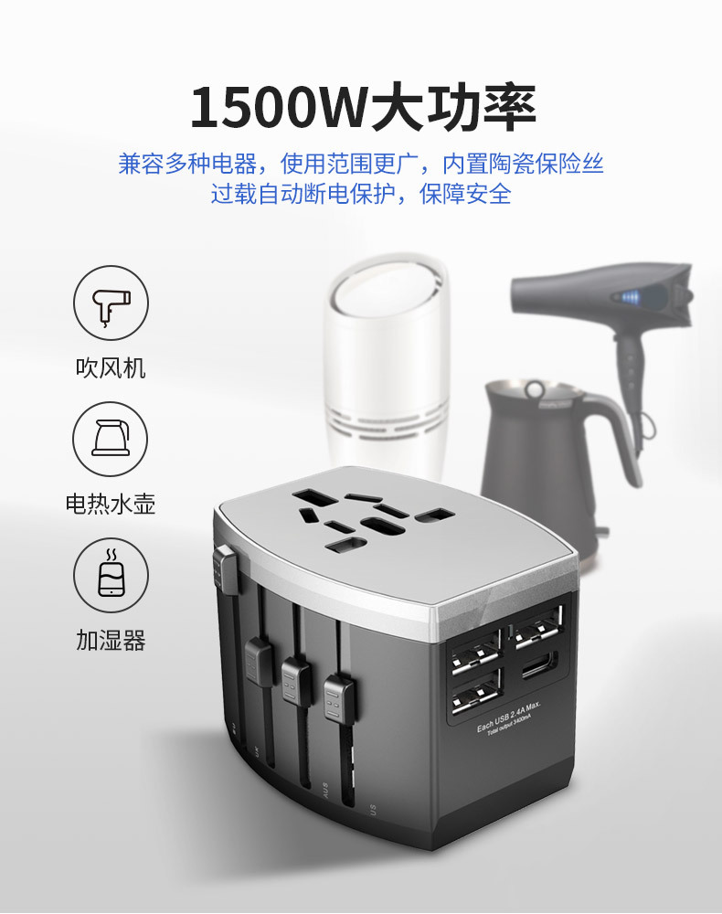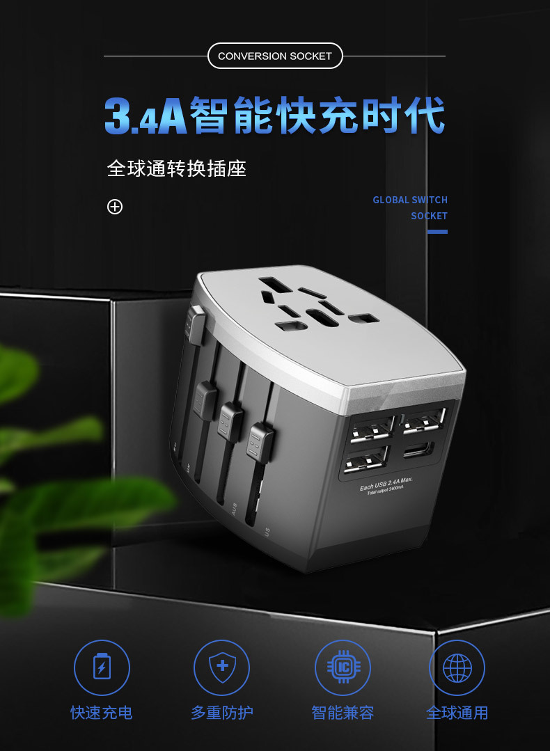 杞冠臻选 | 简创宜品 N7 四USB转换插座 转接头 完美适配数码产品