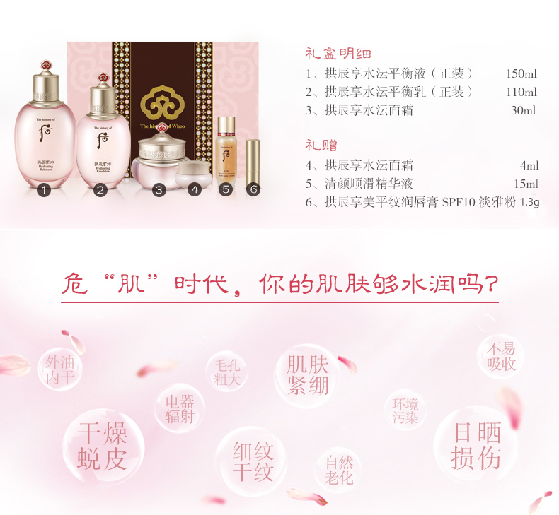 韩国后Whoo拱辰享水沄系列套盒6件套(309ml+1.3g)