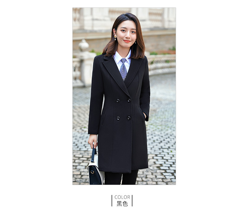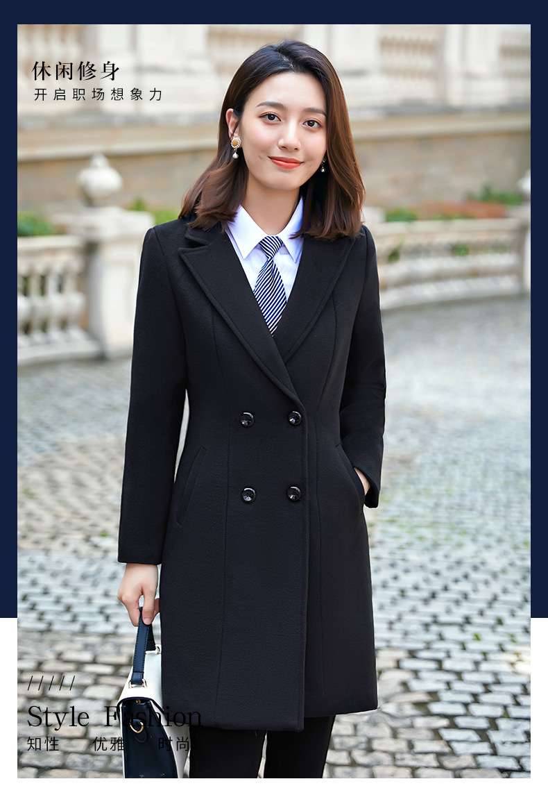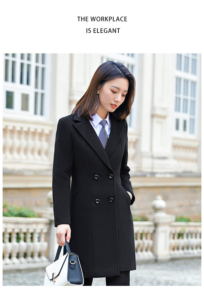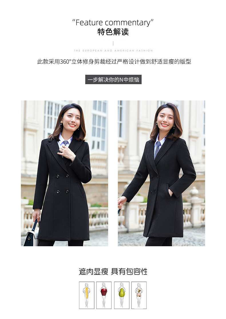 QZT-A1991职业呢子大衣女中长款秋季夹棉外套通勤修身工装