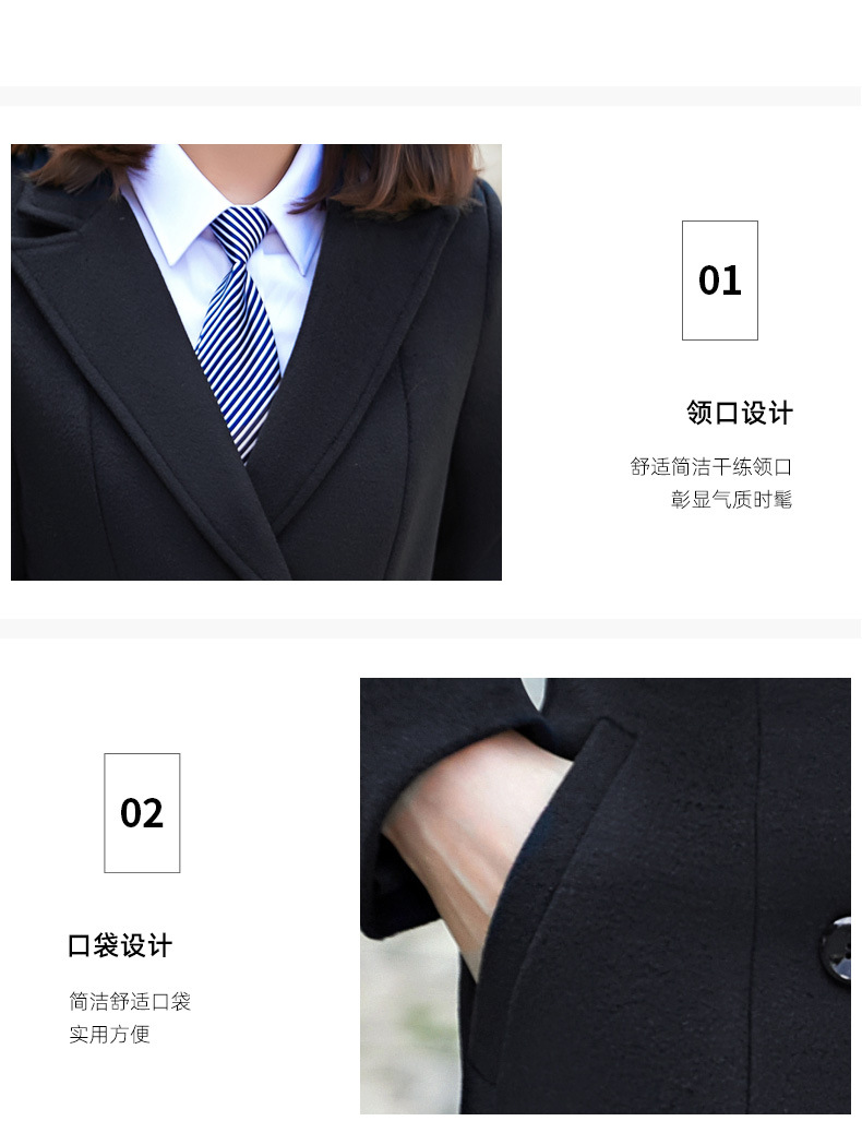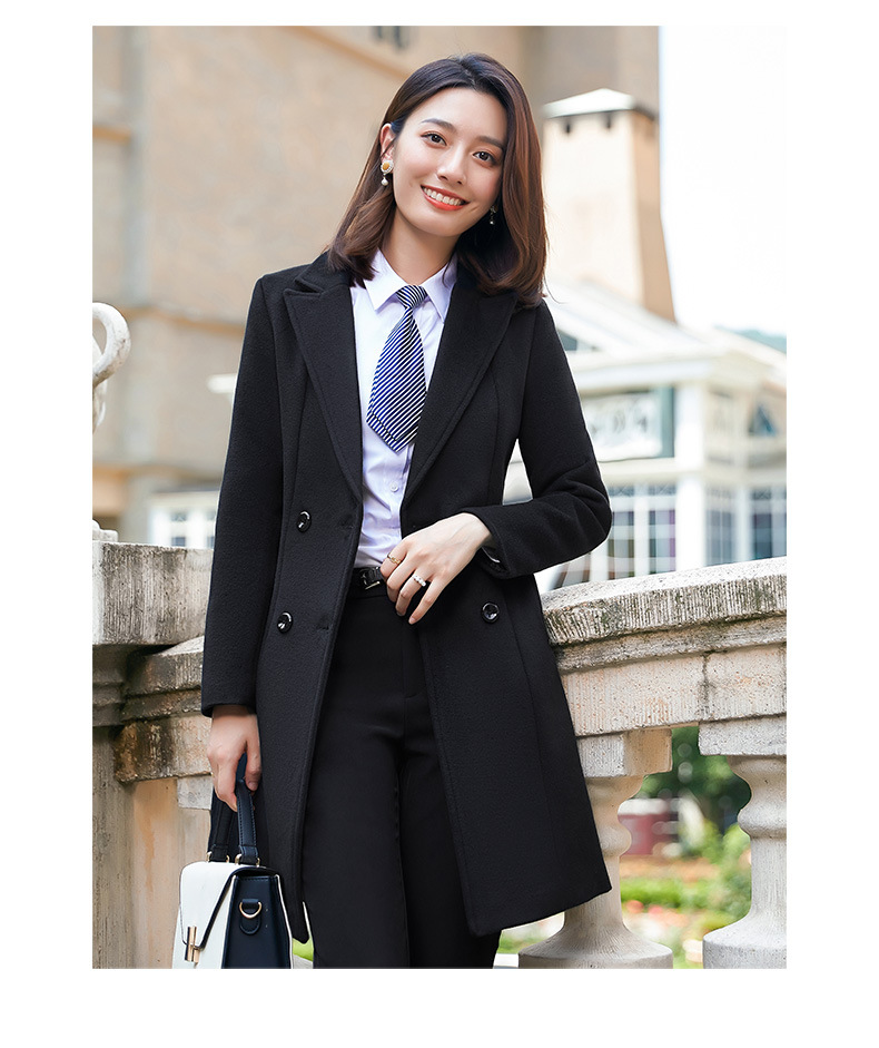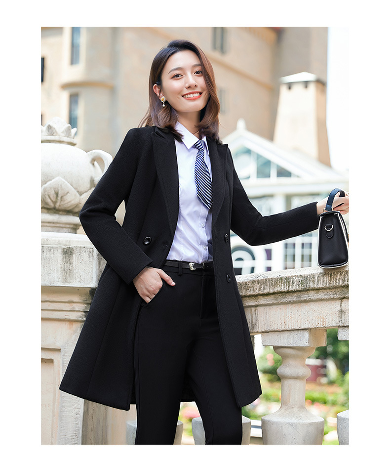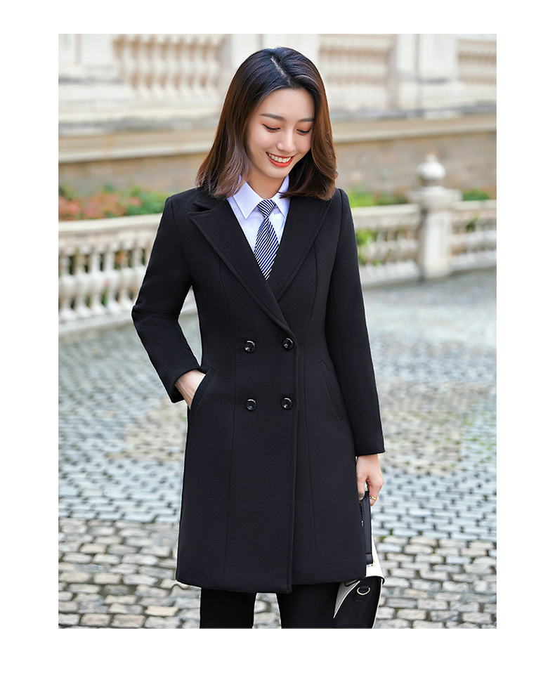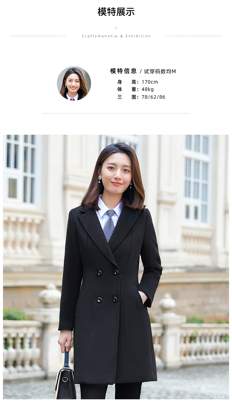QZT-A1991职业呢子大衣女中长款秋季夹棉外套通勤修身工装