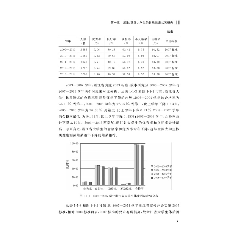 diyi章 chao重/肥胖大学生的体质健康状况研究 diyi节 2003—2014学年浙江省大学生体质健康状况研究 第二节 chao重/肥胖大学生的体质健康状况评价 第三节 chao重/肥胖大学生身体成分的特征与评价 第二章 chao重/肥胖症的研究现状 diyi节 chao重/肥胖的概述 第二节 chao重/肥胖的研究现状 第三节 chao重/肥胖对人体的危害 第三章 chao重/肥胖大学生健康减肥的调查与结果研究 diyi节 chao重/肥胖大学生在总体学生中分布状况与基本特征的调查结果 第二节 chao重/月巴胖大学生对健康减肥需求现状调查结果 第三节 chao重/肥胖大学生健康锻炼相关行为的调查结果 第四节 chao重/肥胖大学生心理健康状况调查结果分析 第五节 chao重/月巴胖大学生肥胖问题的综合分析 第四章 肥胖运动减肥干预模式的构建 diyi节 健康减肥干预模式的研究现状 第二节 运动减肥机制的研究现状 第三节 有氧运动作用及减肥的运动处方研究现状 第四节 构建运动减肥干预模式1——体育俱乐部干预模式 第五节 构建运动减肥干预模式2——塑身减肥班干预模式 第六节 合理饮食减肥干预作用 第七节 心理减肥干预作用 第五章 运动减肥干预模式的实施与效果评价 diyi节 运动减肥干预模式的实施 第二节 运动减肥干预模式的评价方法 第三节 运动减肥干预模式对chao重/肥胖大学生的影响 第四节 高校体育俱乐部活动对大学生心理干预效果的评价 参考文献 附录1:科学运动减肥的基本常识 附录2:问卷调查表 附录3:chao重/肥胖大学生的体质特征及健康干预促进的课程进度计划表 附录4:课程教学进程计划表 附录5:常吃食物的卡路里 附录6:2009—2010学年大学生体质健康测试成绩统计与评价 附录7:2010—2011学年大学生体质健康测试成绩统计与评价 索引