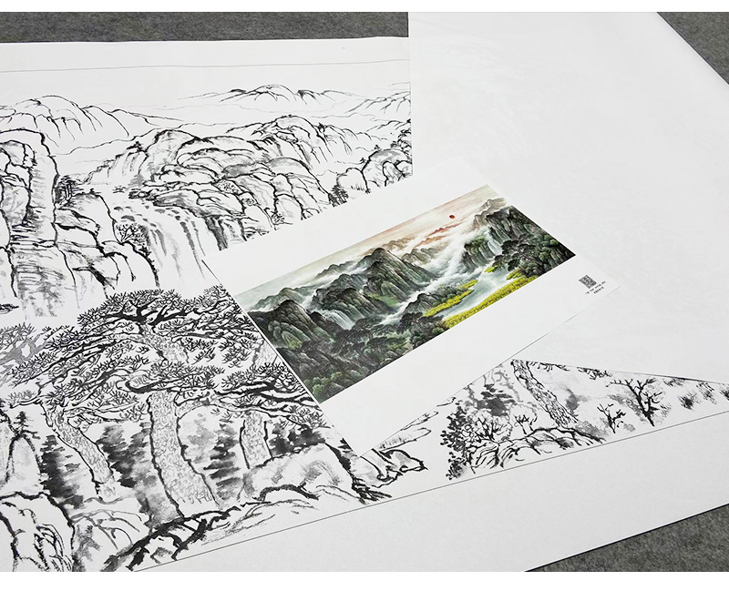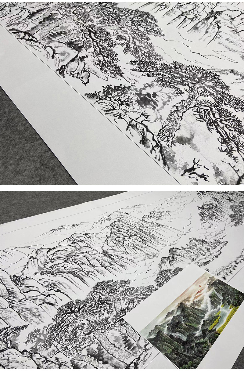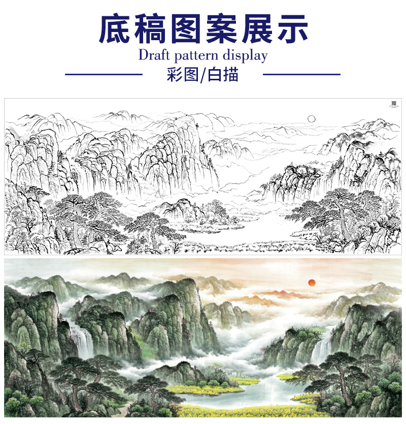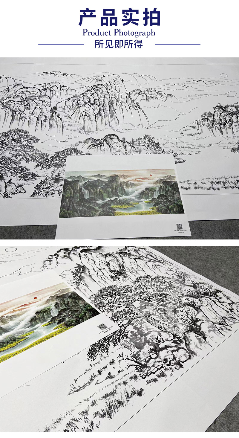 【大彩图】横幅工笔画白描底稿《绿水青山》临摹勾线山水底稿FS11