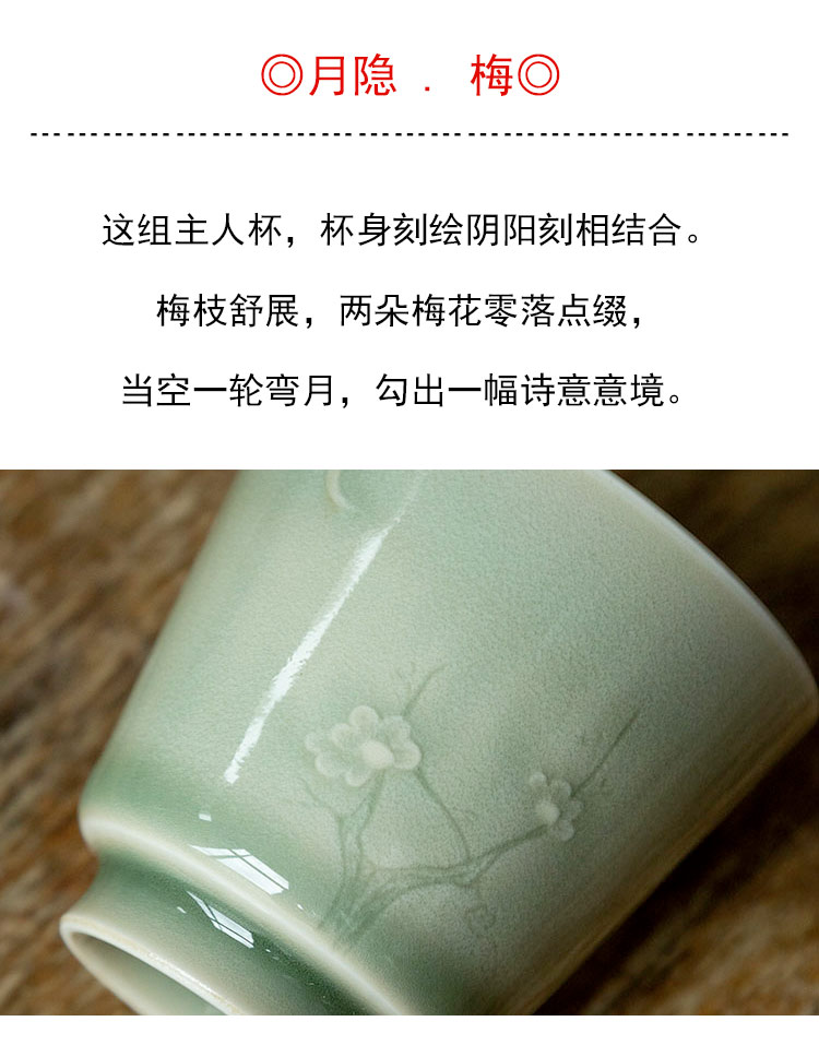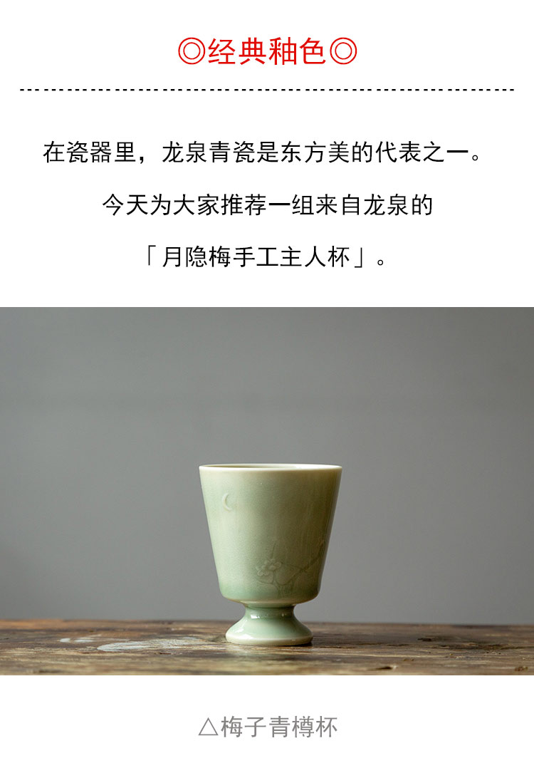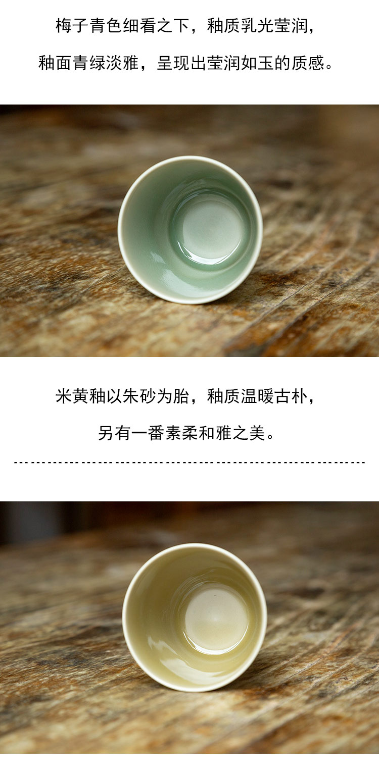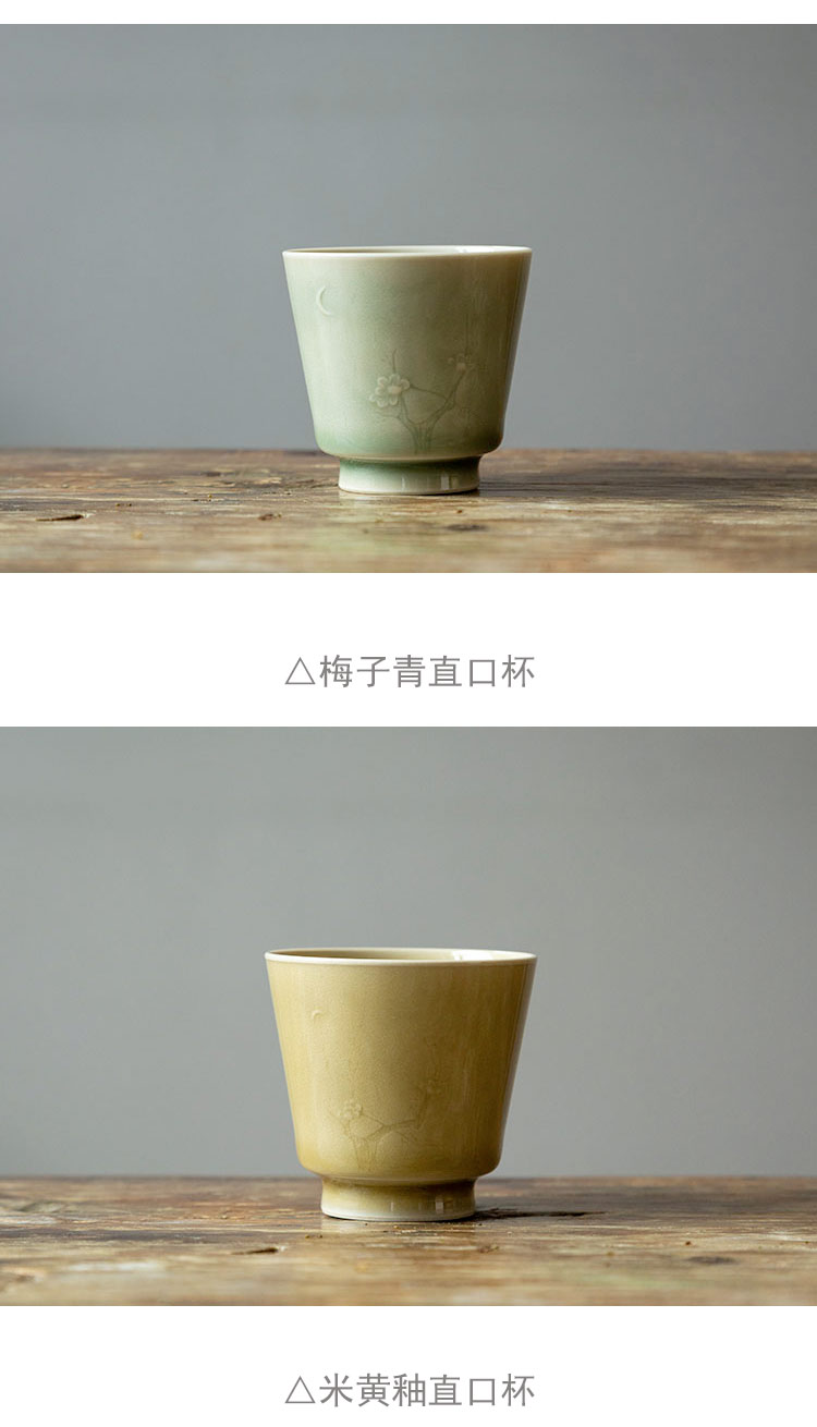 茶香记 手工主人杯 米黄釉 梅子青 月隐梅 直口杯 樽杯