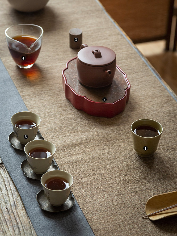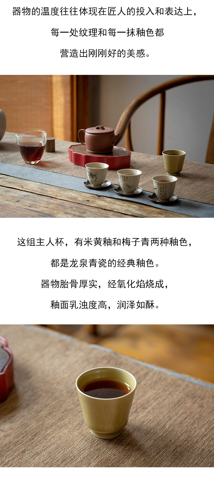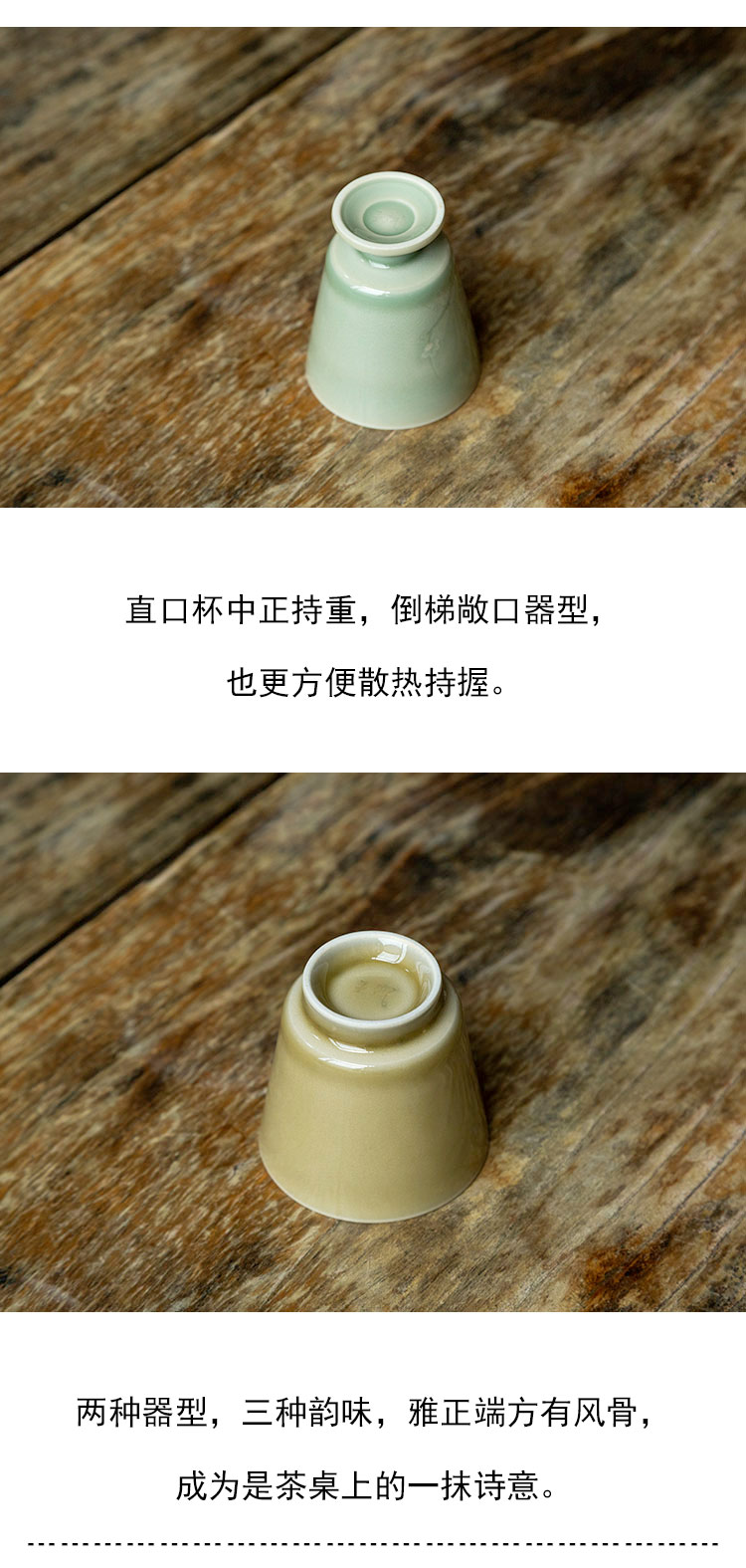 茶香记 手工主人杯 米黄釉 梅子青 月隐梅 直口杯 樽杯
