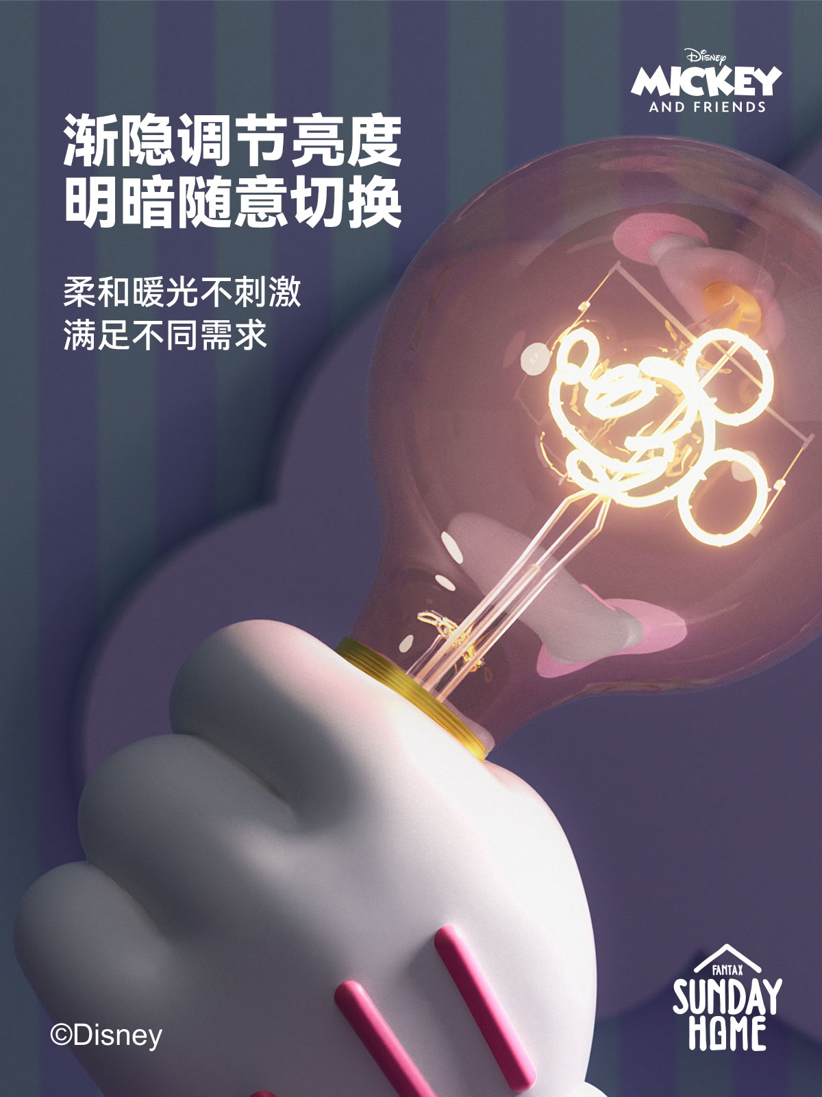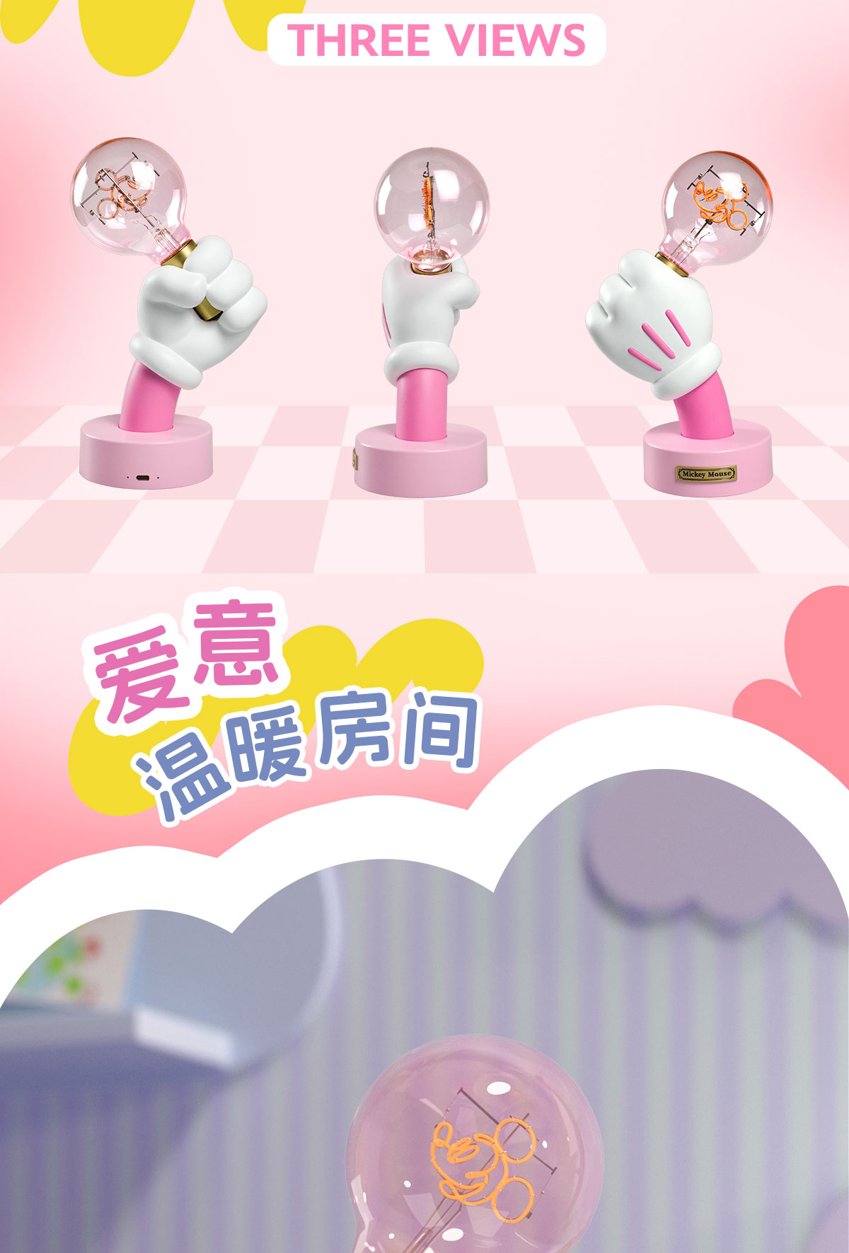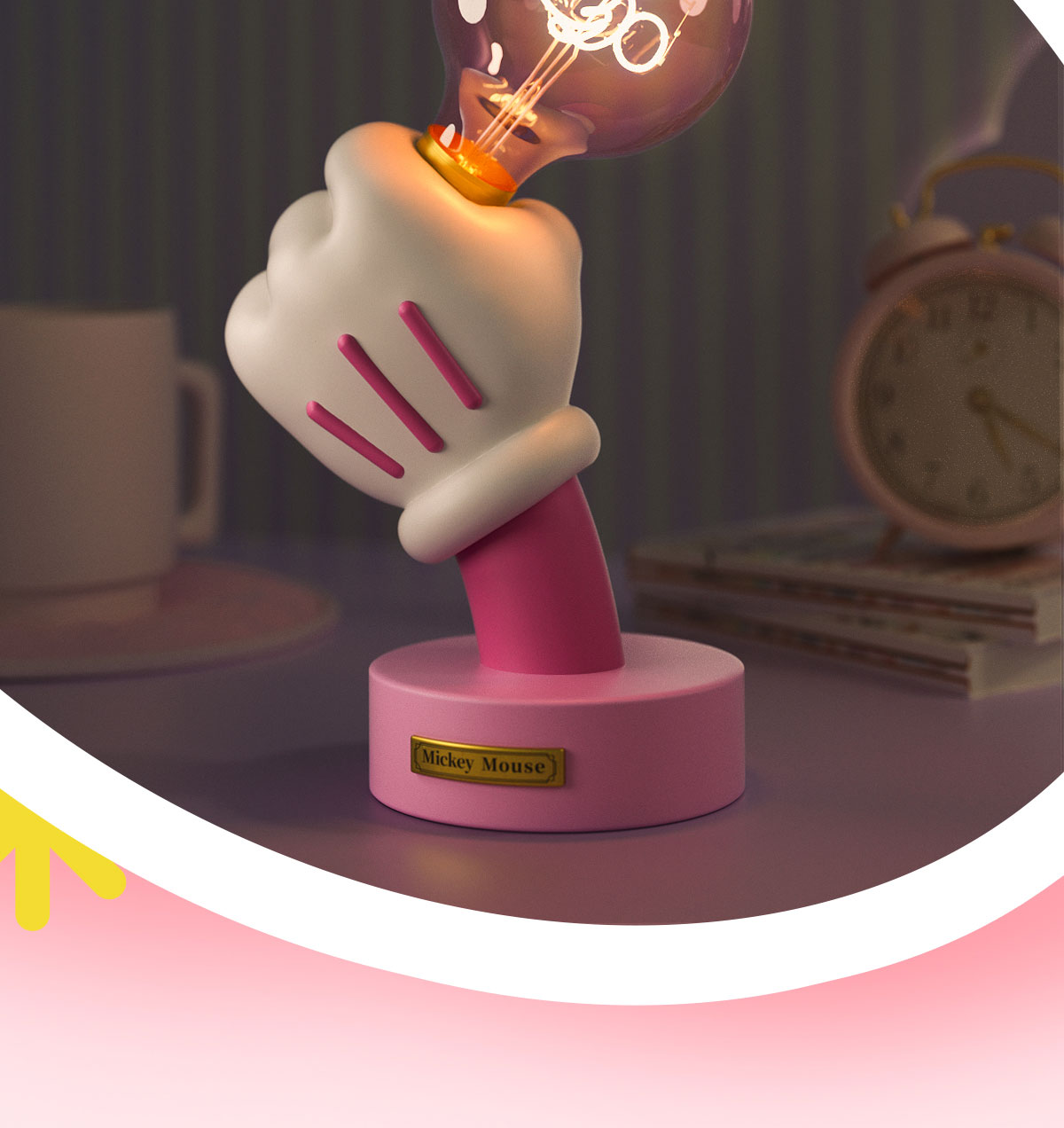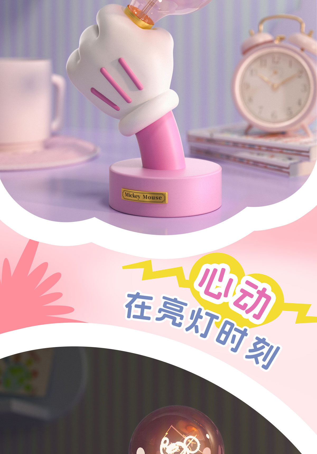 SUNDAY HOME 迷你米奇手台灯-樱花粉