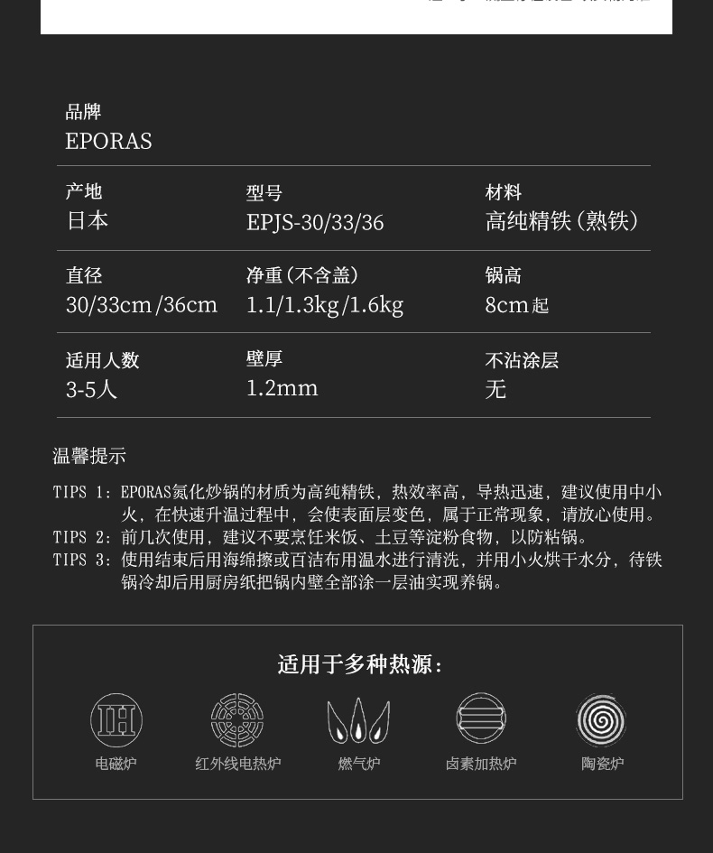 【EPROS 八奈司】超氮化深型中式炒锅铁锅30cm/33cm(不含锅盖)