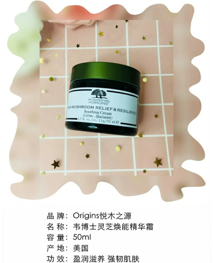 origins悦木之源韦博士灵芝焕能菌菇精华面霜 滋润抗衰老 50ml❤ 安抚舒缓,帮助肌肤抵御外界侵袭而导致的泛红、脆弱,令肌肤更强韧💪 质地盈润,使用后肌肤由内而外立显健康润泽👯 ㊙ 灵芝,中国传统草药圣品,可显著提高机体的免疫功能,增强肌肤抵抗能力,激发自然神奇自愈力,😁 由内重建肌底,向外抵御,无惧侵害。👌 (235434) 😍 冬虫夏草,具有调节免疫系统、抗疲惫等多重神奇功能,清除肌肤的老化、坏死细胞🎈 消除肌肤疲惫,迅速恢复机能,强韧肌肤保护屏障,增强肌肤对外界侵袭的抵抗力 ❤ 沙棘果,具有神奇的促进组织再生和上皮组织愈合的作用👌