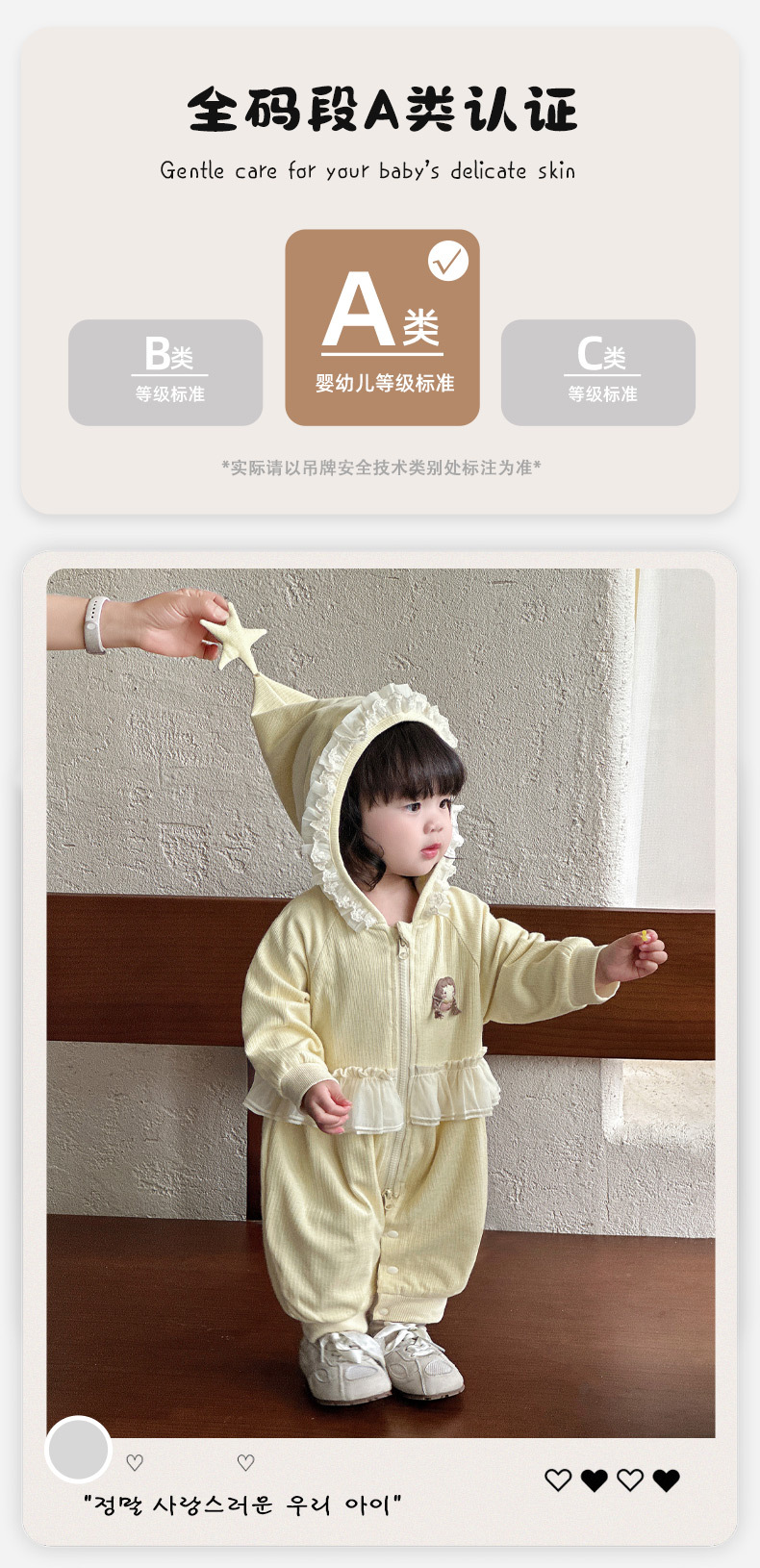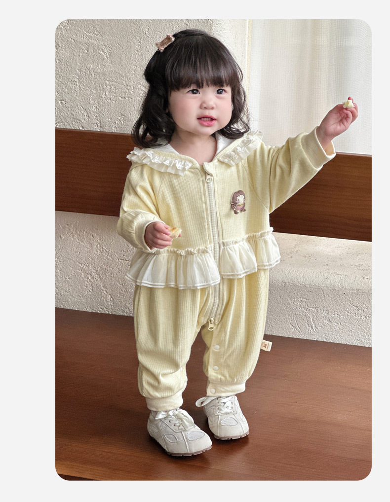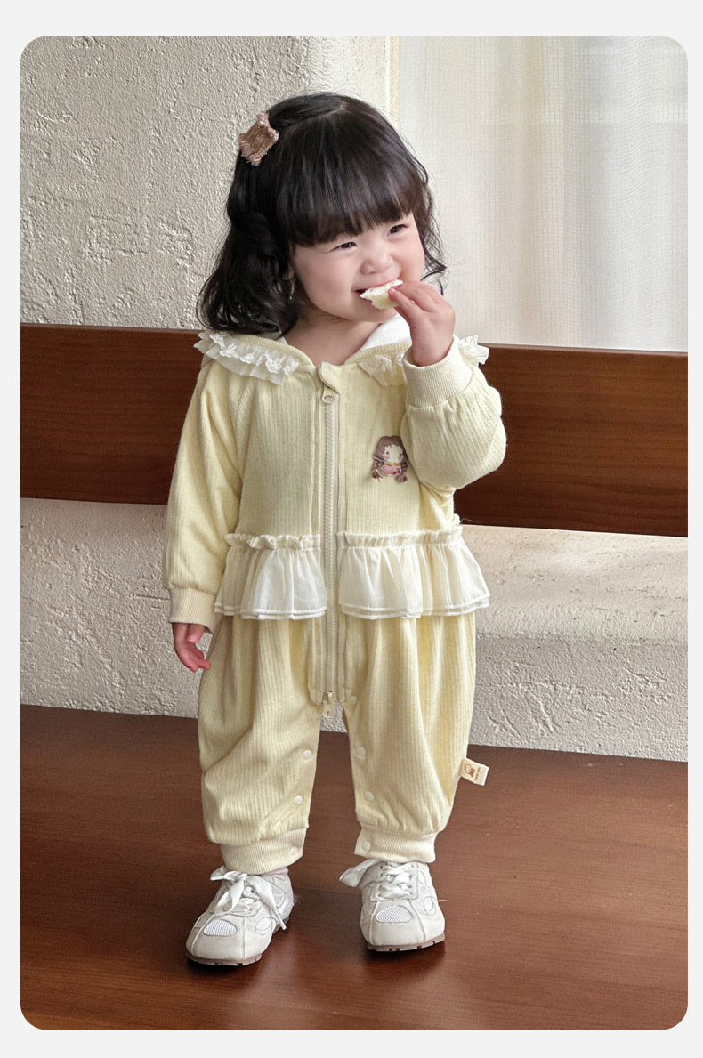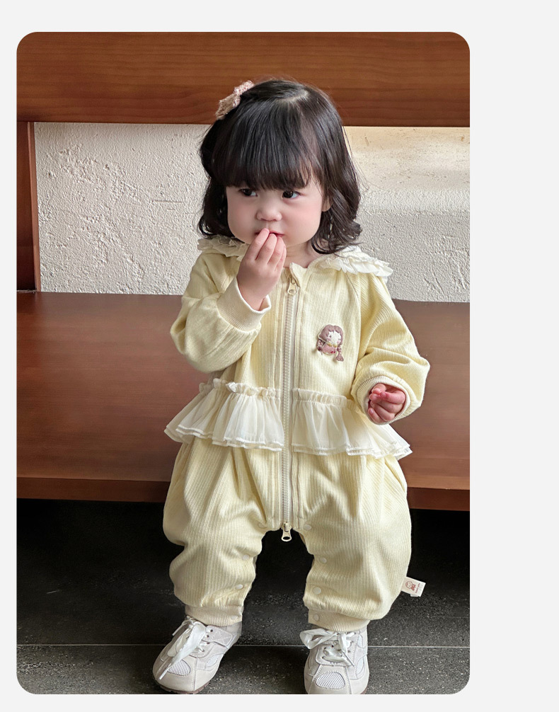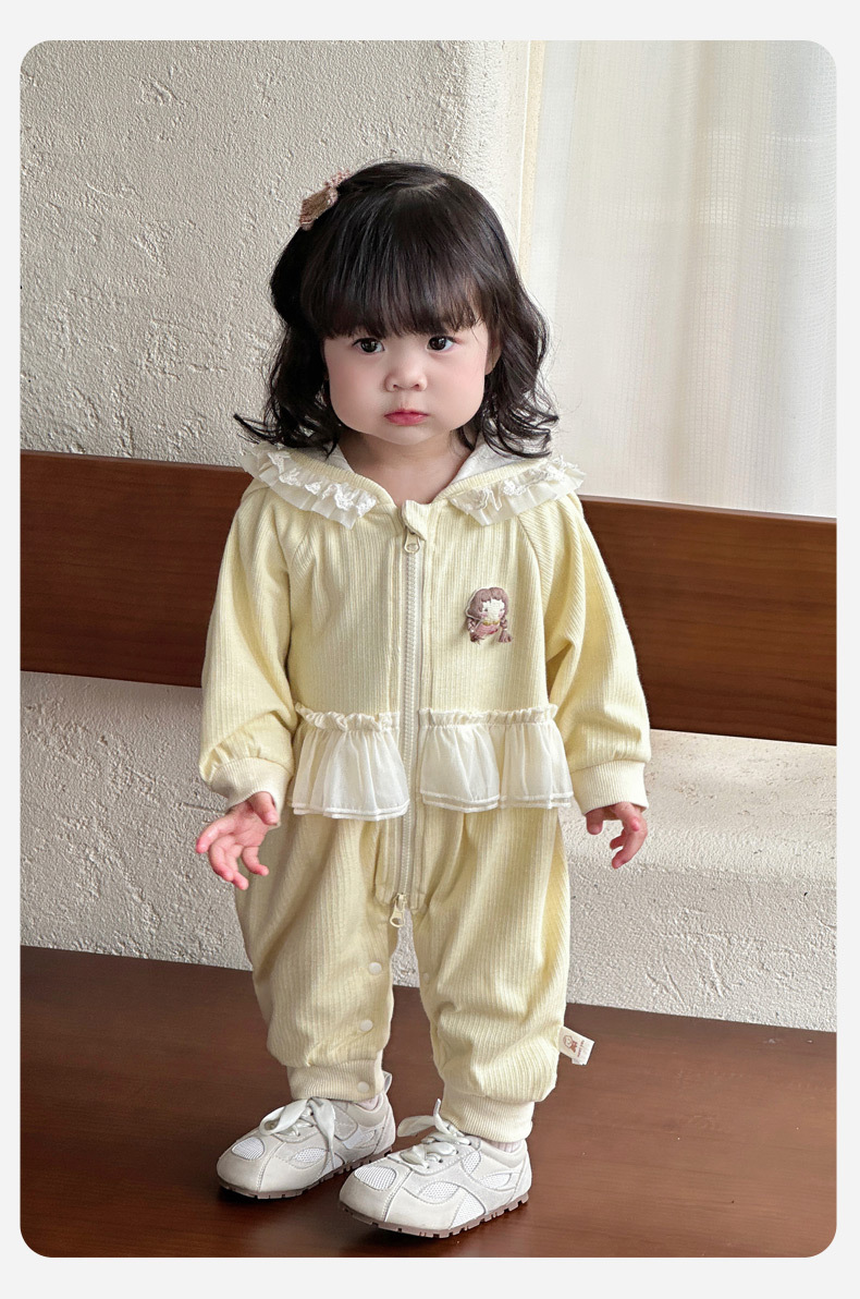 【韩系花边连体衣!A类母婴柔肤面料】婴童秋季2025新款韩版连体衣婴幼儿连帽爬爬服女宝宝洋气花边衣服。hb
