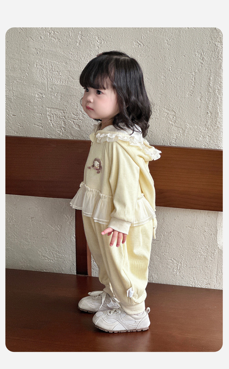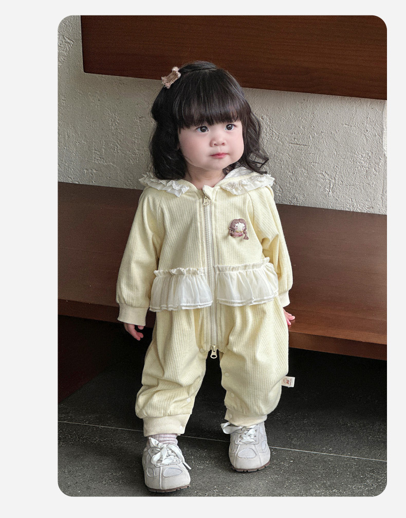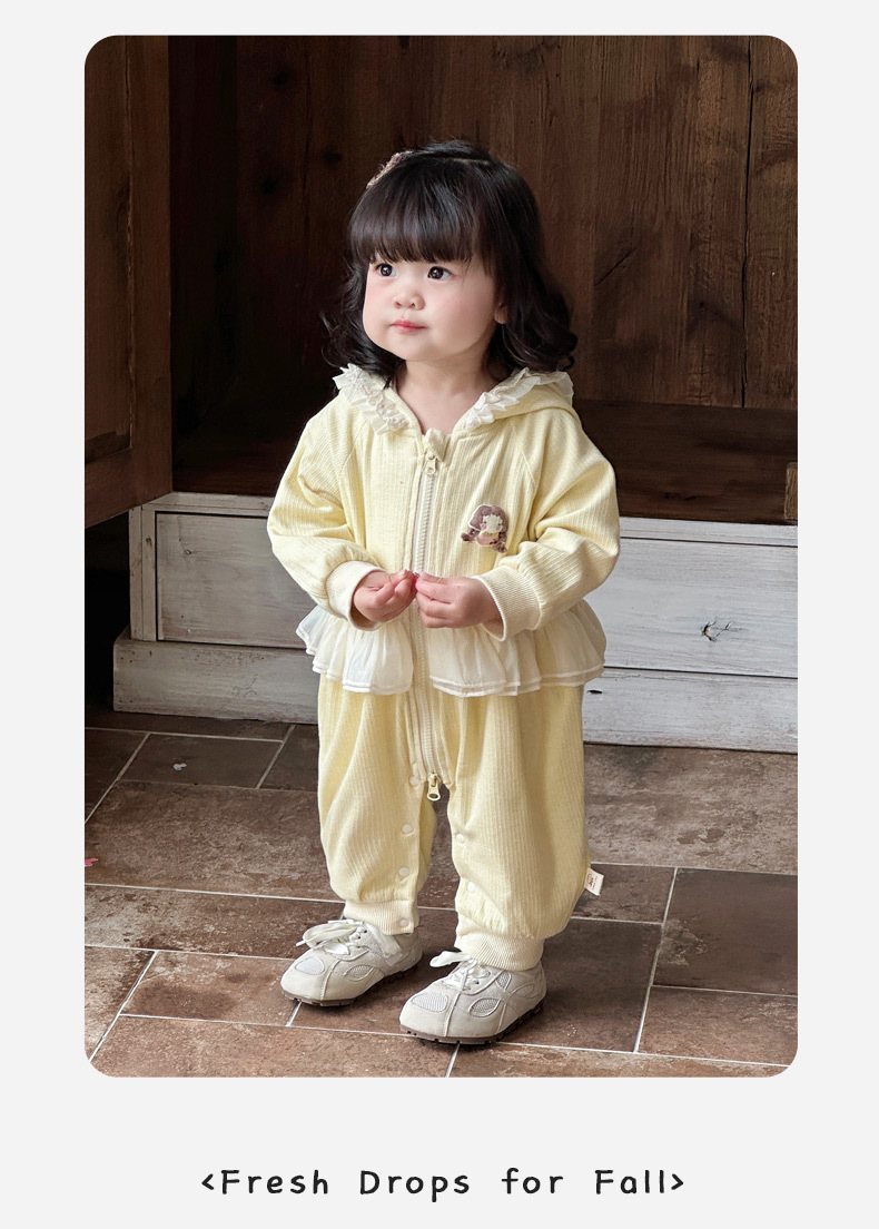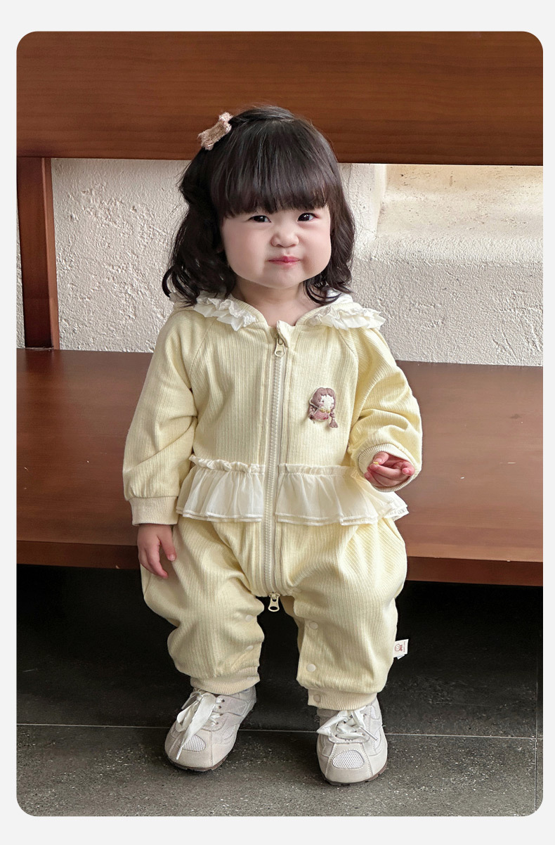 【韩系花边连体衣!A类母婴柔肤面料】婴童秋季2025新款韩版连体衣婴幼儿连帽爬爬服女宝宝洋气花边衣服。hb