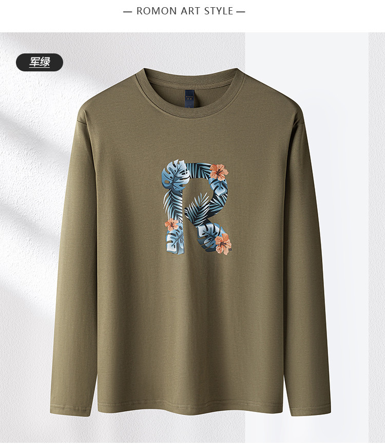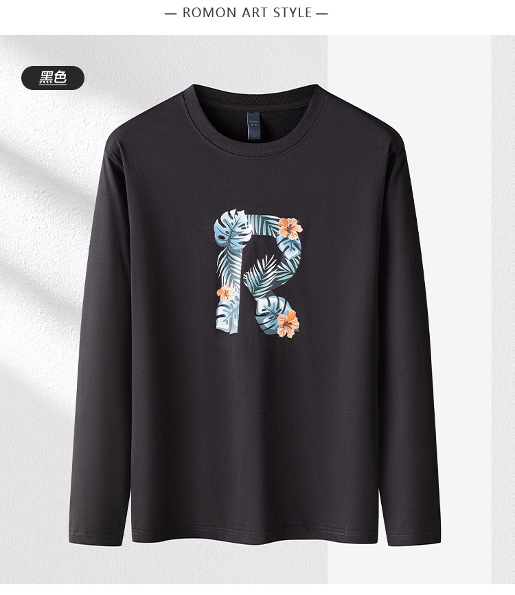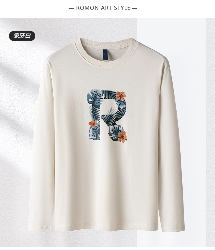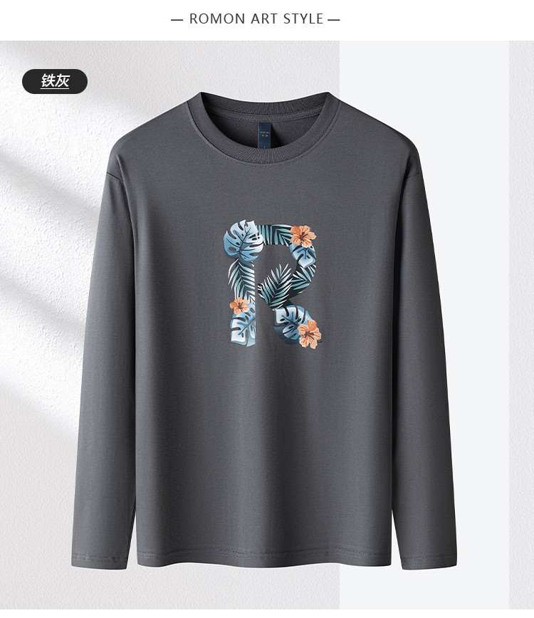 14LP37933【桑蚕丝混纺】罗蒙春秋圆领印花T恤男长袖t恤男时尚男士t恤长袖秋衣男