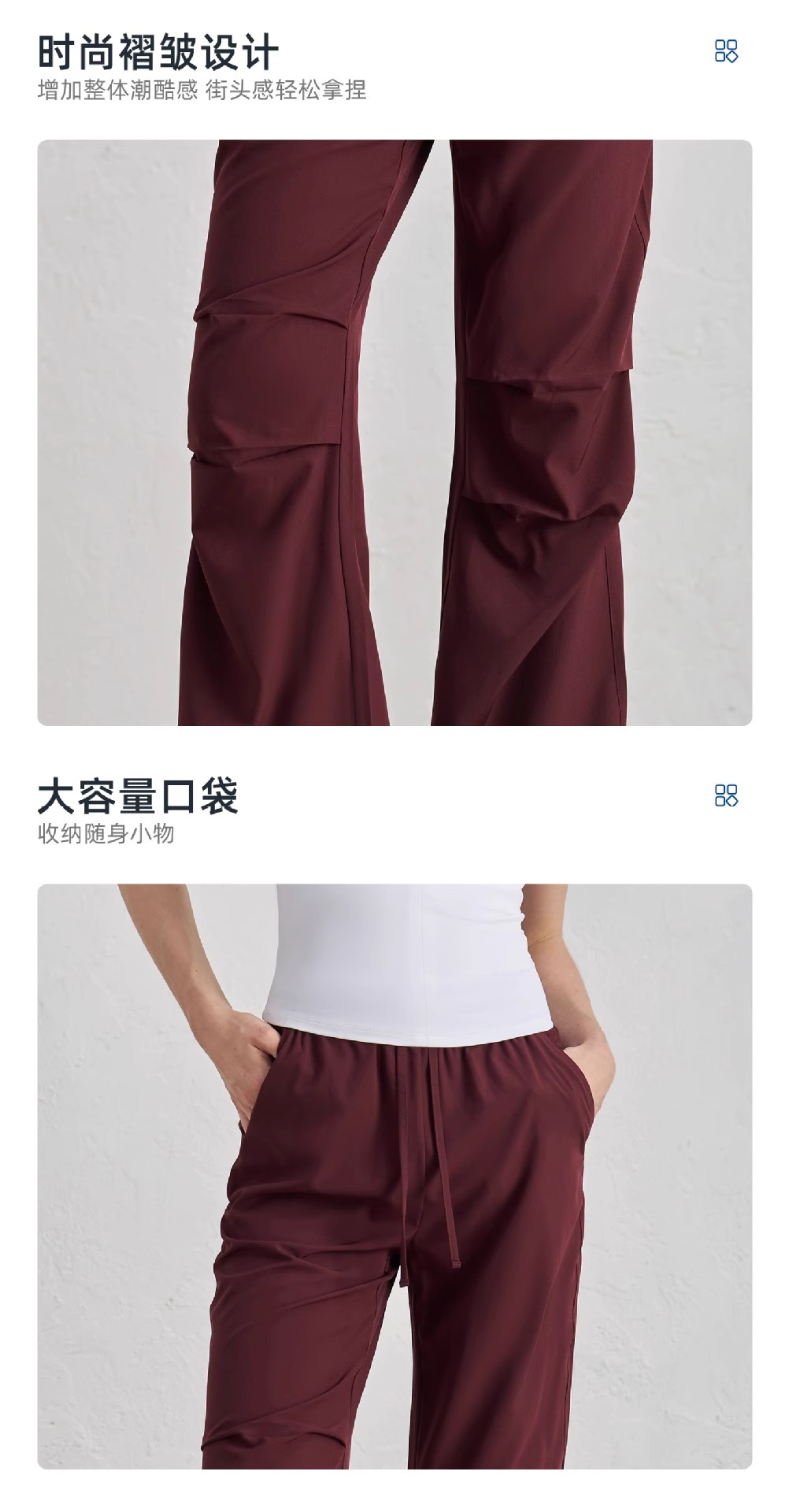 【3~5天发货】跃牌【美度空间】系列 美式复古健身工装裤阔腿显瘦褶皱抽绳伞兵裤ADCK52034