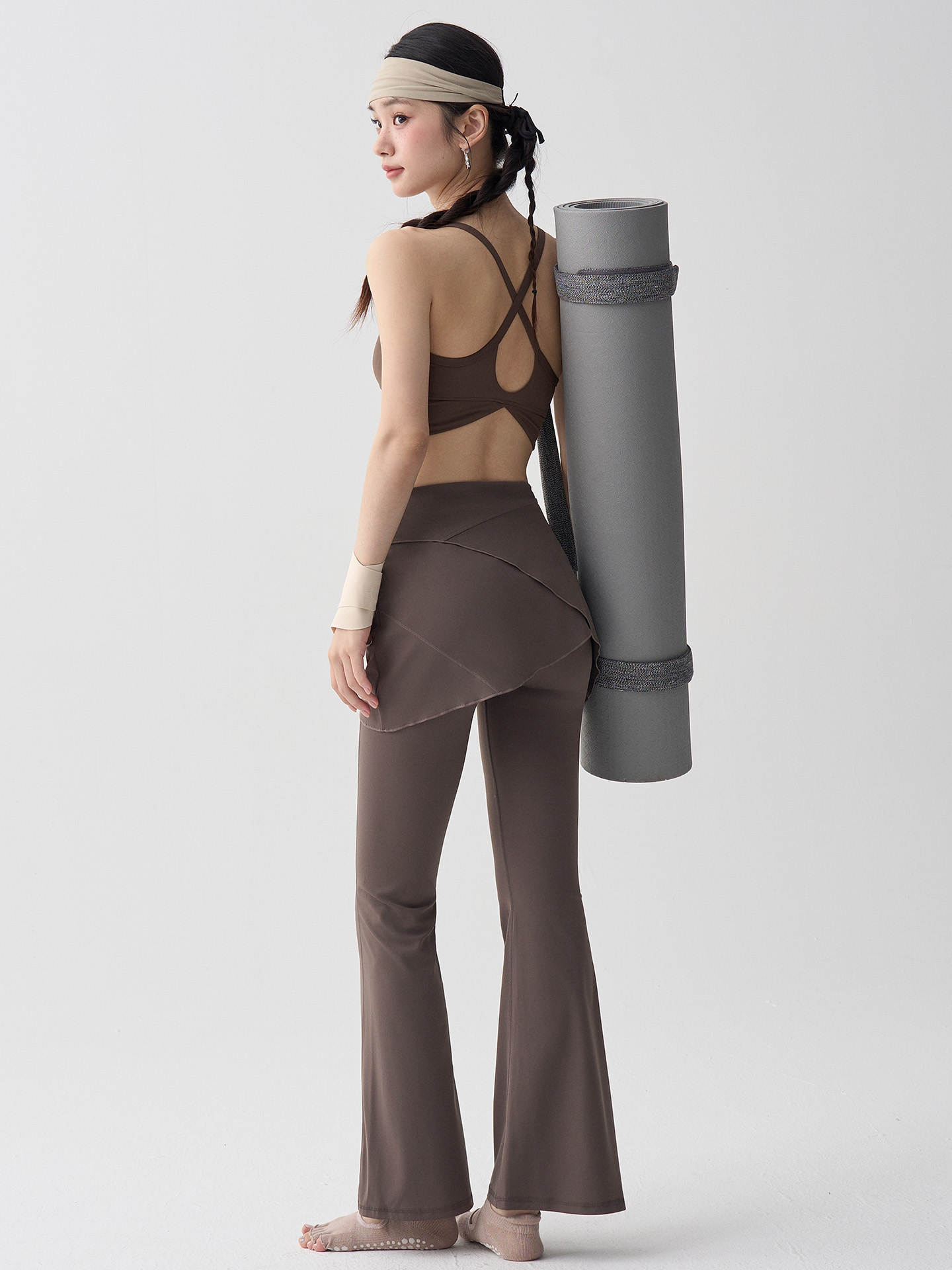 【限时秒】YOGACODE【火树银花系列】瑜伽喇叭裤女假两件屁帘蜜桃提臀收腹健身长裤DWE125548