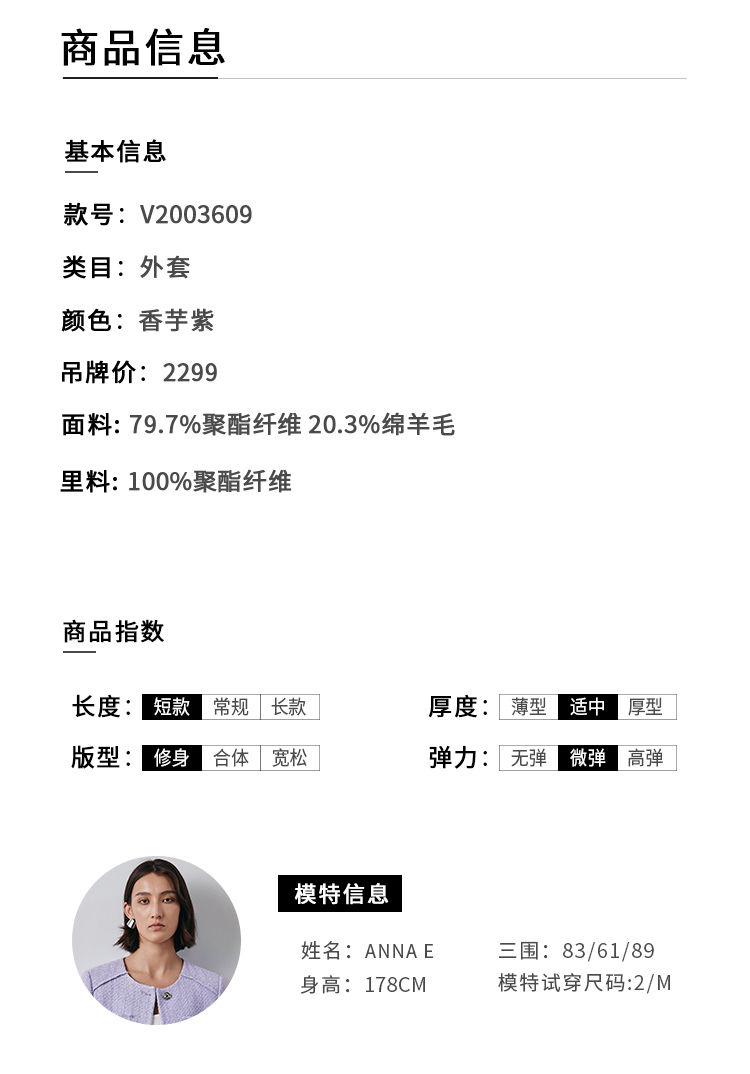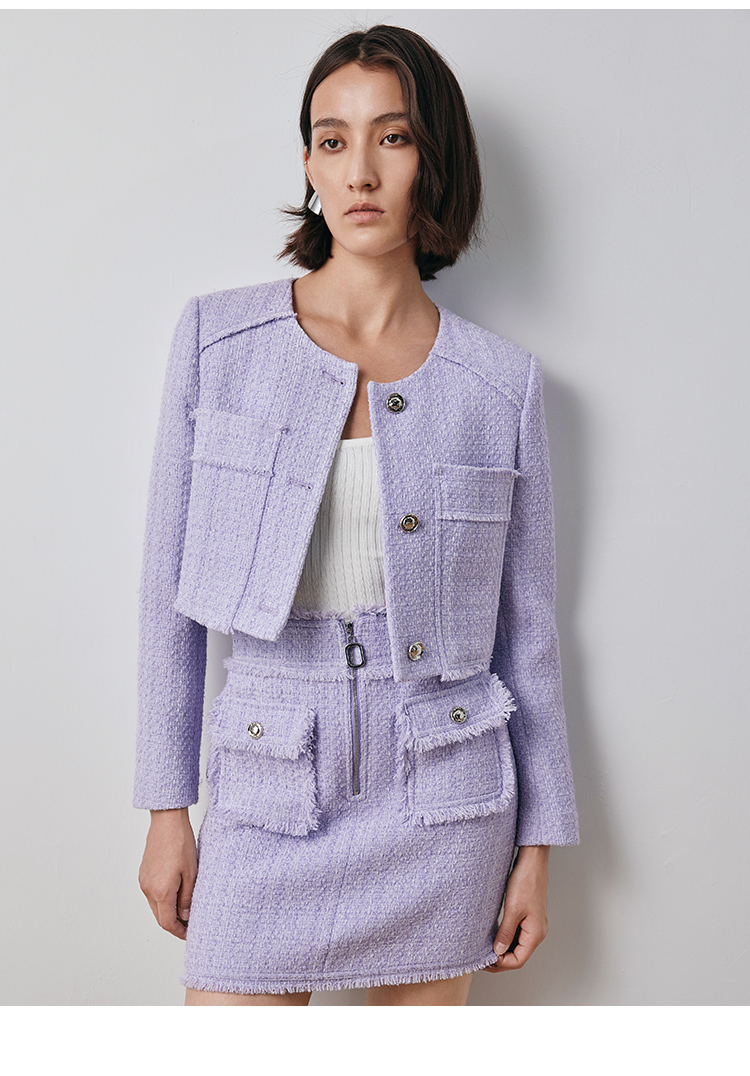 VIMAGE纬漫纪秋季新款紫色小香风外套V2003609