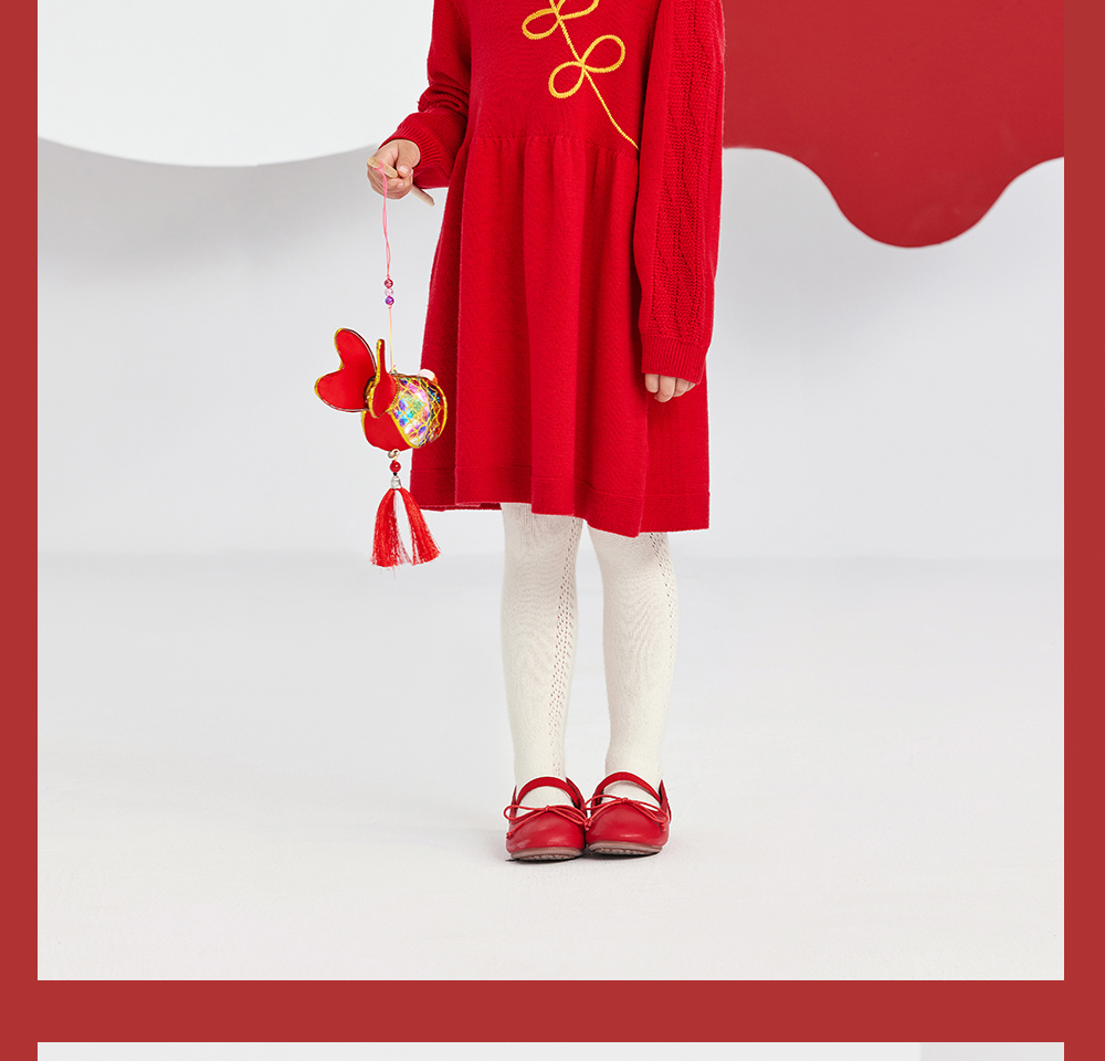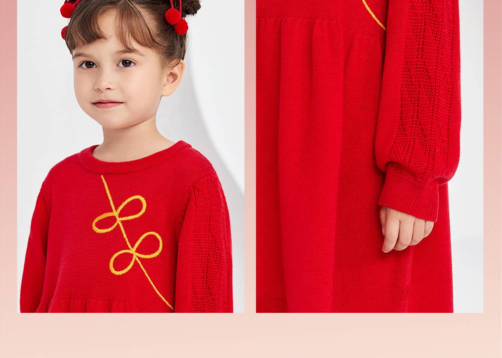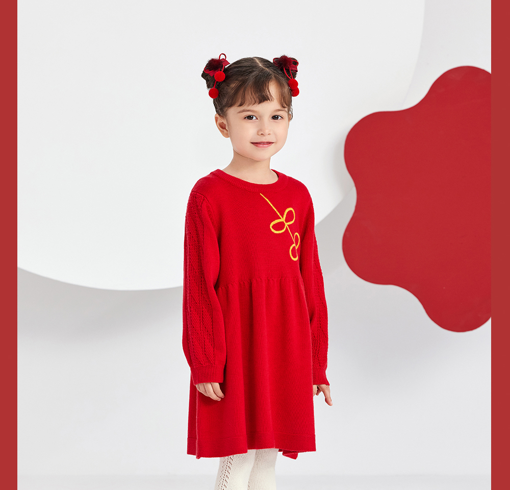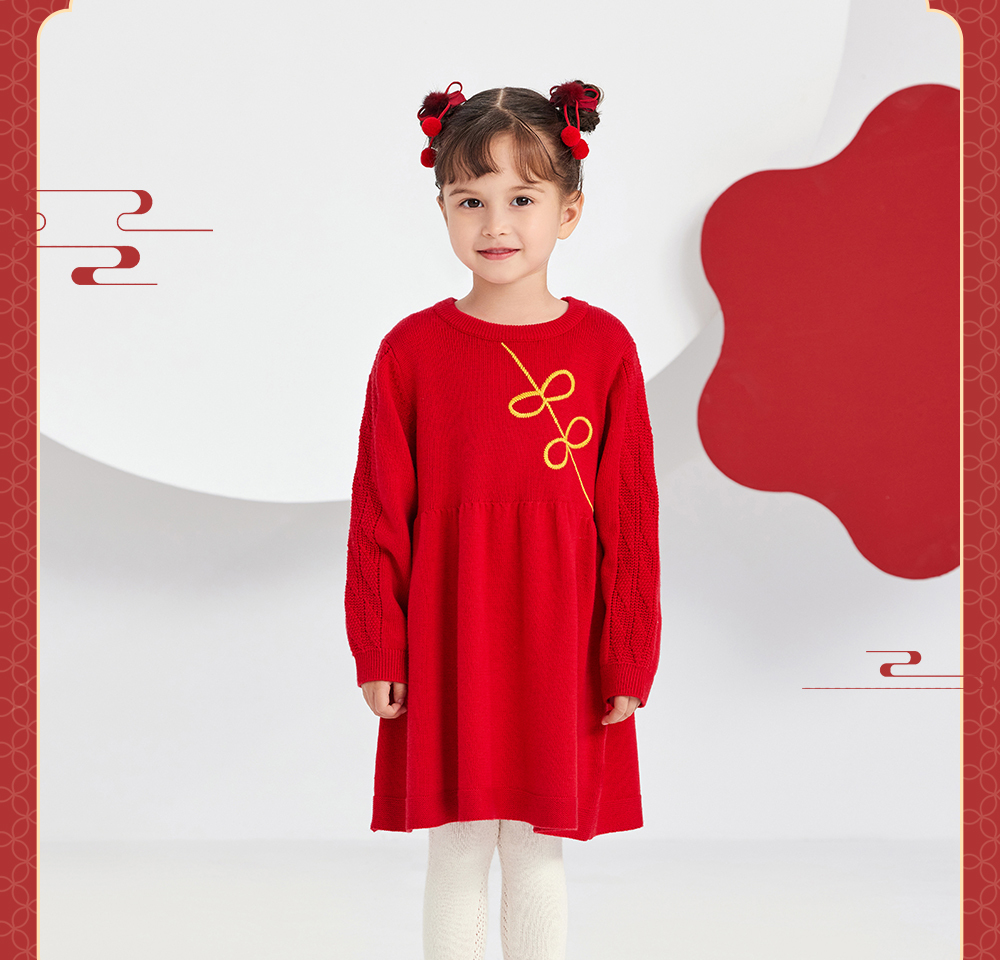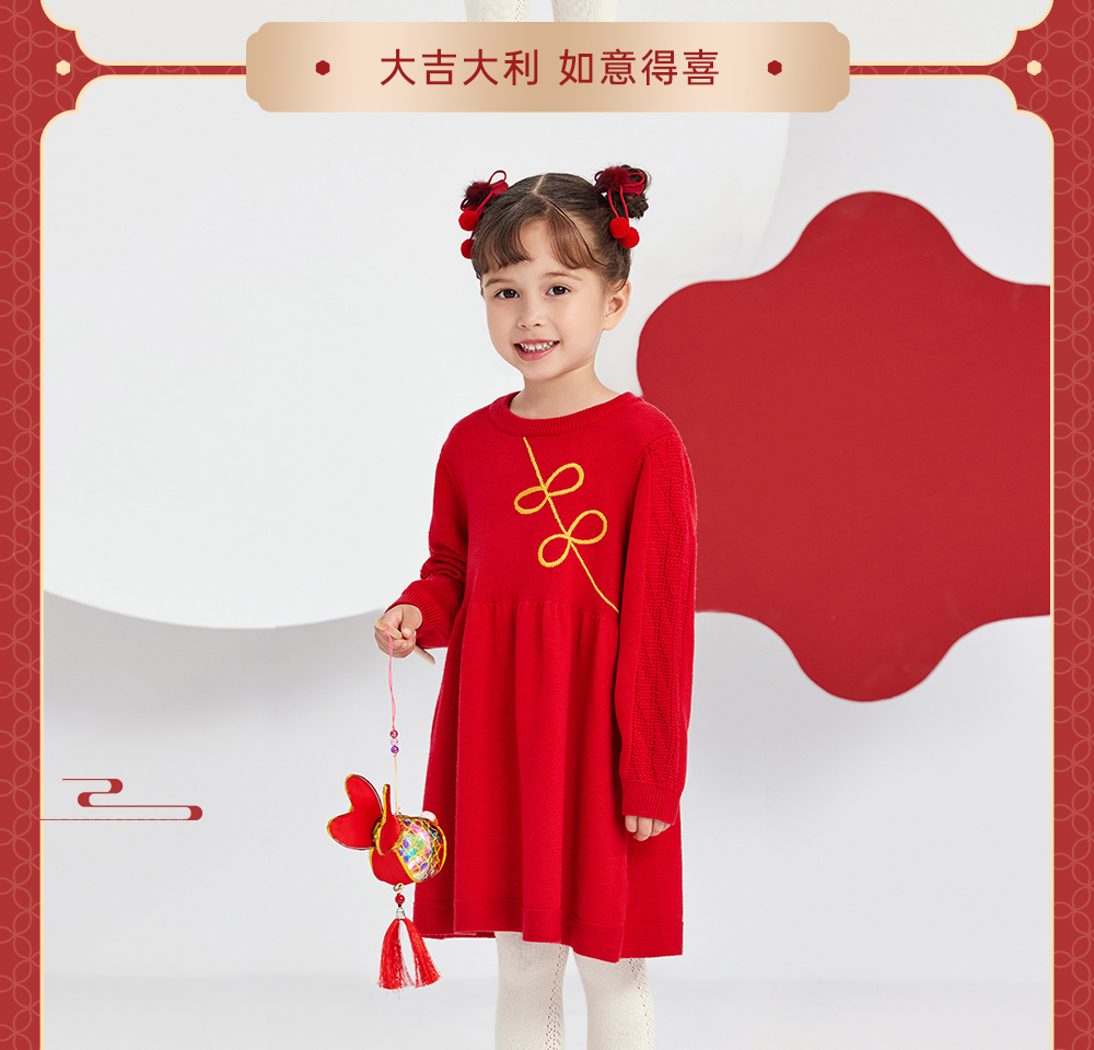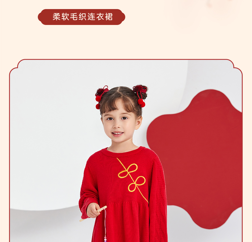 英氏女童国潮连衣裙秋季新中式喜庆羊毛保暖连衣裙